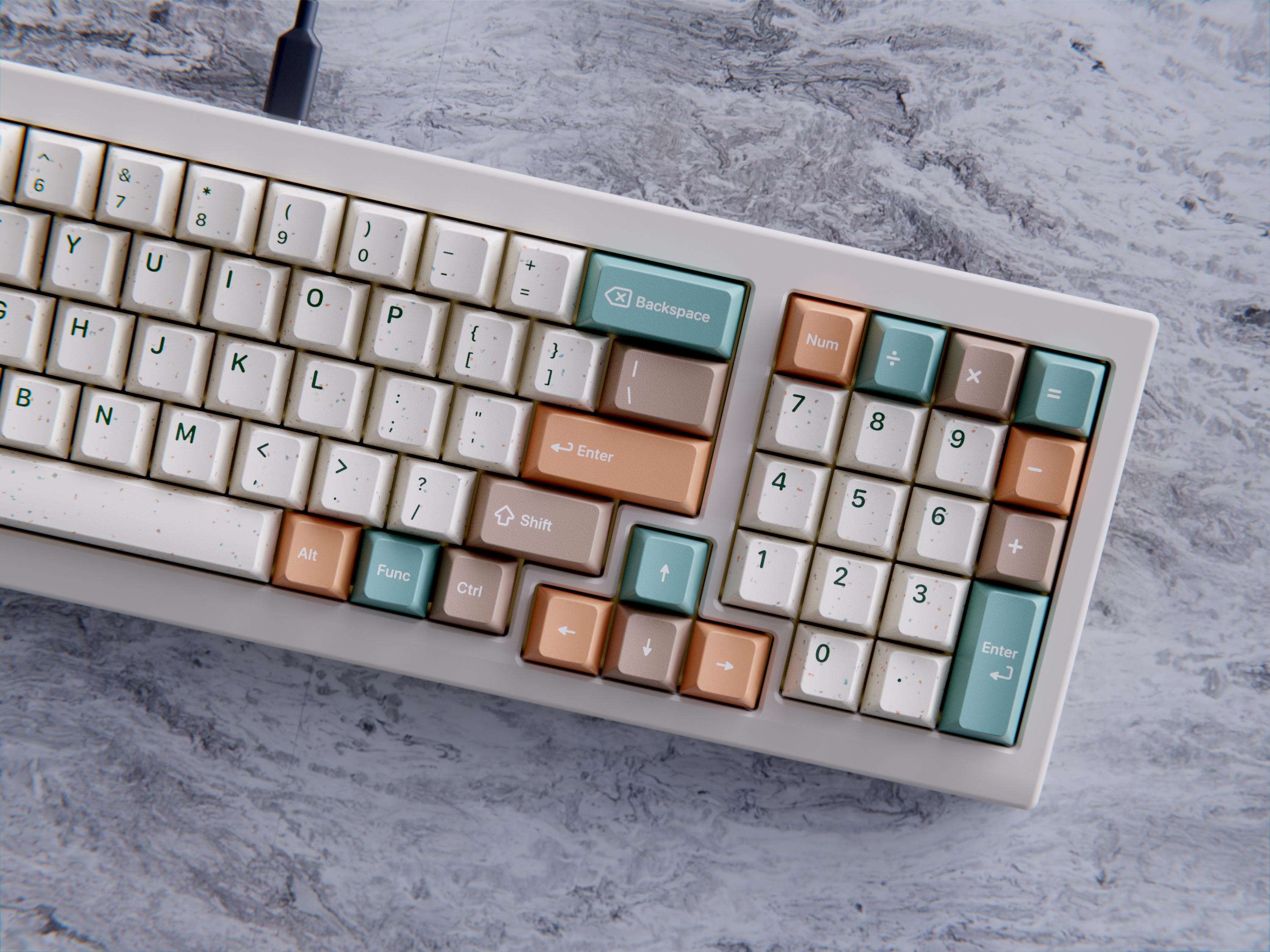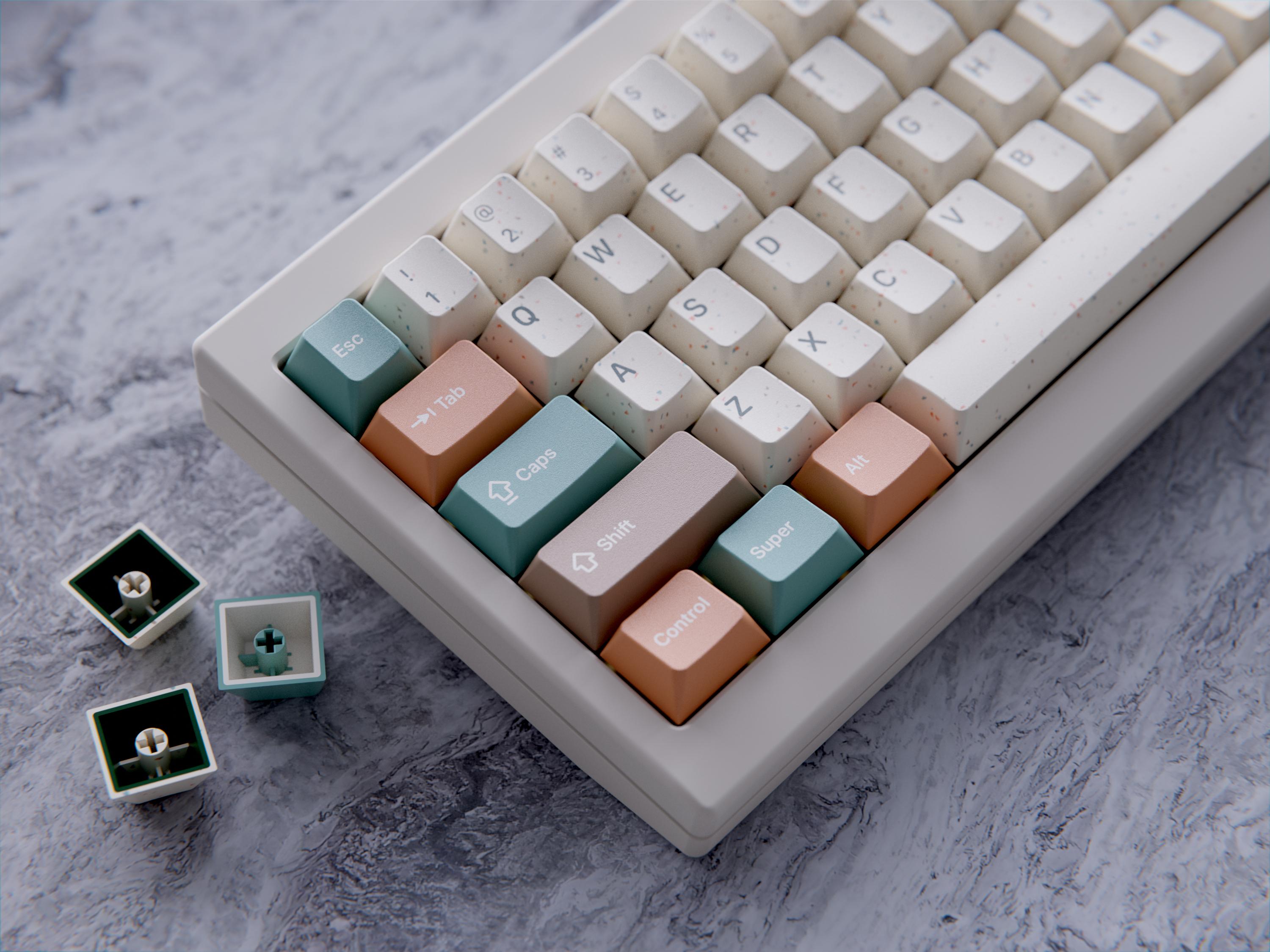 Using KeyReatives new speckled plastics to truly embody Terrazzo on your keyboard.