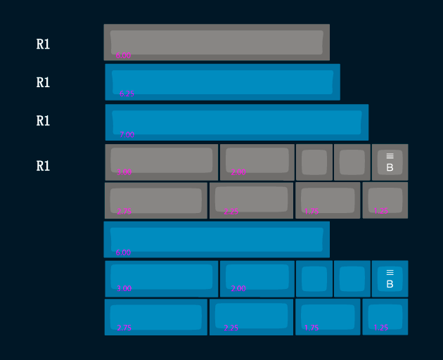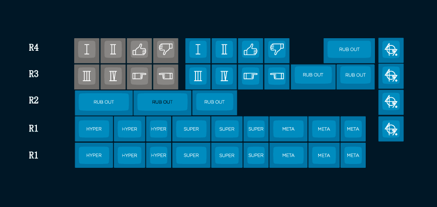 The original concept of this set was to create a 40s only kit that would serve our weird-ass idea of a usable keyboard, but we quickly saw the opportunity to bring the amazing Space Cadet concept to a wider audience. Our kits are inspired by the KAT sets that have come before it, emphasizing a wide gamut of coverage, something Keyreative's KAT profile provides at an affordable price. We hope that you find exactly what you need in our kitting and can put together the best coverage you've ever had in a keyset in the lowest possible cost.