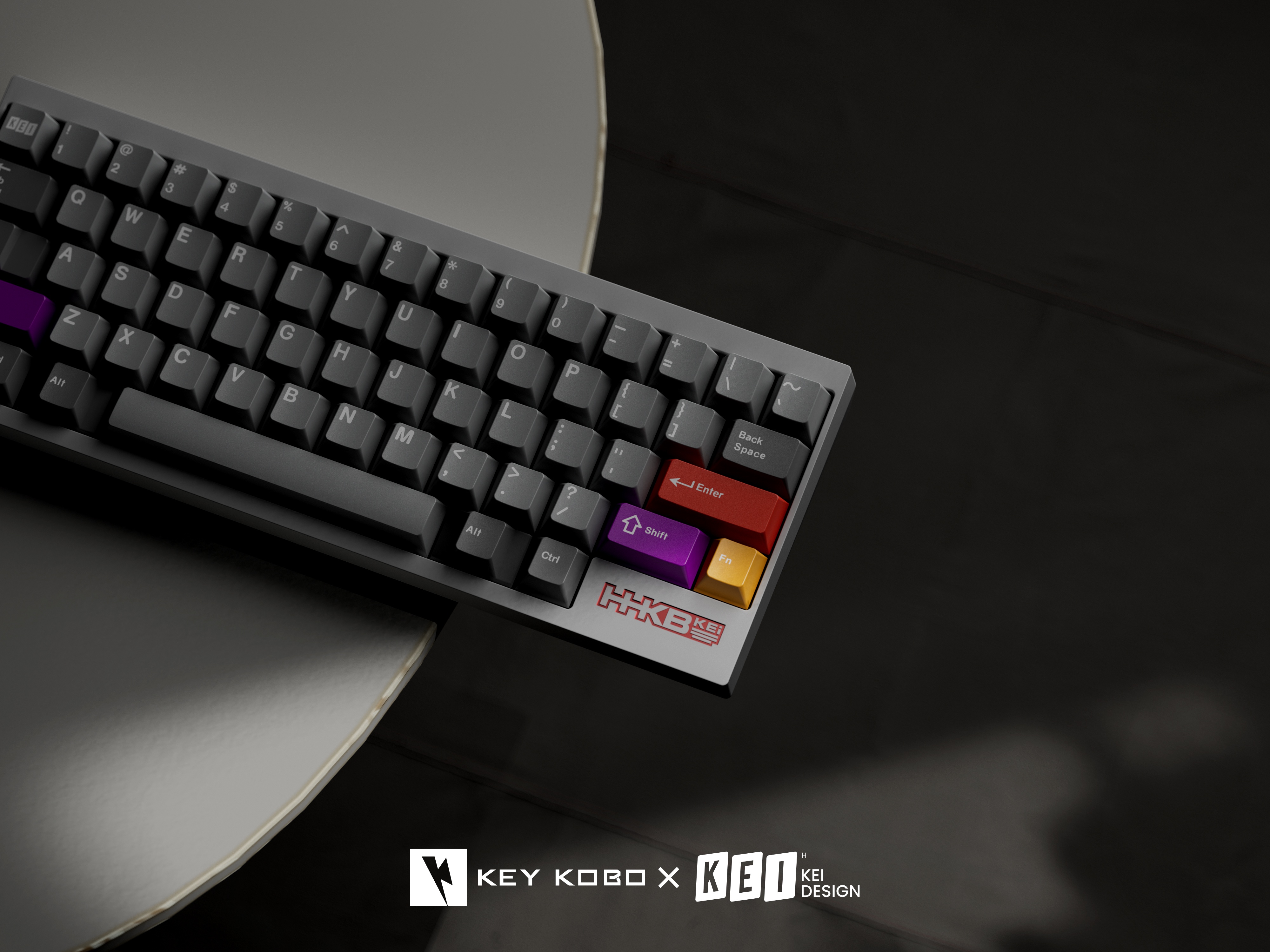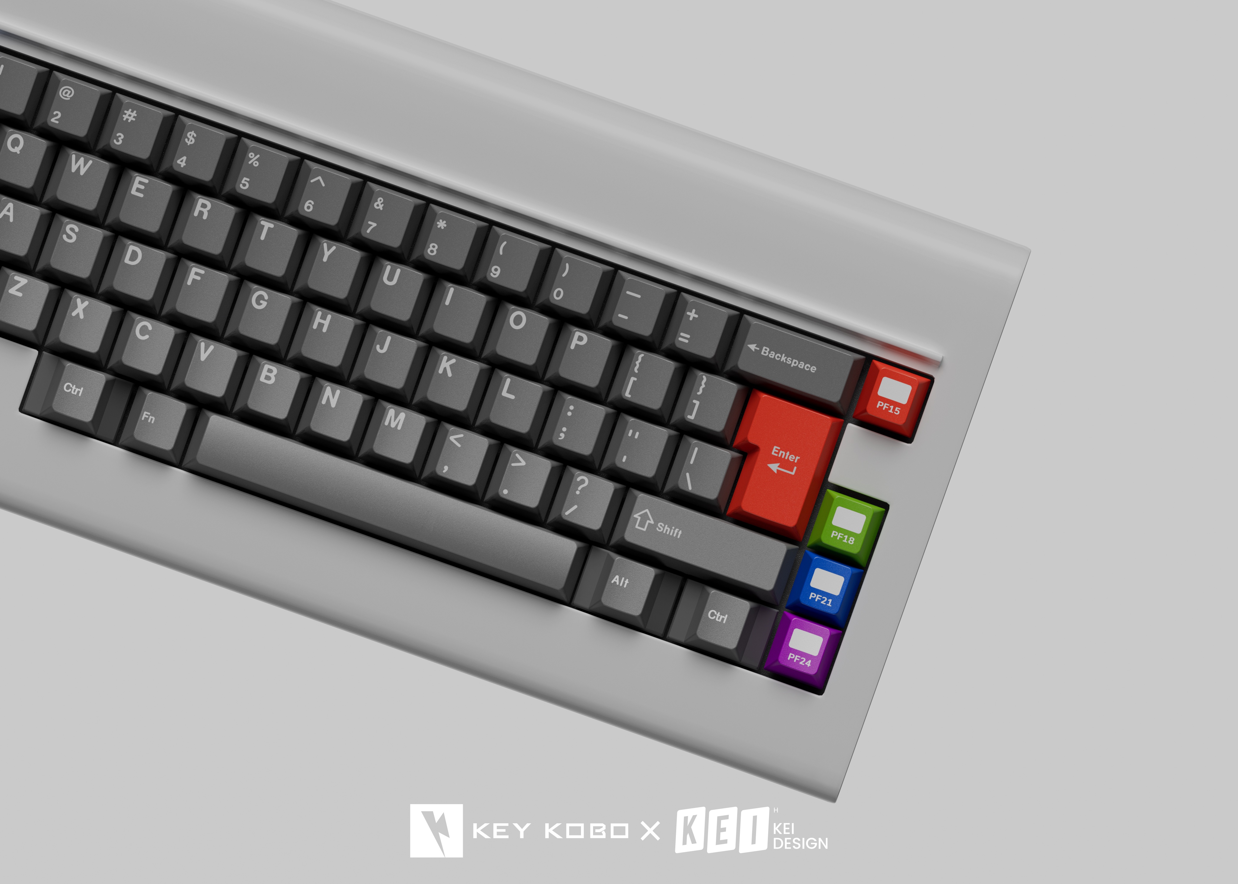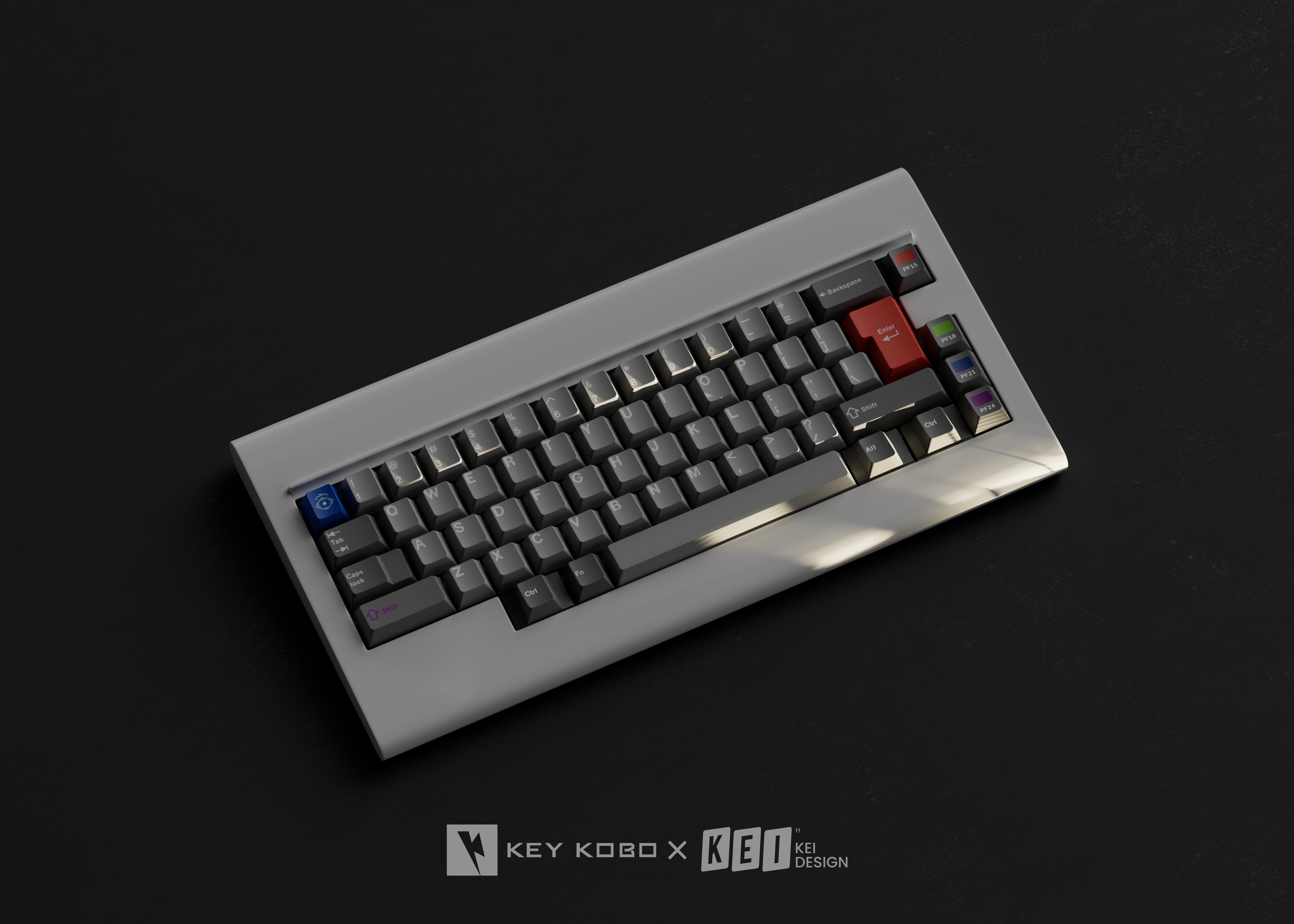 The primary colours use light grey and dark grey and then absorb five fusion colours from IBM (similar to the riso colour style) for reorganization and matching. Exciting and unique stepped CTRL and alt keys are added to the design. Thank you, keykobo for your support and the time and effort to open a separate mould