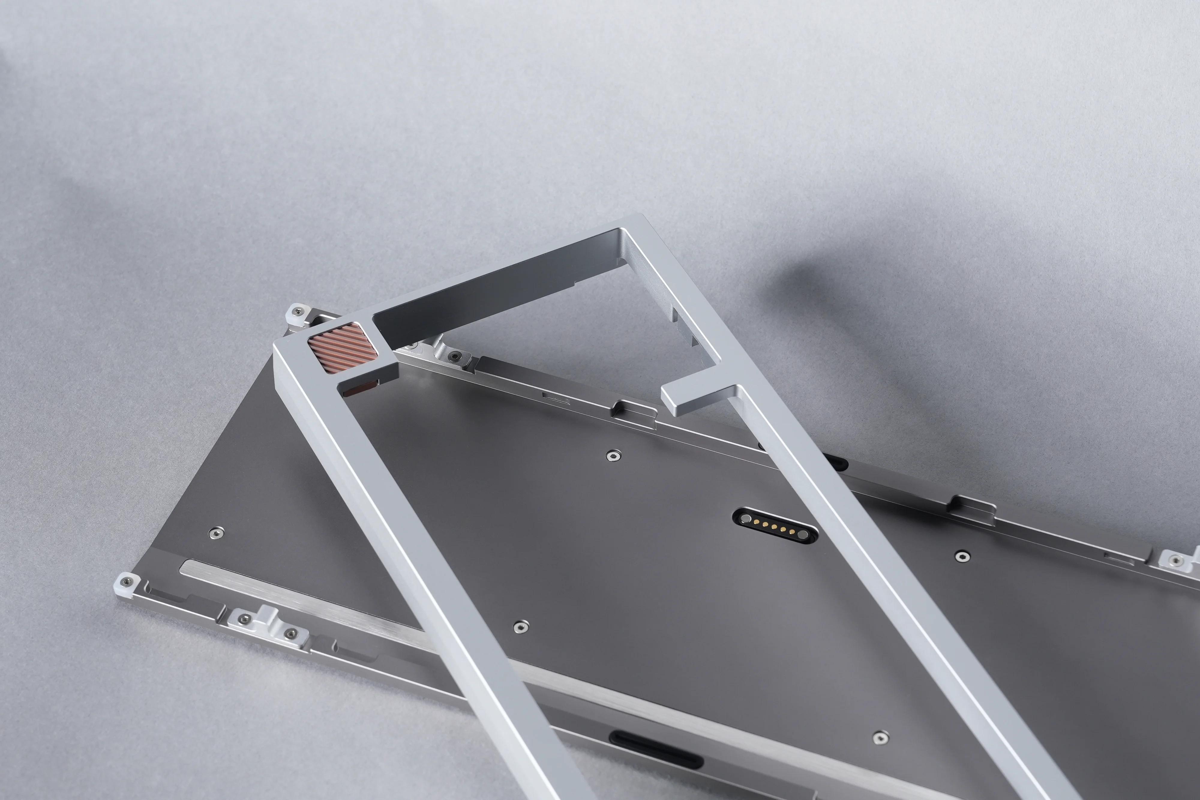 Mount: Gasket mount Connectivity: Single mode / Tri-mode Material: 6063 CNC Aluminum (220 mesh) Surfacing: Anodized, Spray paint Acoustic: Poron pad *1/Bottom pad *1(Customers can try not adding any padsand still get a good typing sound) Weight: Stainless steel matte PVD / Mirror PVD / Red copper Case Weight: 1.4kg Weight with switches and keycaps: 1.76kg Size: 313×113mm Typing Angle: 8° Compatible System: Support Windows & Mac Battery: 5000mAh (2500mAh*2) Rolling rate: 1000Hz (Wired), 125Hz (Bluetooth, 2.4G) Front Height: 16.9mm Badge: Red copper Add on: PC, Alu plate without flexcuts
