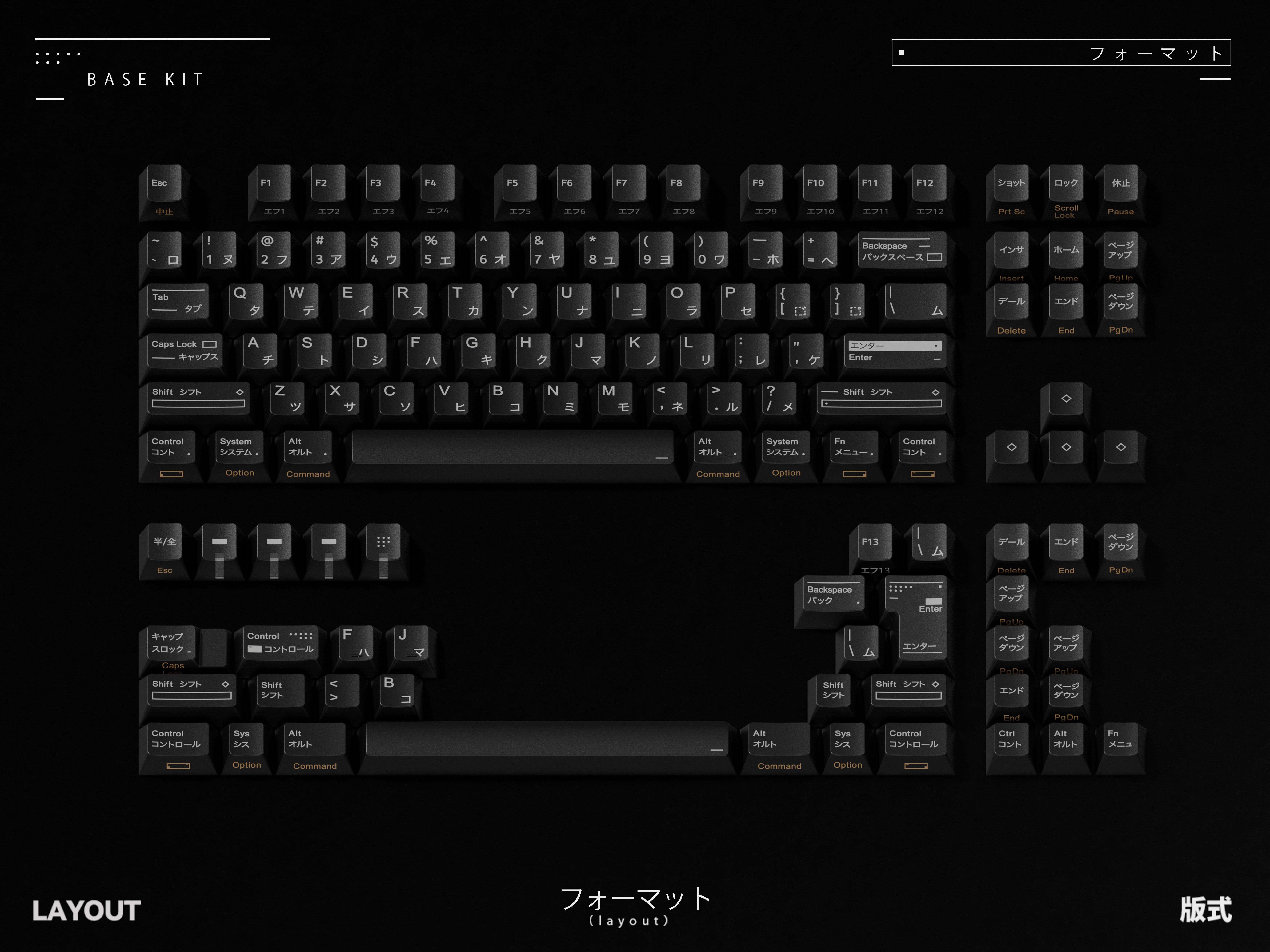 For specific key groups like the function row (F-keys), function cluster, and the spacebar row, we've implemented secondary legends in silver and gold hues. This maintains visual consistency while providing supplementary functional information through side-engraved characters.