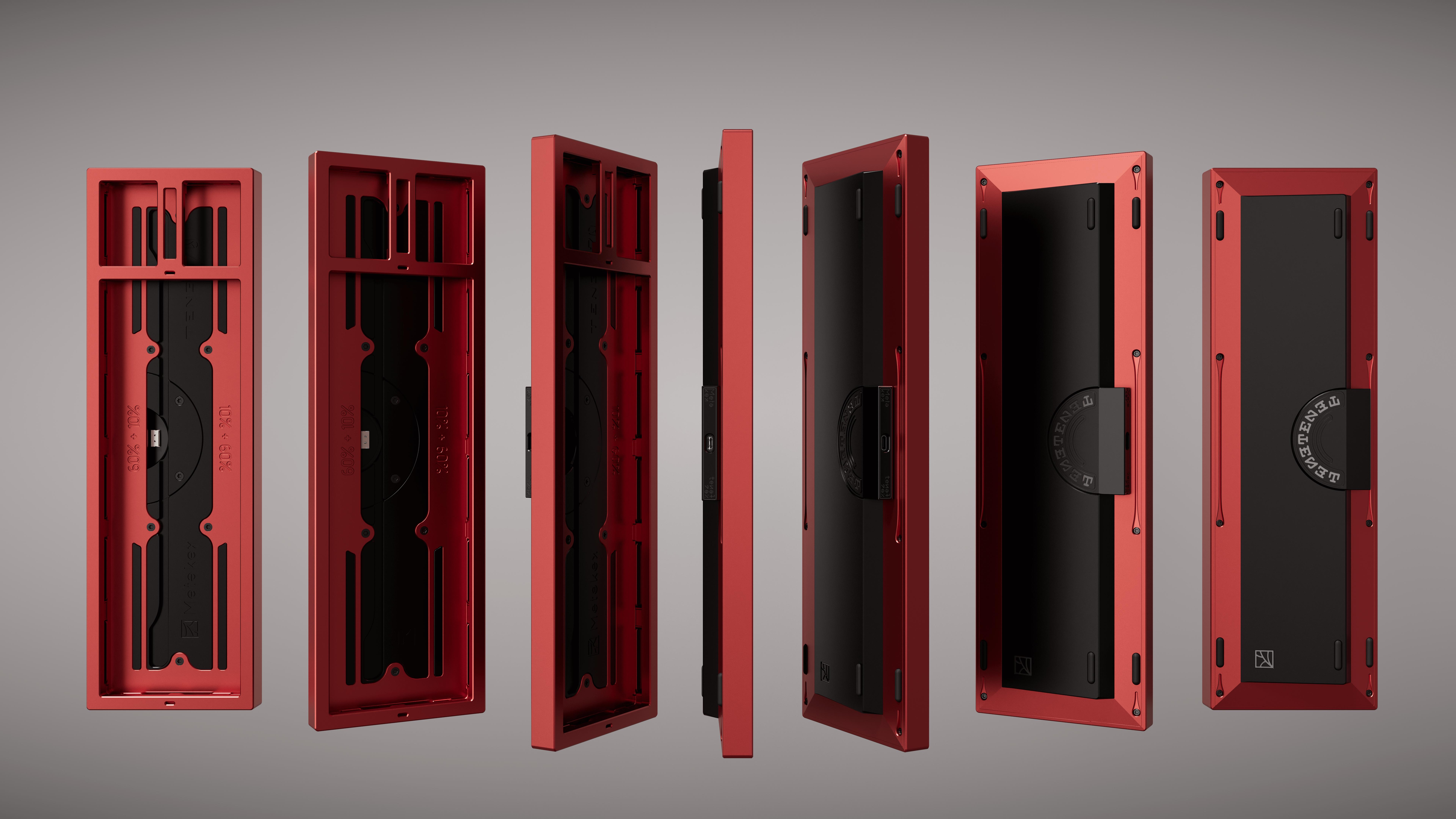 ► Dimensions: 374 x 115 x 30mm ► Materials: ╚ Full-aluminum: Aluminum Case and Weights ╚ Aluminum Case + Brass Weight: Aluminum case with Sandblasted Brass main Bottom Weight, Sandblasted Gold-plated Brass Outlet Weight ╚ Founders Edition: High-gloss Chamfered Edge with Double-anodizing with PVD Mirror Brass Bottom and Outlet Weight ► Colorways: ╚ Anodized: Black, Navy, Green, Red ╚ Electrophoresis: White, Yellow, Pink ► Transformable Layout: Regular FRL-TKL or Southpaw (FRL, no keypad, extra function keys on both sides of the arrow keys) ► Plate material: PC/FR4/Alu/Brass ► Mount: Isolated Gasket Mount ► Multifunctional OLED Screen: 7 screen mode (see “PCB Software and OLED Interface” in Metakey TENET Interest Check for detail) ► PCB: ╚ Integrated Dual PCB - main and func&direction region ╚ Hotswap with per-key RGB underglow ╚ Soldered with ISO, Split Backspace, WKL row and Split Shift Support ╚ Custom USB-C daughterboard ► PCB and OLED Screen Software: HEXCORE ObinsKit ► Typing angle: 8° ► Front height: 18mm