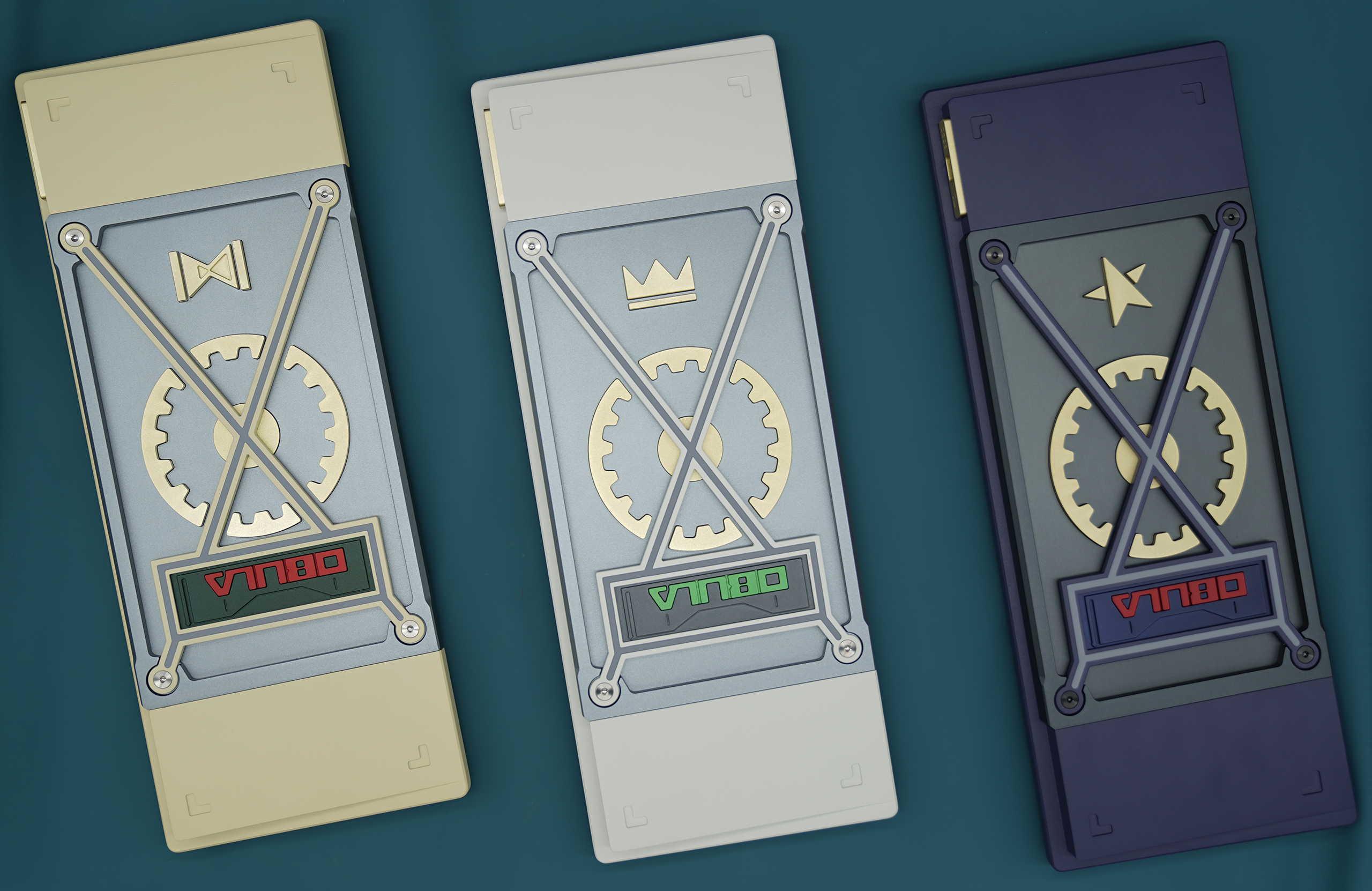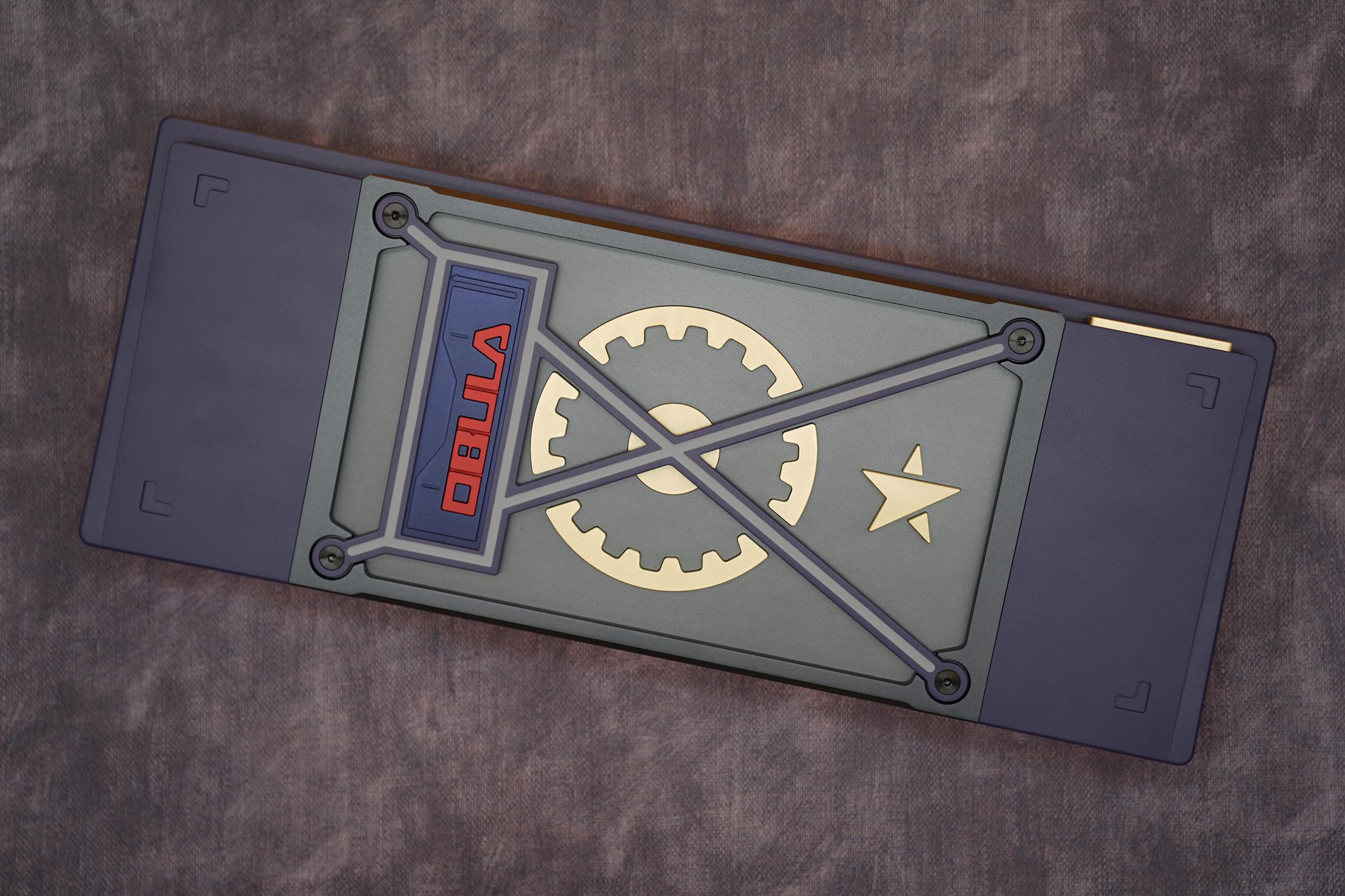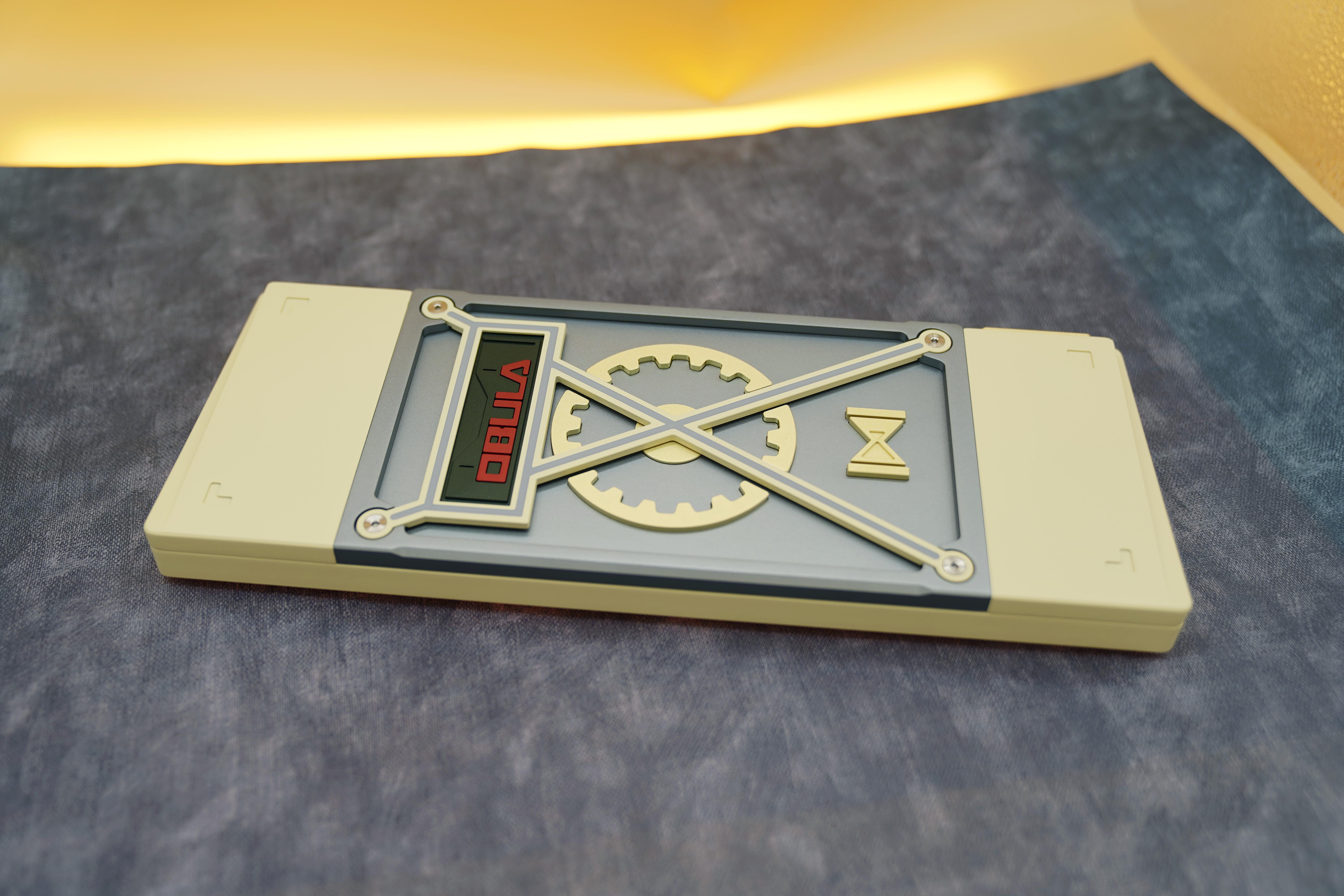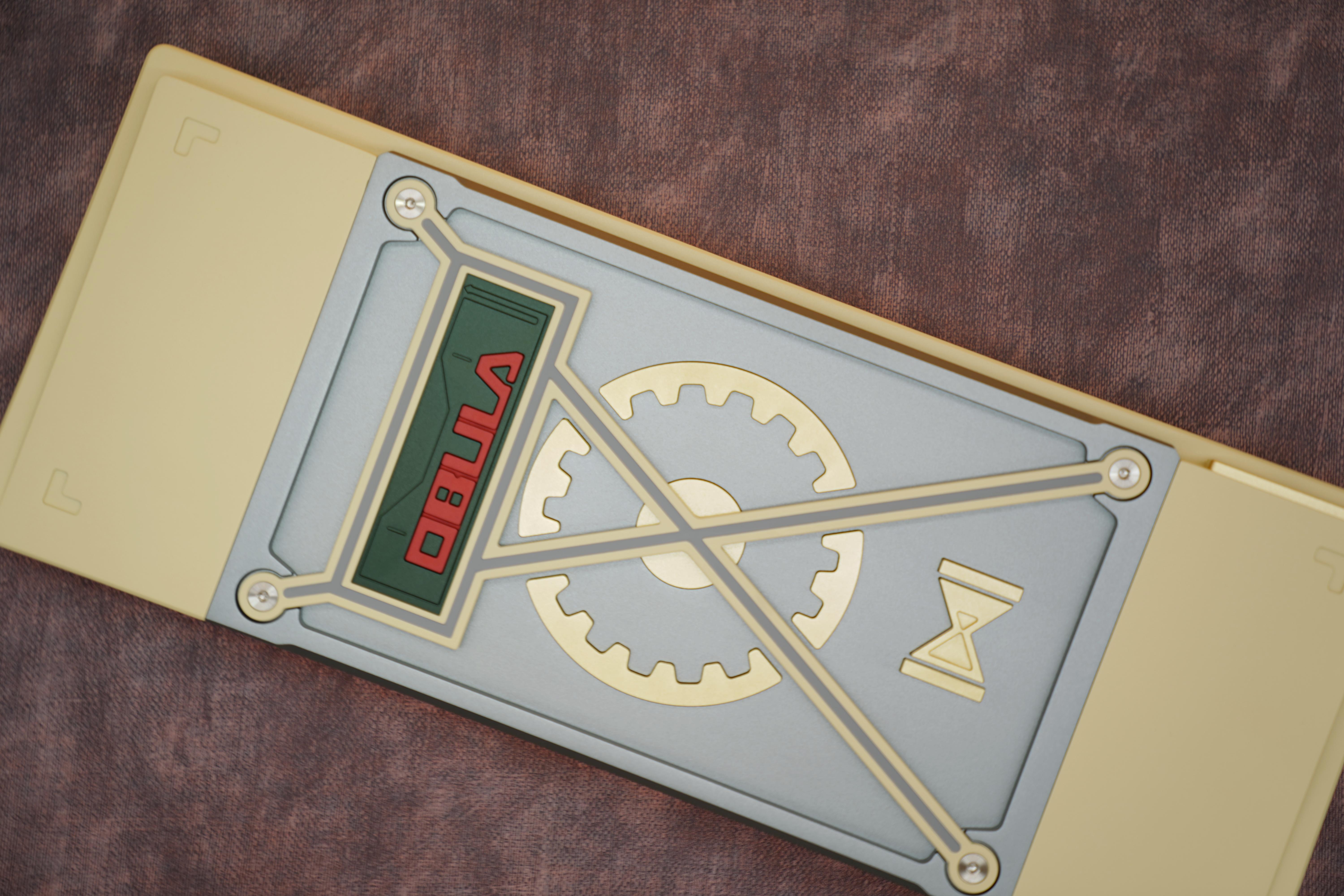 We decided to go with a montage style exterior design. This style is to highlight the unique weight and badge design on the bottom of the keyboard. We came up with different brass weight designs to show uniqueness for each mobula 80. The huge gear shaped weight, thick bezels, and other brass strips have all reinforce the industrial style of mobuda 80.