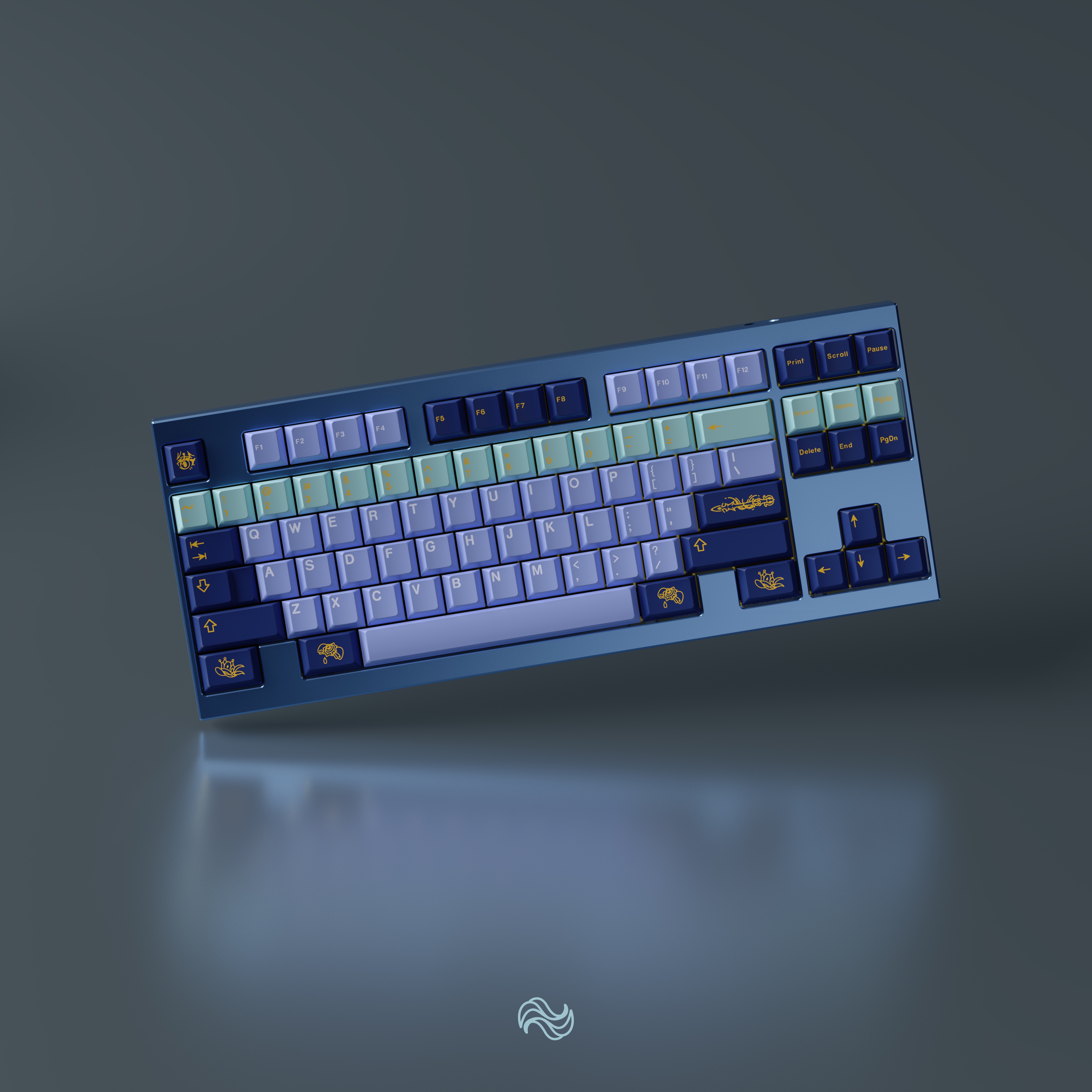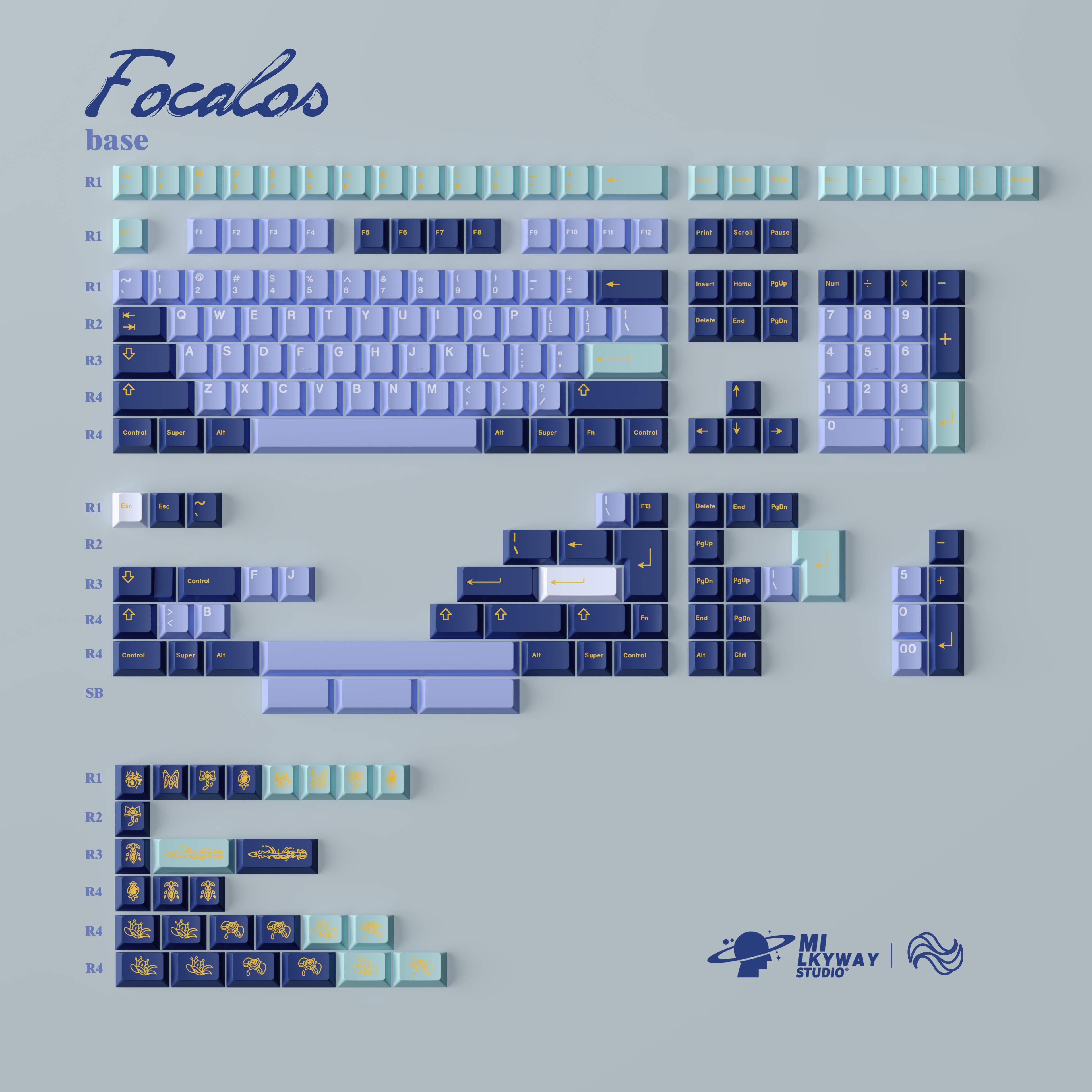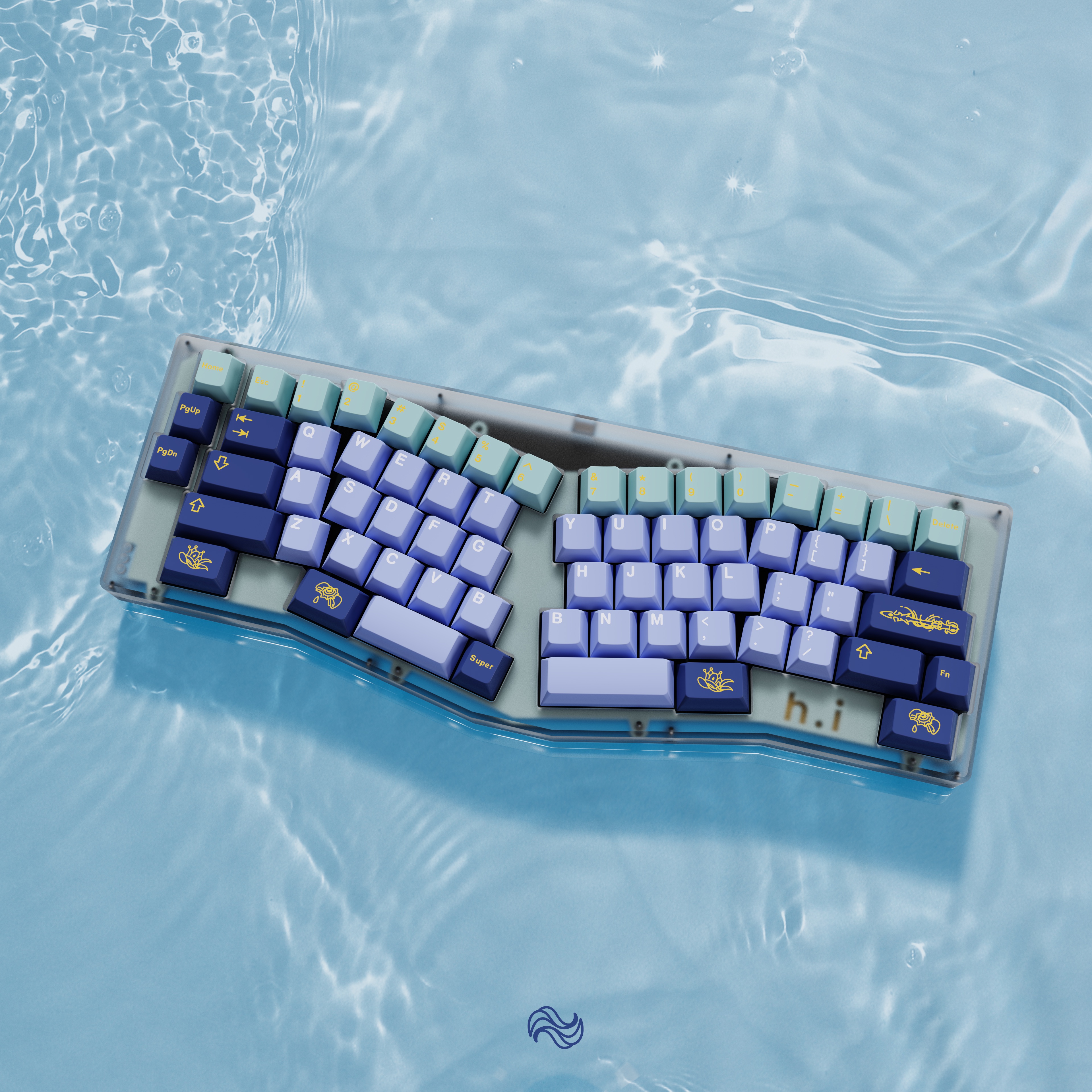 The color scheme of the alpha keys is derived from her hair, while the colors of the modifier keys’ come from her Dress.
