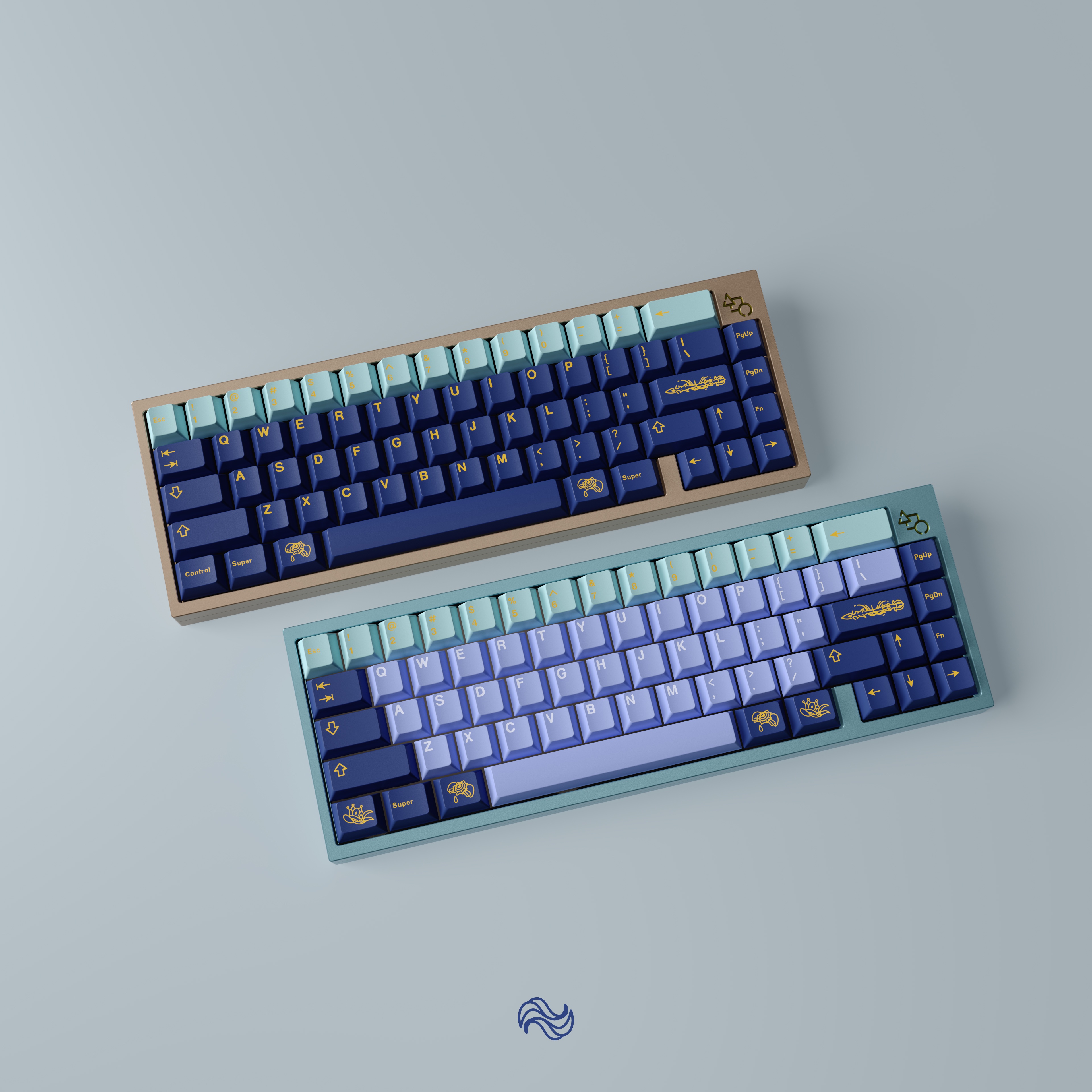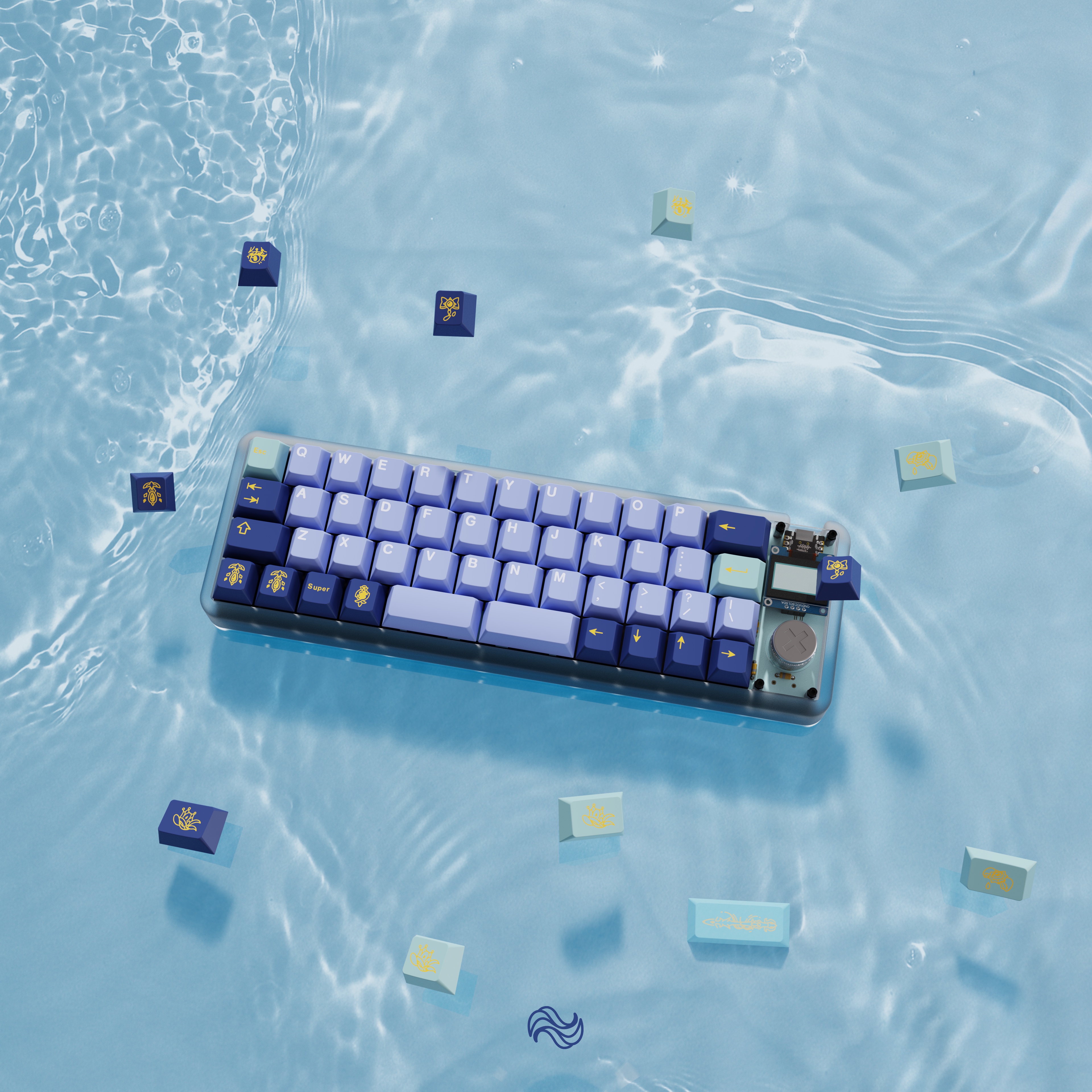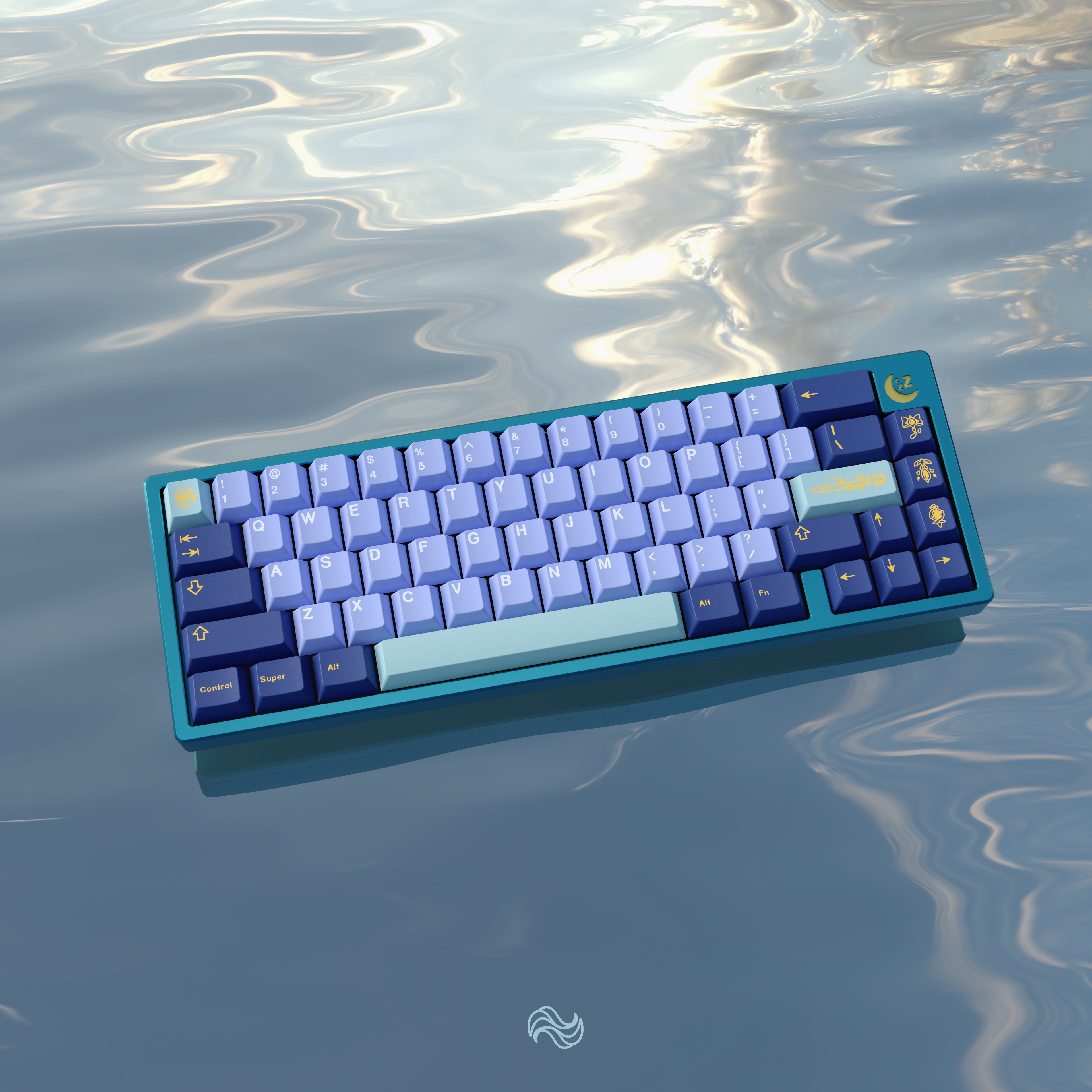 The color scheme of the alpha keys is derived from her hair, while the colors of the modifier keys’ come from her Dress.