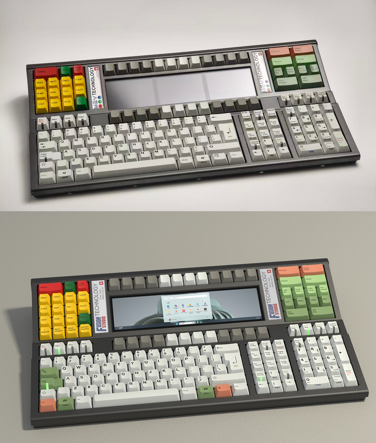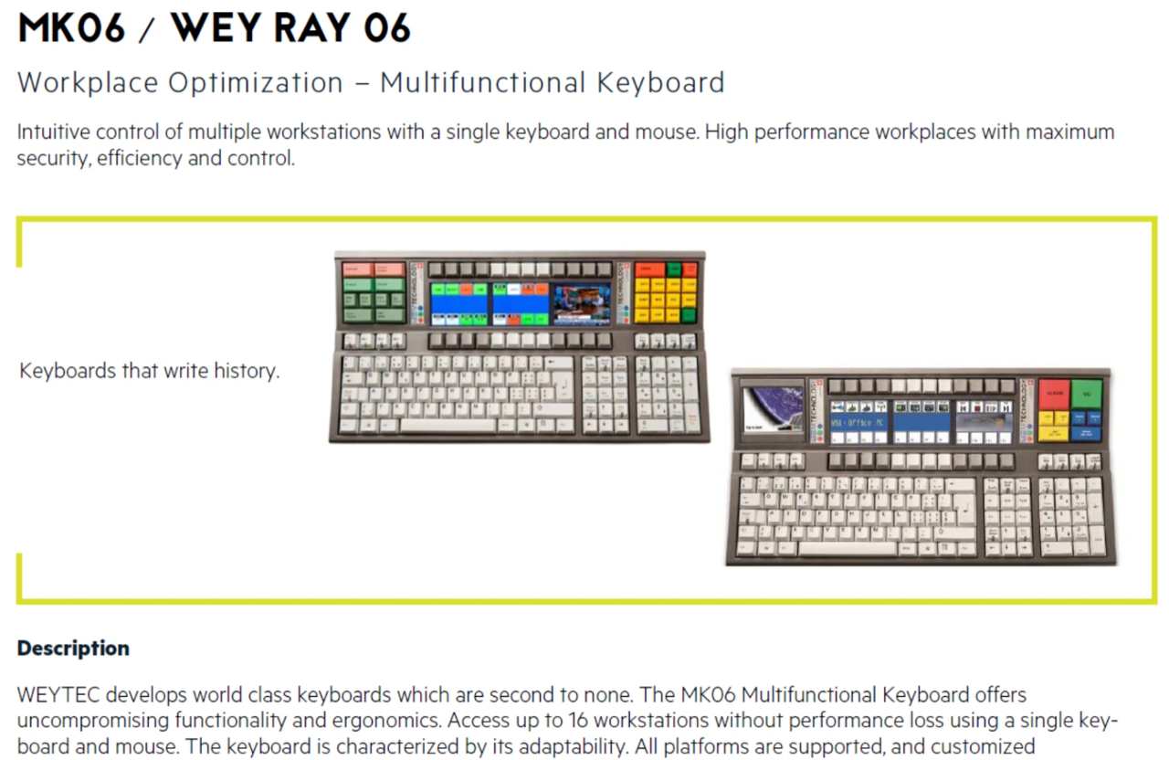 It was a professional industrial-control / multi-workstation keyboard used in environments such as monitoring centers and trading floors.