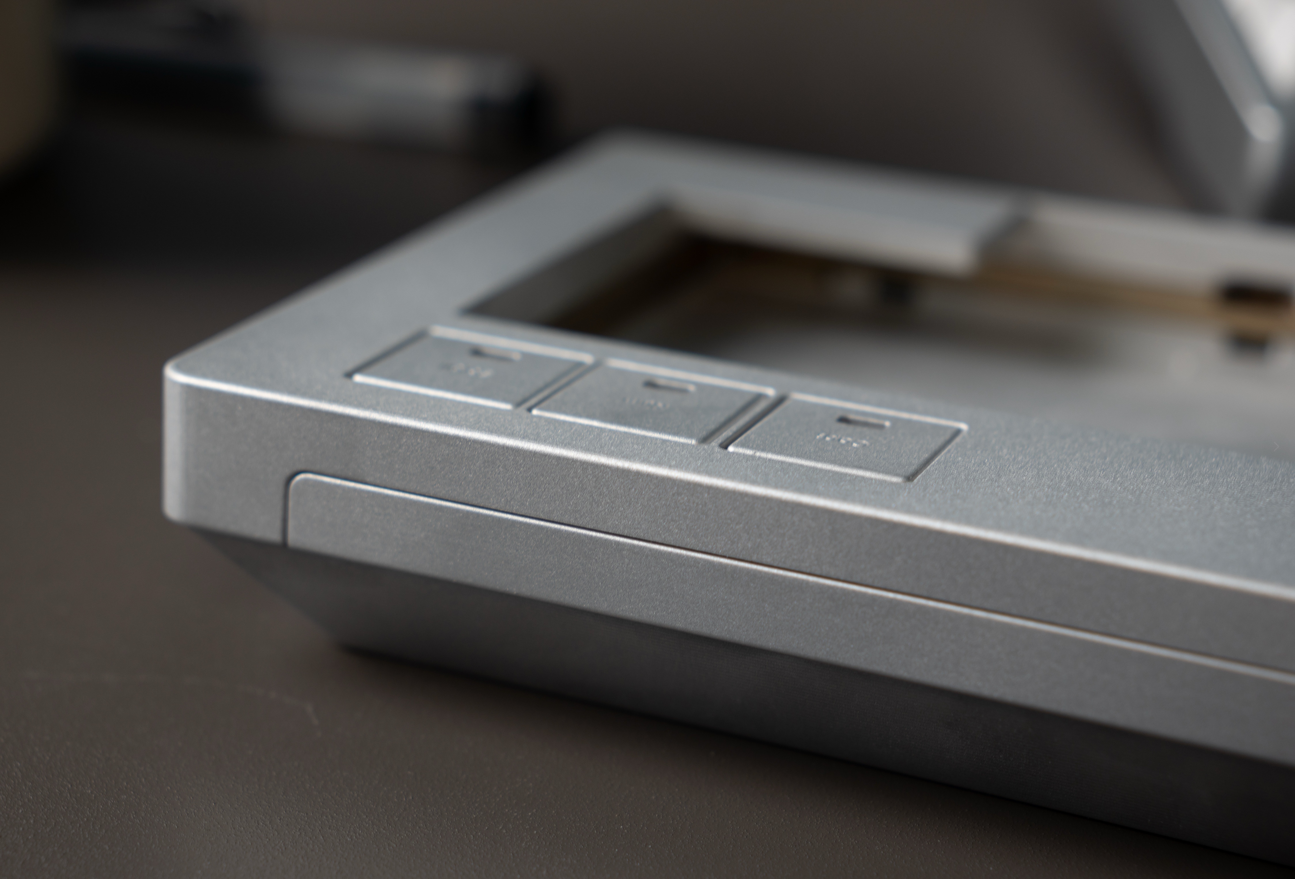 Integrating microswitches required a complete structural redesign. Early prototypes featured a unibody case with a dedicated controller compartment, but the cramped space made it challenging to install the microswitches. We switched to a top/bottom case design with hidden seams to preserve visual unity.