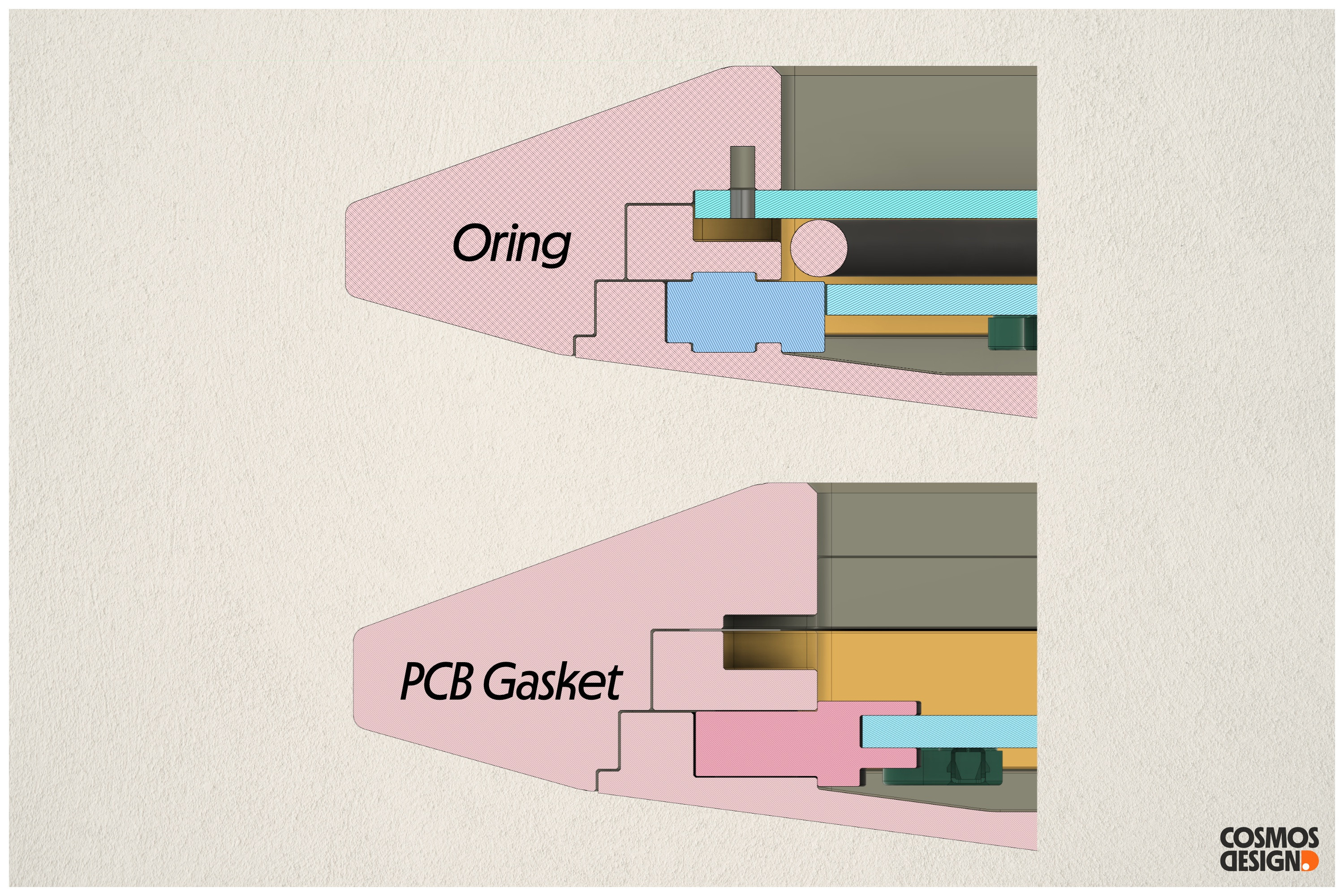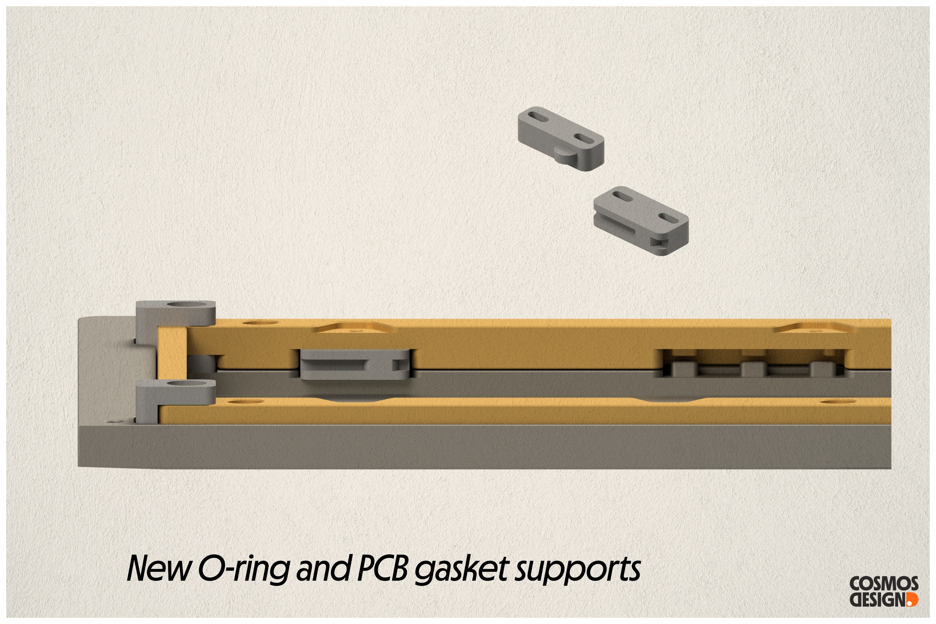 5. The original combined silicone support structure for the O-ring and PCB gasket has been separated into two distinct components, enhancing the performance of both mounting systems.