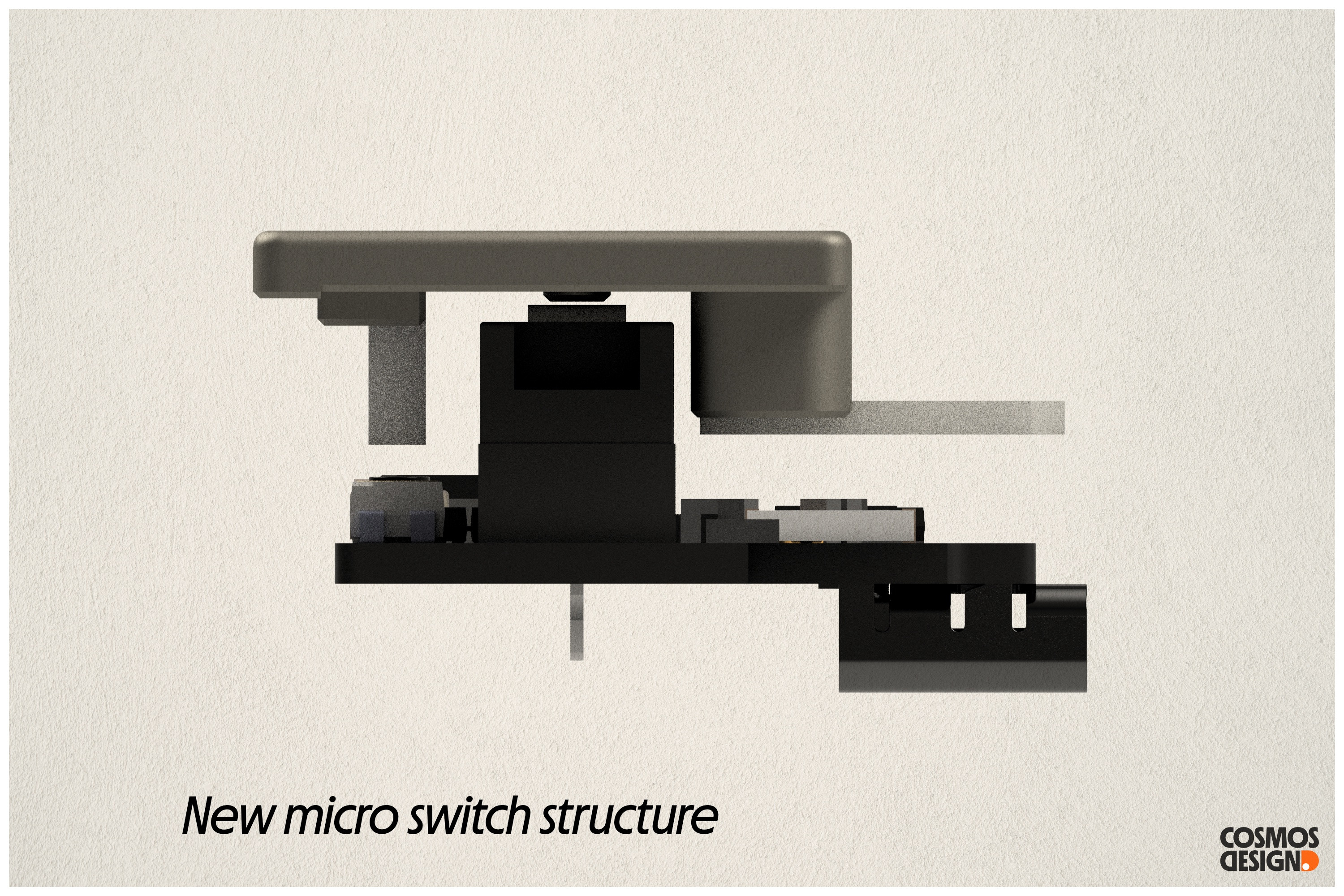 4.Redesigned the microswitch cap with a POM cantilever for better feel and stability.