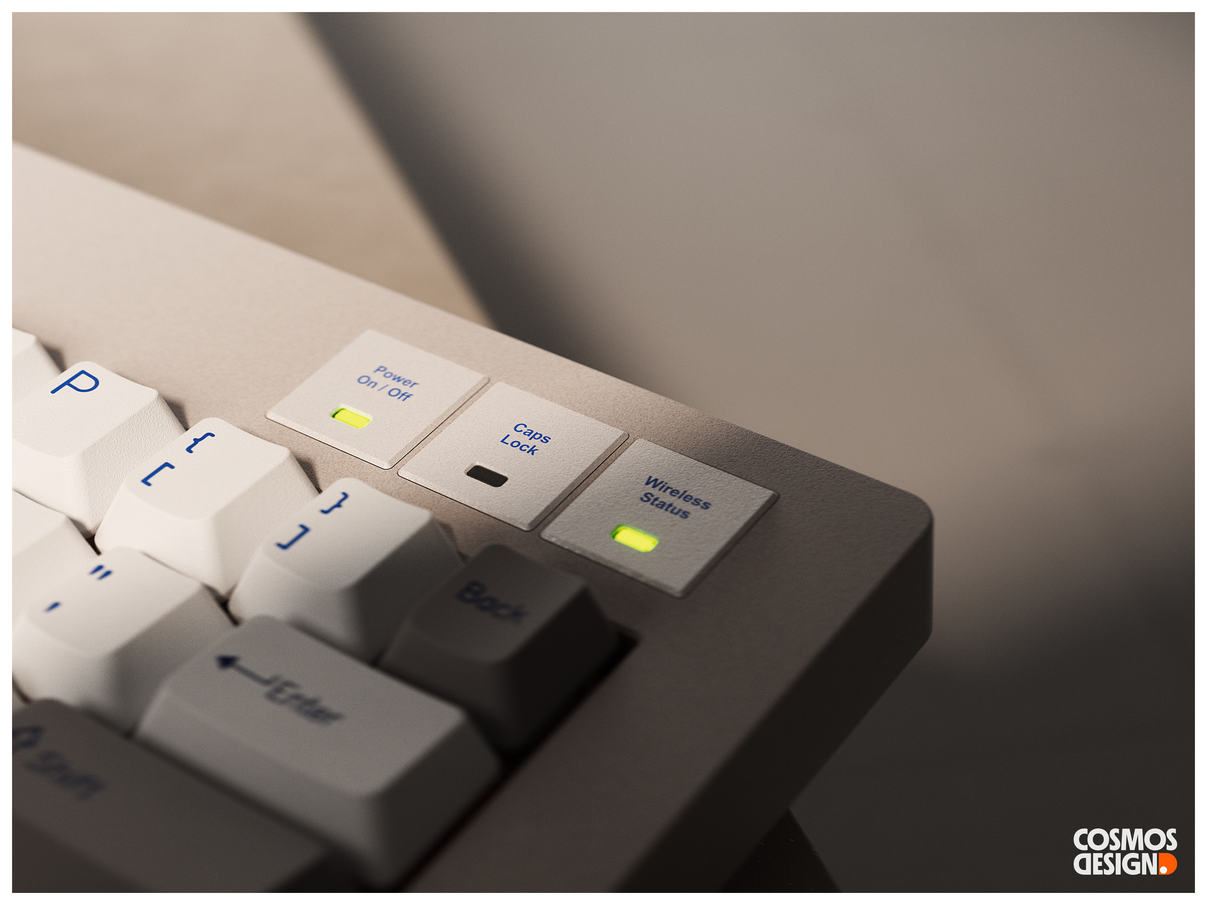 We preserved the original badge and indicator design, but transformed indicators from stickers to metal buttons with 3 microswitches underneath, elevating the keyboard's premium finish while creating a distinct interactive control area.