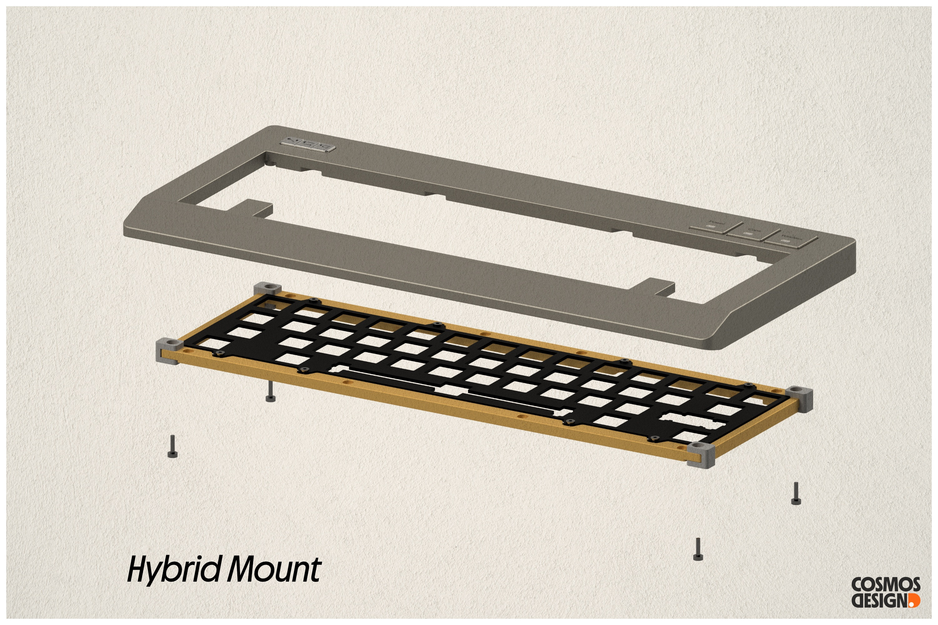 This change led to an O-ring adjustment: we replaced fixed aluminum supports with interchangeable silicone supports in the base to optimize support across different layouts. Users can mix and match supports or O-rings of varying hardness for a personalized typing experience, while also allowing for future expansion into plateless or top-mounted configurations.