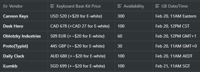 GB date and time, Vendors and QuantitiesGroup buy is already scheduled to happen