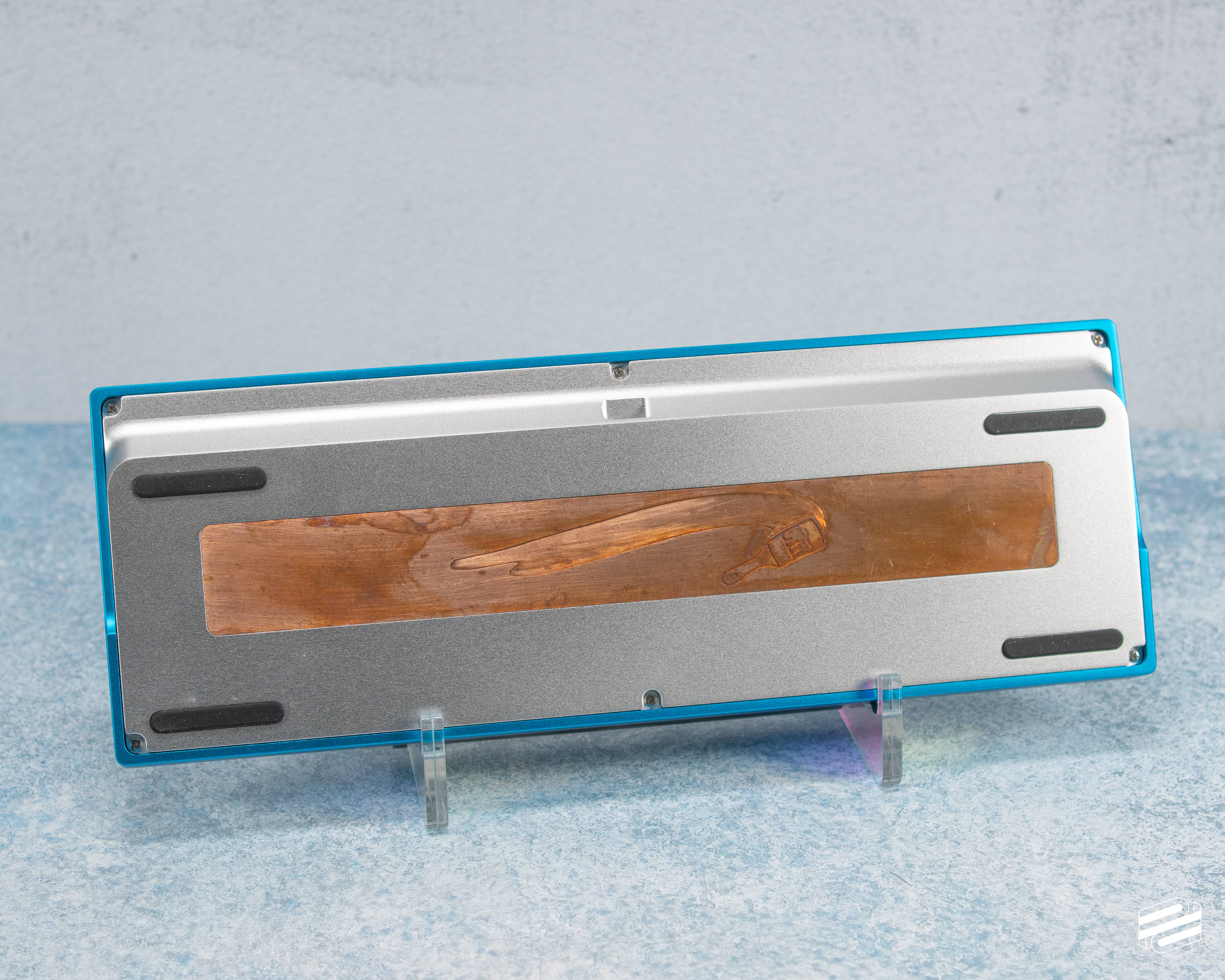 - Typing Angle: 7° - Front Height: 18.1mm (23.1mm EKH) - Case weight: 1.3kg (2 lbs 14oz) built - Case Material: 6063 Aluminum for top and bottom | Copper for weight and knob - Mount: Gasket Mount | 4 mounting points with 1/8" gaskets above and below the plate - PCB: RP2040 with QMK/VIAL support and S1 UDB