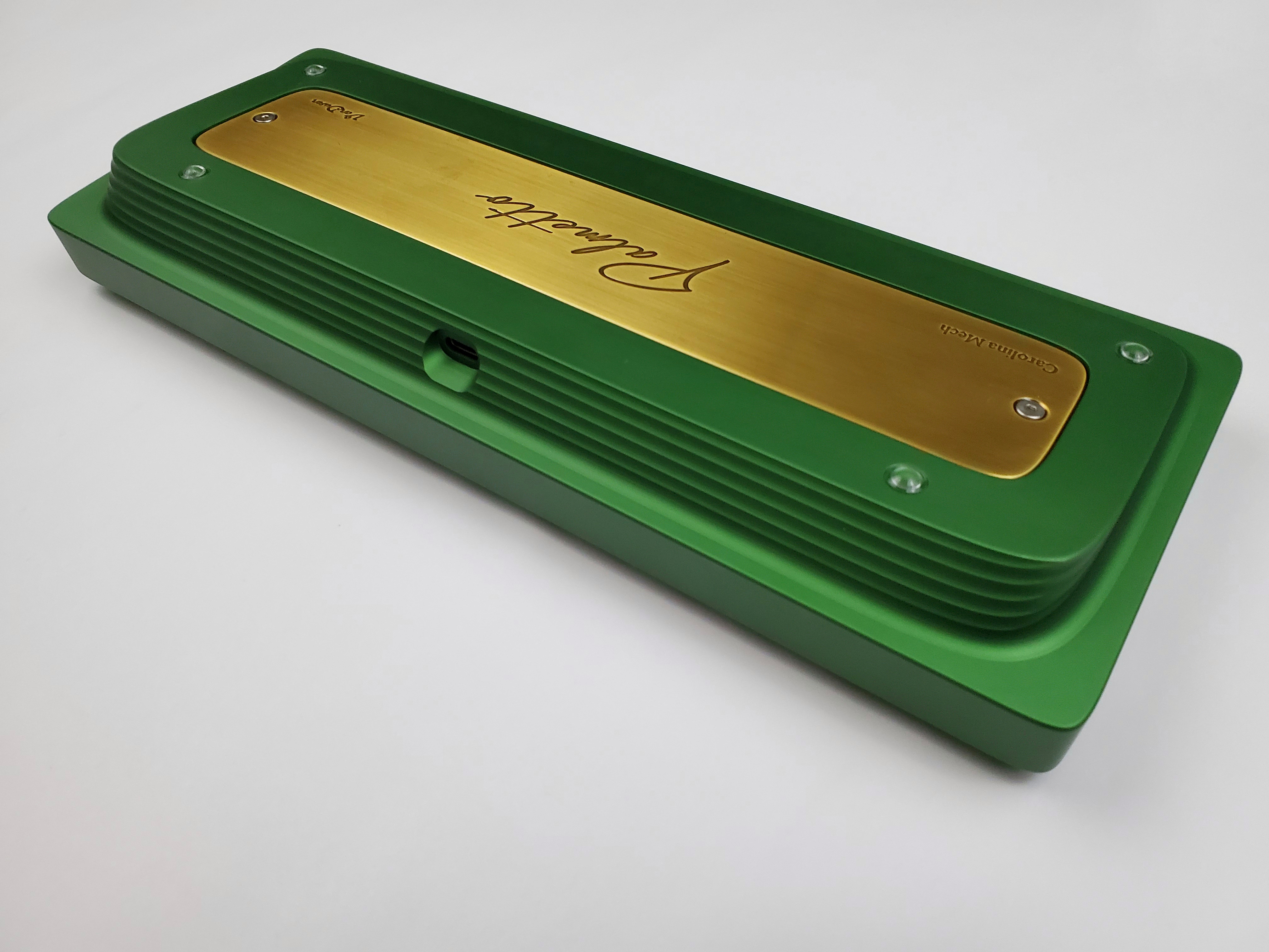https://carolinamech.com/Paypal is not accepted.Palmetto 60 background:The Palmetto is a 60% unibody mounted with an o-ring gasket, featuring a thick brass weight and USB-C daughterboard. The typical tray mount screw holes are not present, but there is a center post to prevent shorting out from flex. The only screws on the board are on the weight and the daughterboard. There are large holes in the case the large brass weight fits into; once the weight is removed, this allows you to push out the PCB easily, similar to the TGR/Singa Unikorn. The name Palmetto comes from the Palmetto Tree, which is the state tree of South Carolina. Palmetto was designed by Van Dusen mfg with our assistance. Van Dusen is also machining the boards in South Carolina.