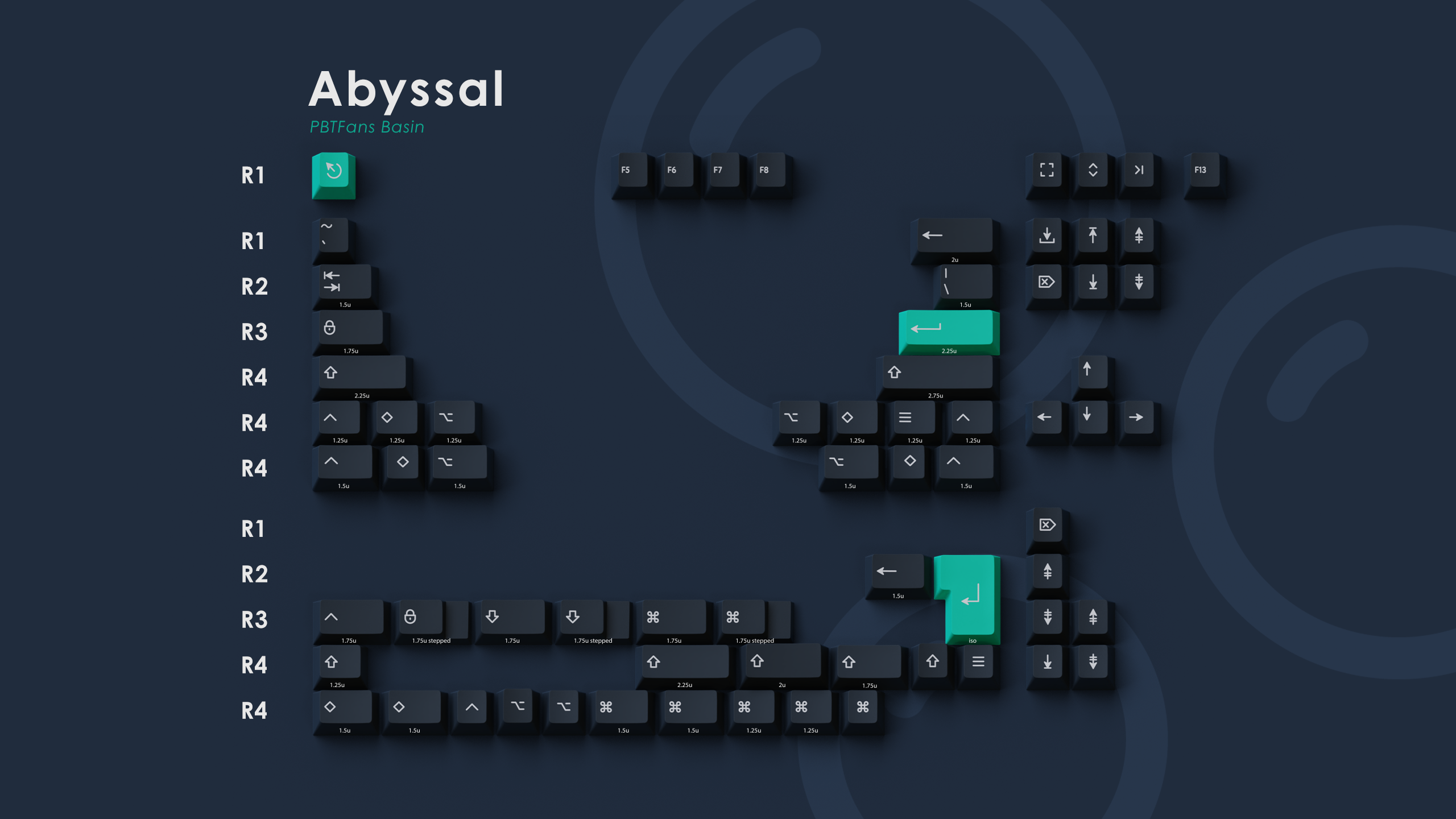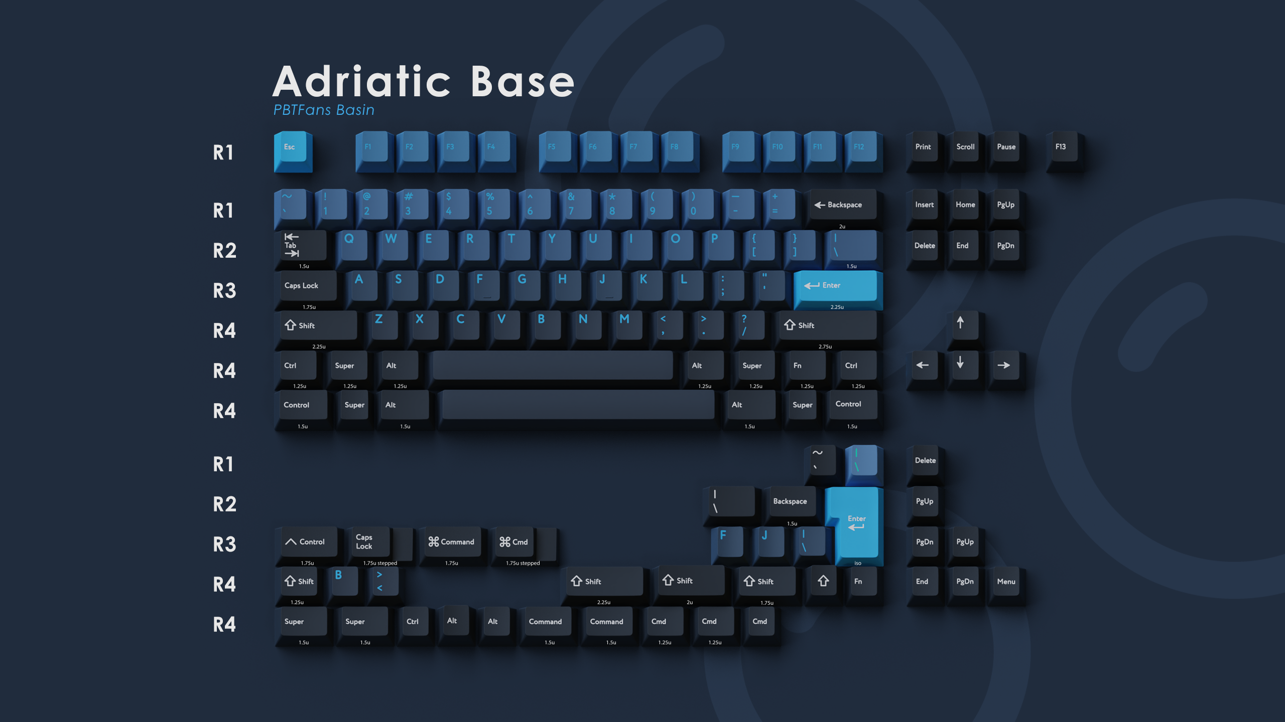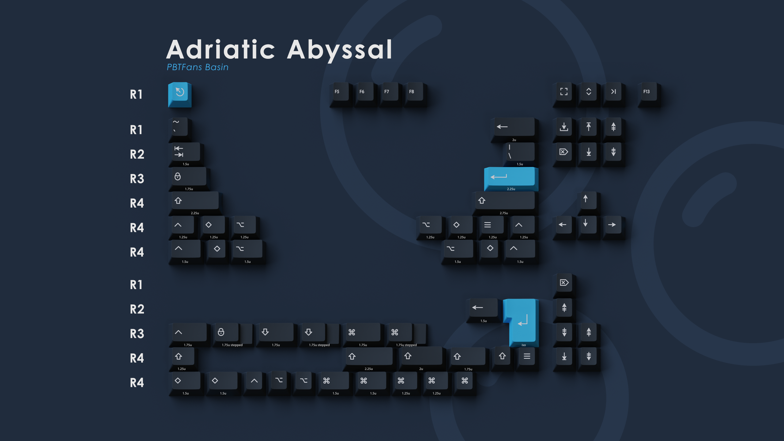 We present to you PBTfans Basin! This set was designed to reflect the dynamic blue-grays of the ocean. Amidst the vastness of an oceanic basin are a wide variety of colors, and we have chosen a sinking gradient to portray diving into the depths of the ocean.