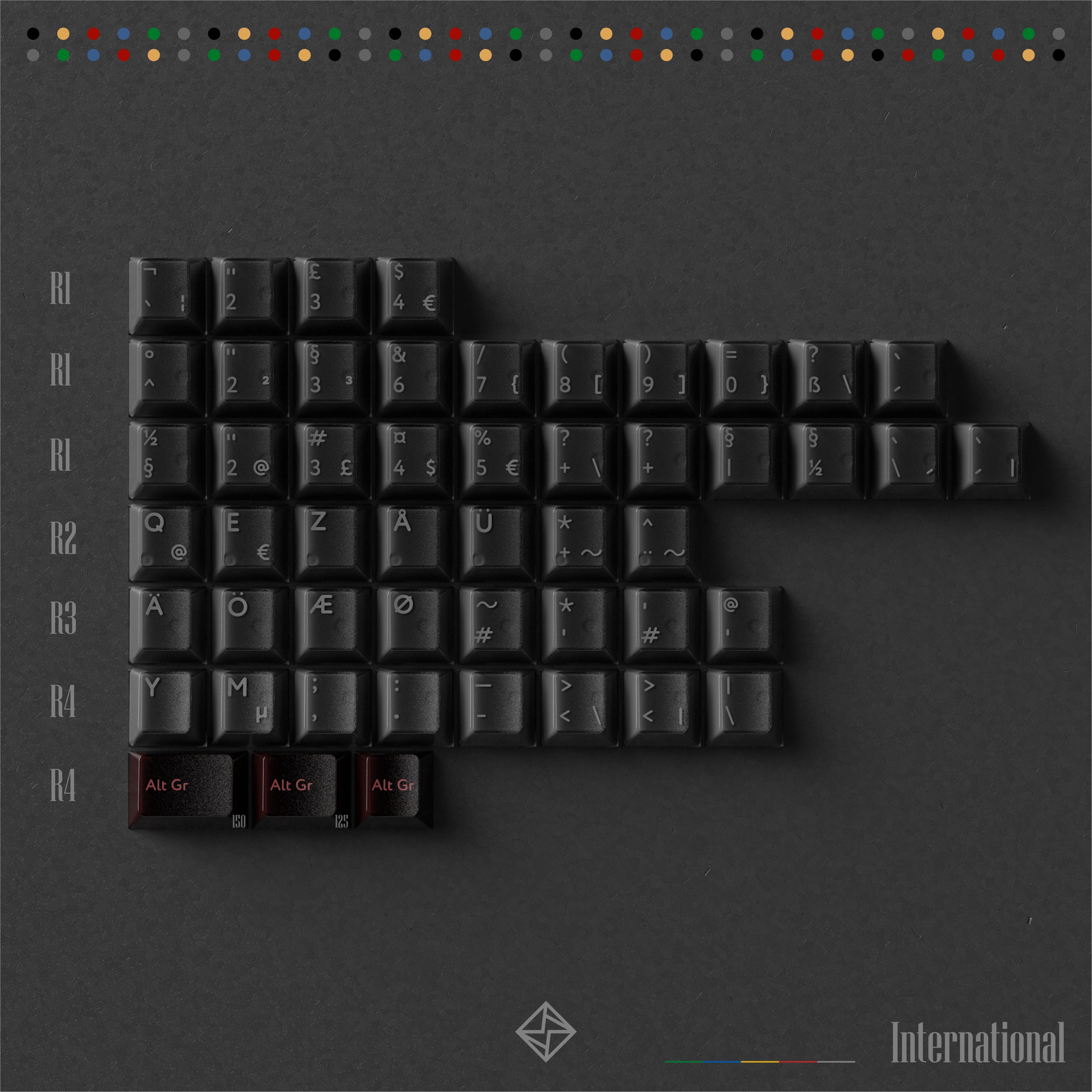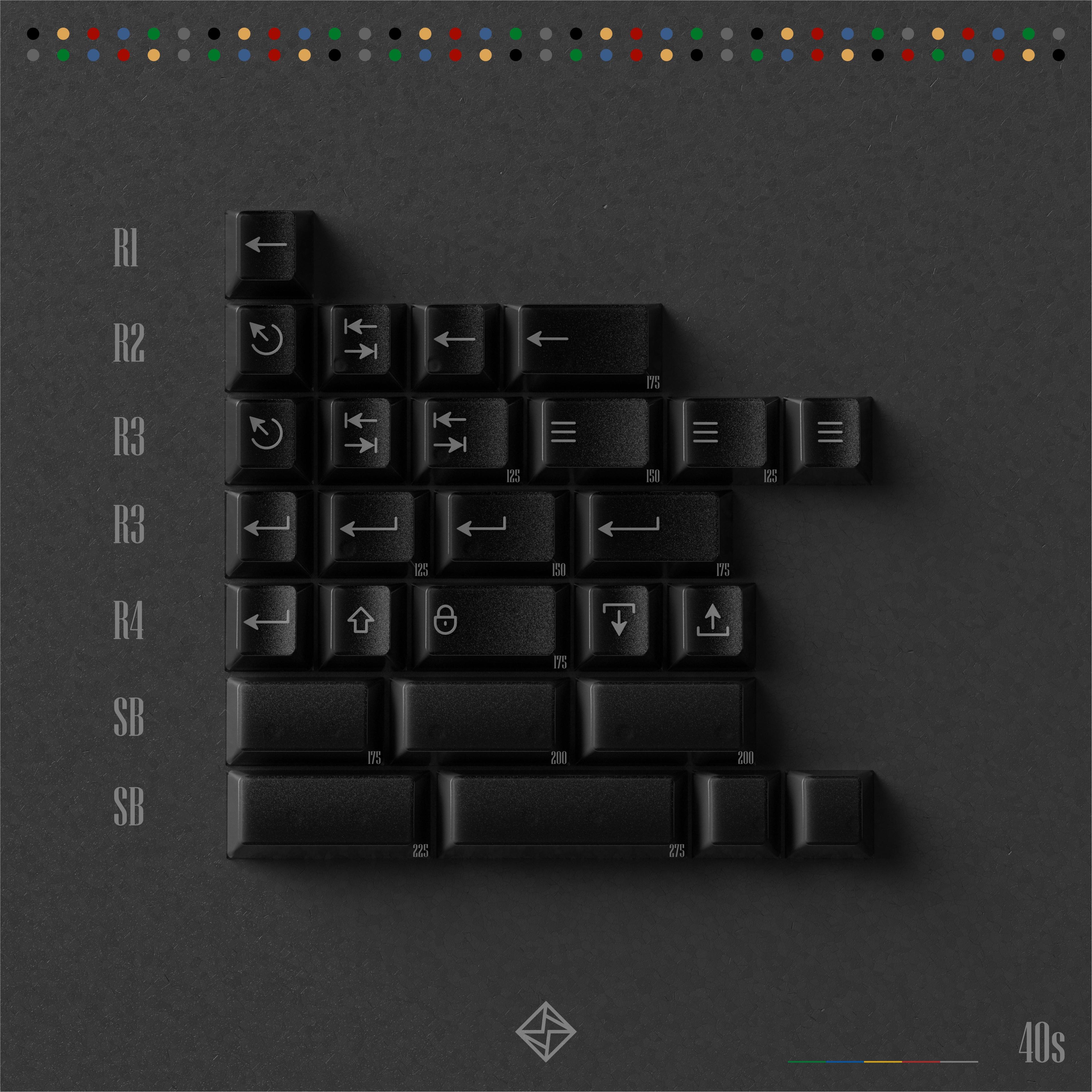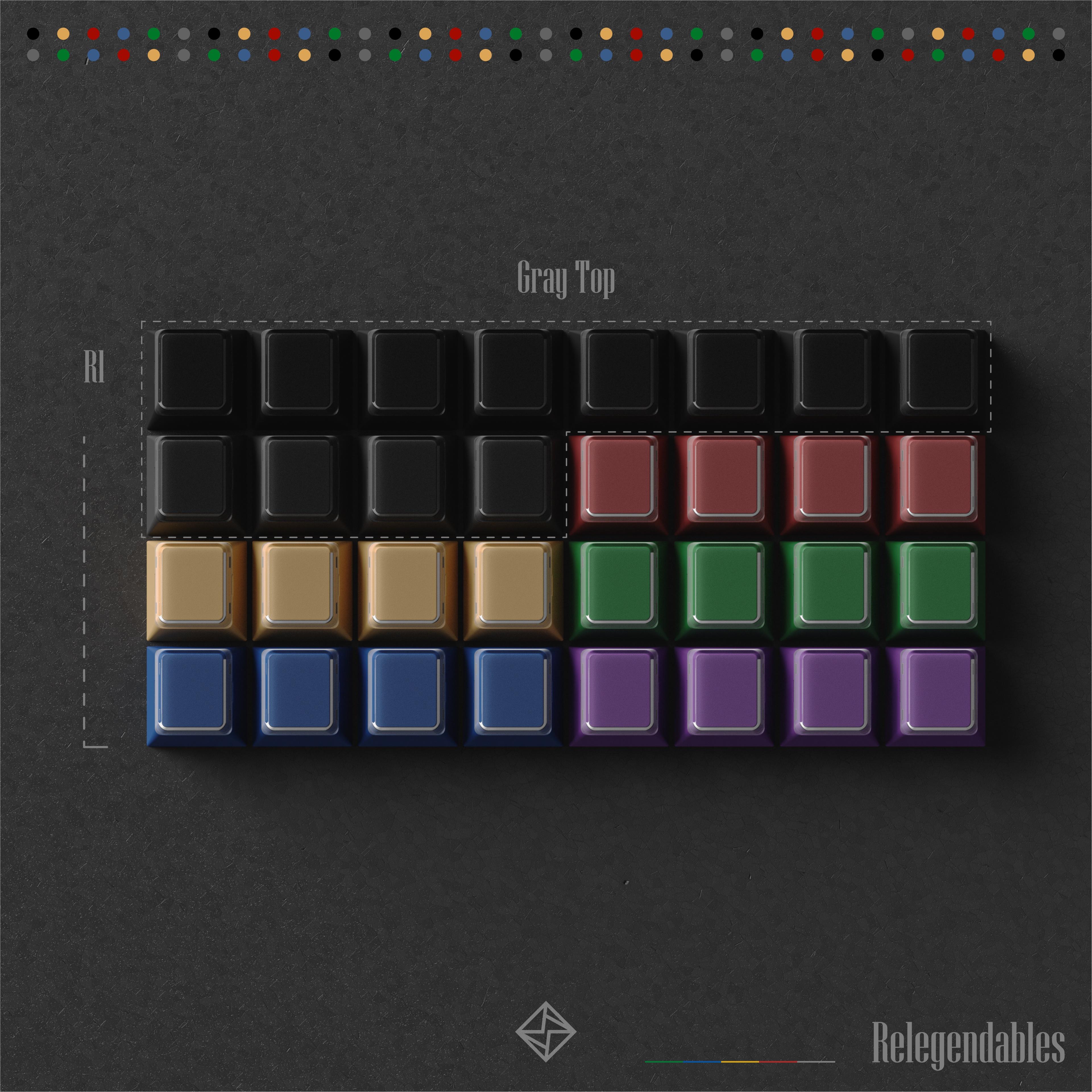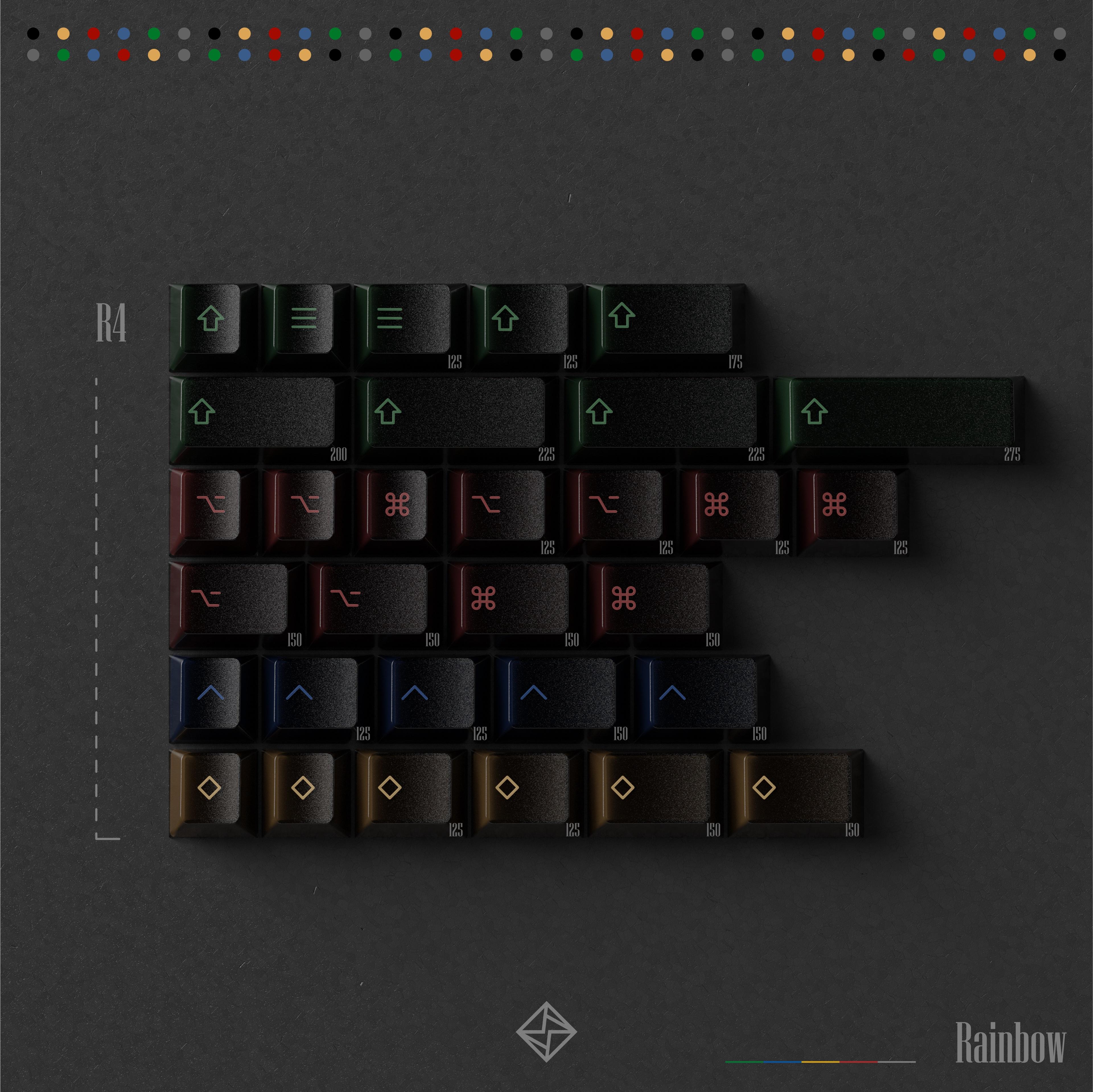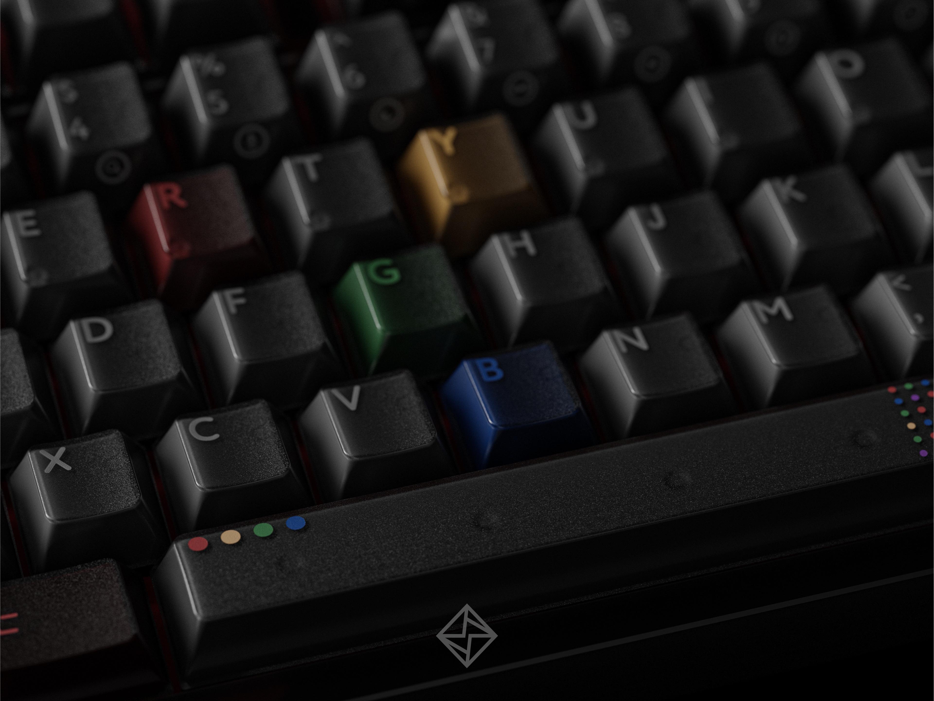 - The front legends of R1 num raw will use uv-printing. - The PBTfans logo and R1 icon novelties will add rainbow glitters. - The colors on alpha kit are the same as the alpha part on the R1 base kit, which are solid colors(not translucent)
