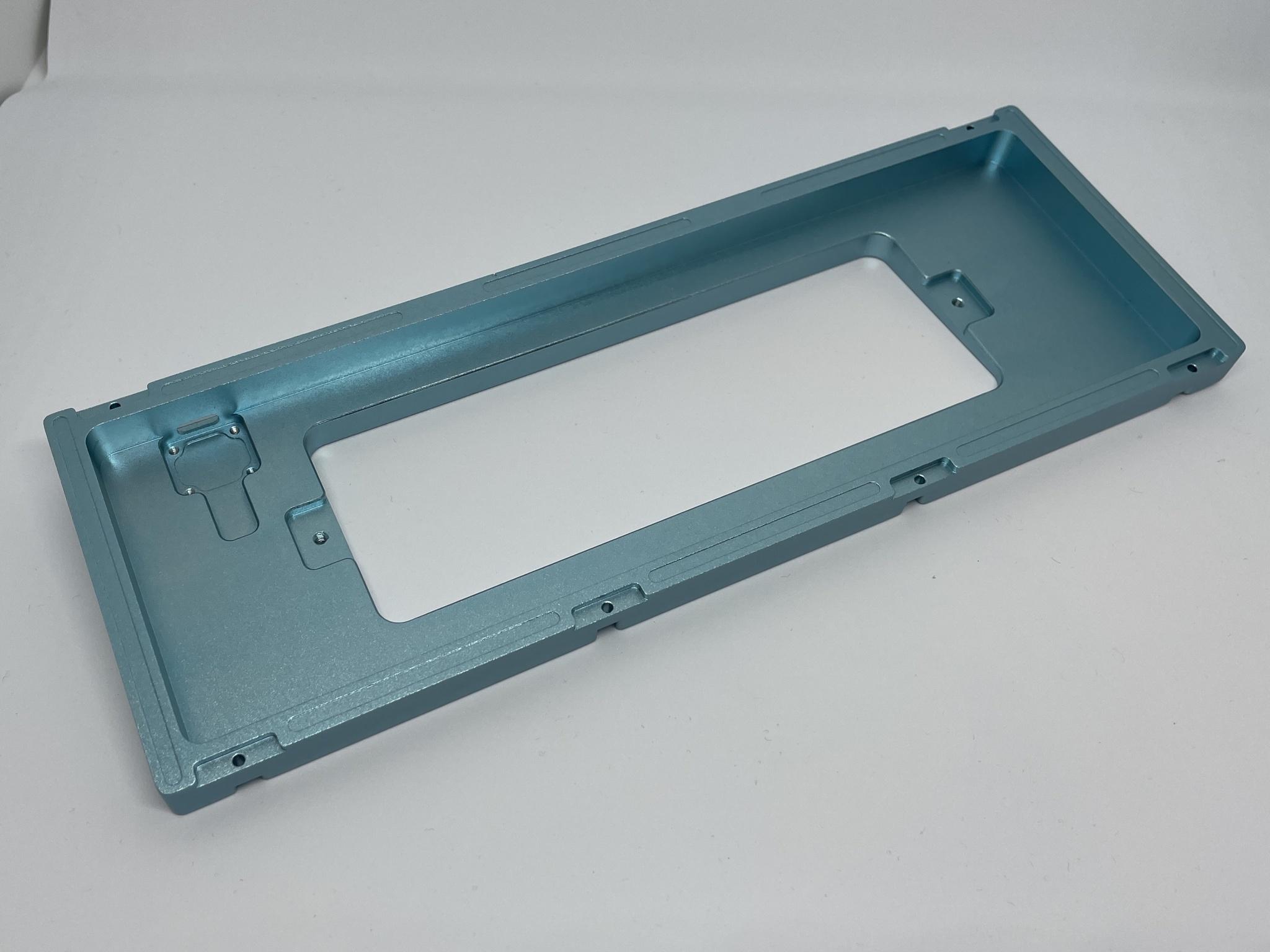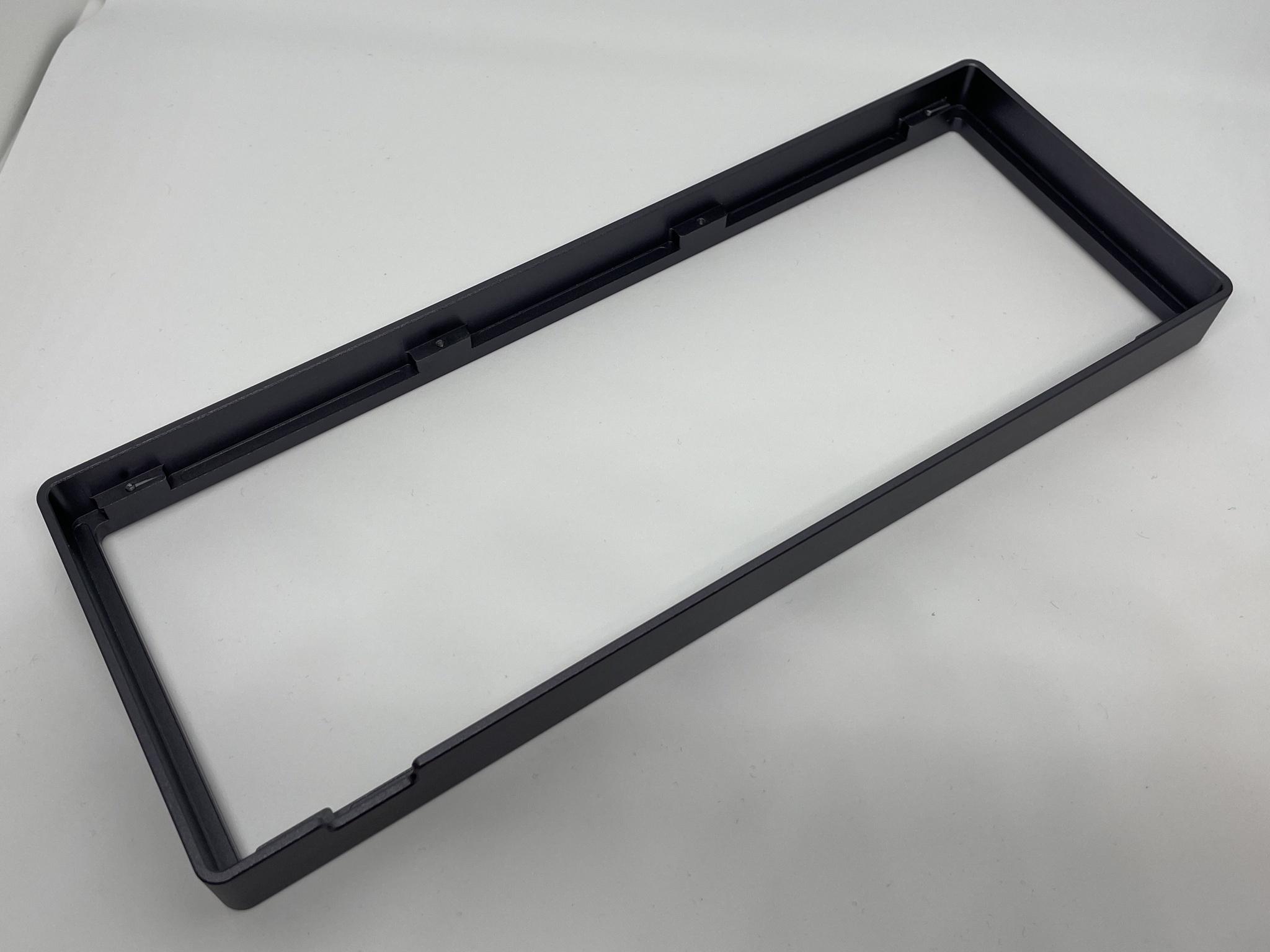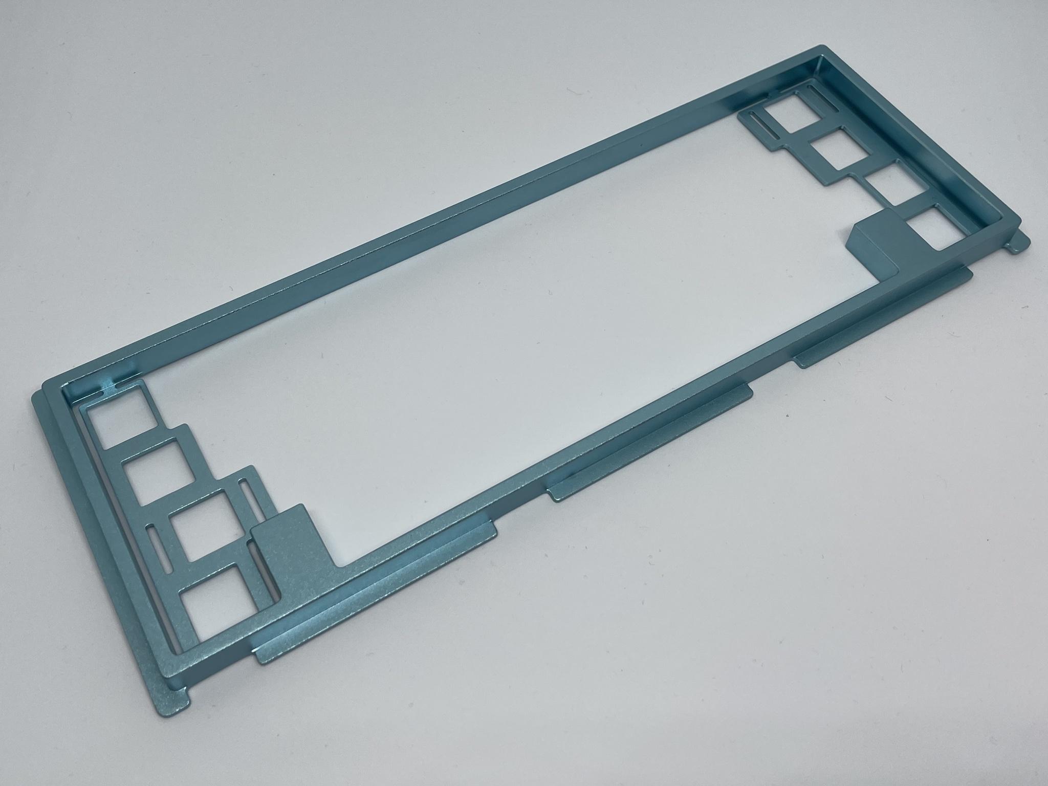 Case Design The switch plate (which is also the raised bezel) is an integrated half plate that is sandwiched between the top and bottom with poron foam strips for dampening. I went with this approach as I prefer to have stiffer modifiers for tap/hold functions, while still providing a soft, comfortable typing experience in the alphas.