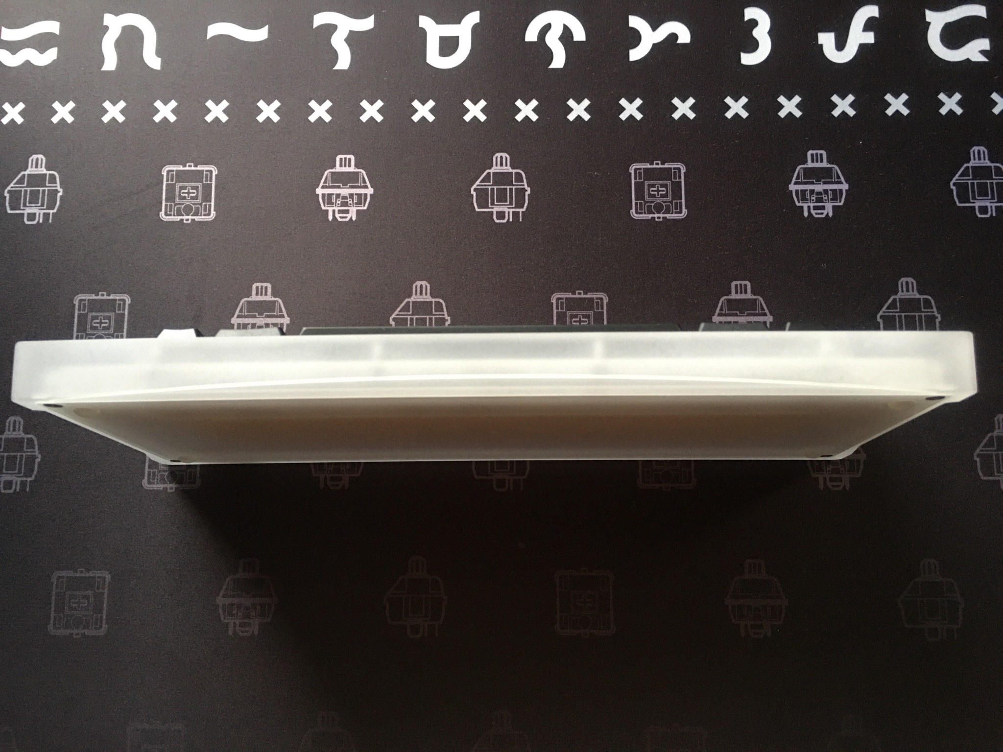 https://imgur.com/VpeYkjS). The bottom cover is attached to the top piece only on the four corners. I didn't put screws in the middle to achieve uniformity on the plate. The bowing is only .2-.3mm and does not affect the typing experience at all. Adding the height of the bump-ons, the bottom will not touch the surface of your table.