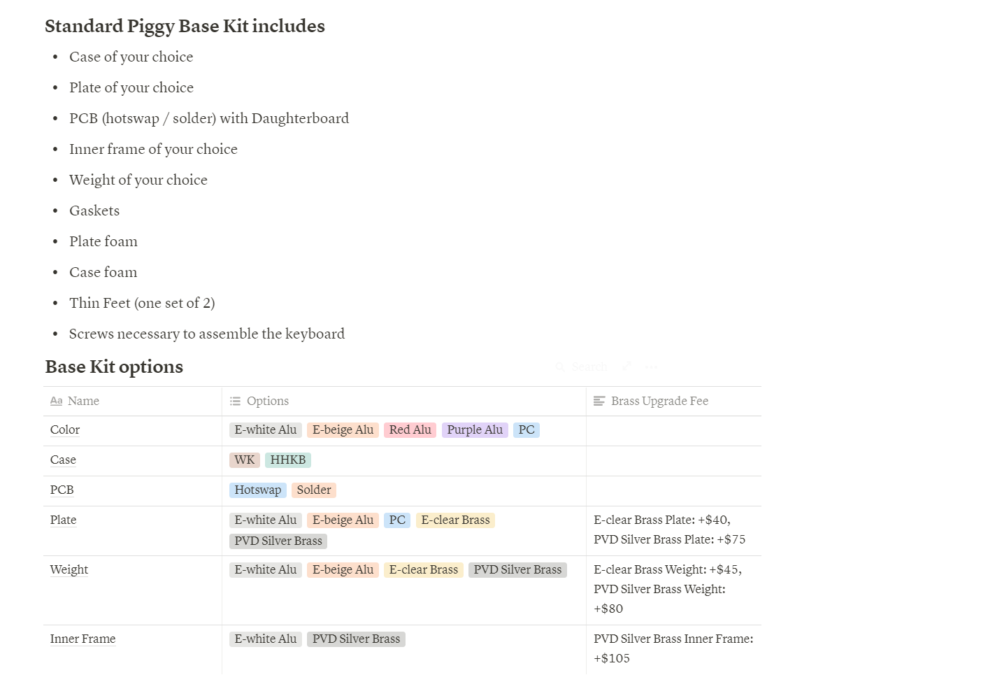 Price Change: - The Base Kit price for Alu and PC piggies has increased to $428 due to increases in manufacturing and material costs.