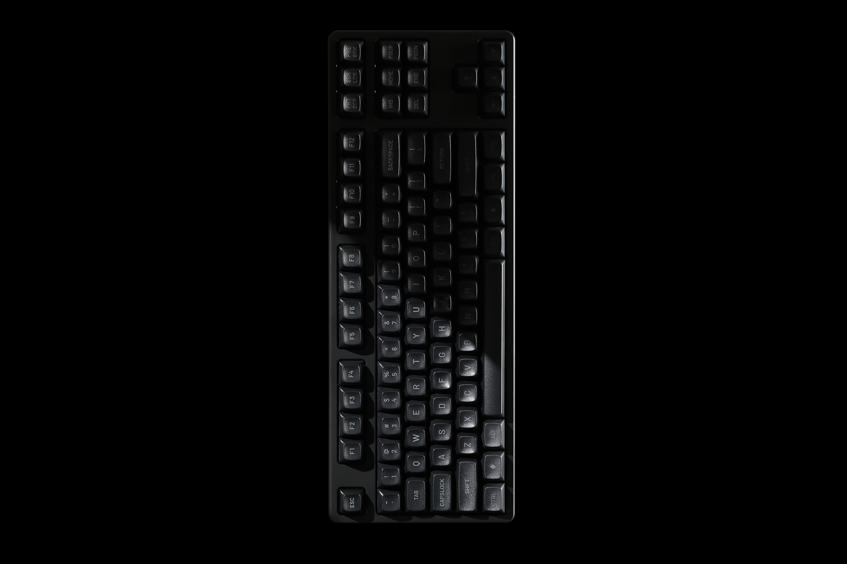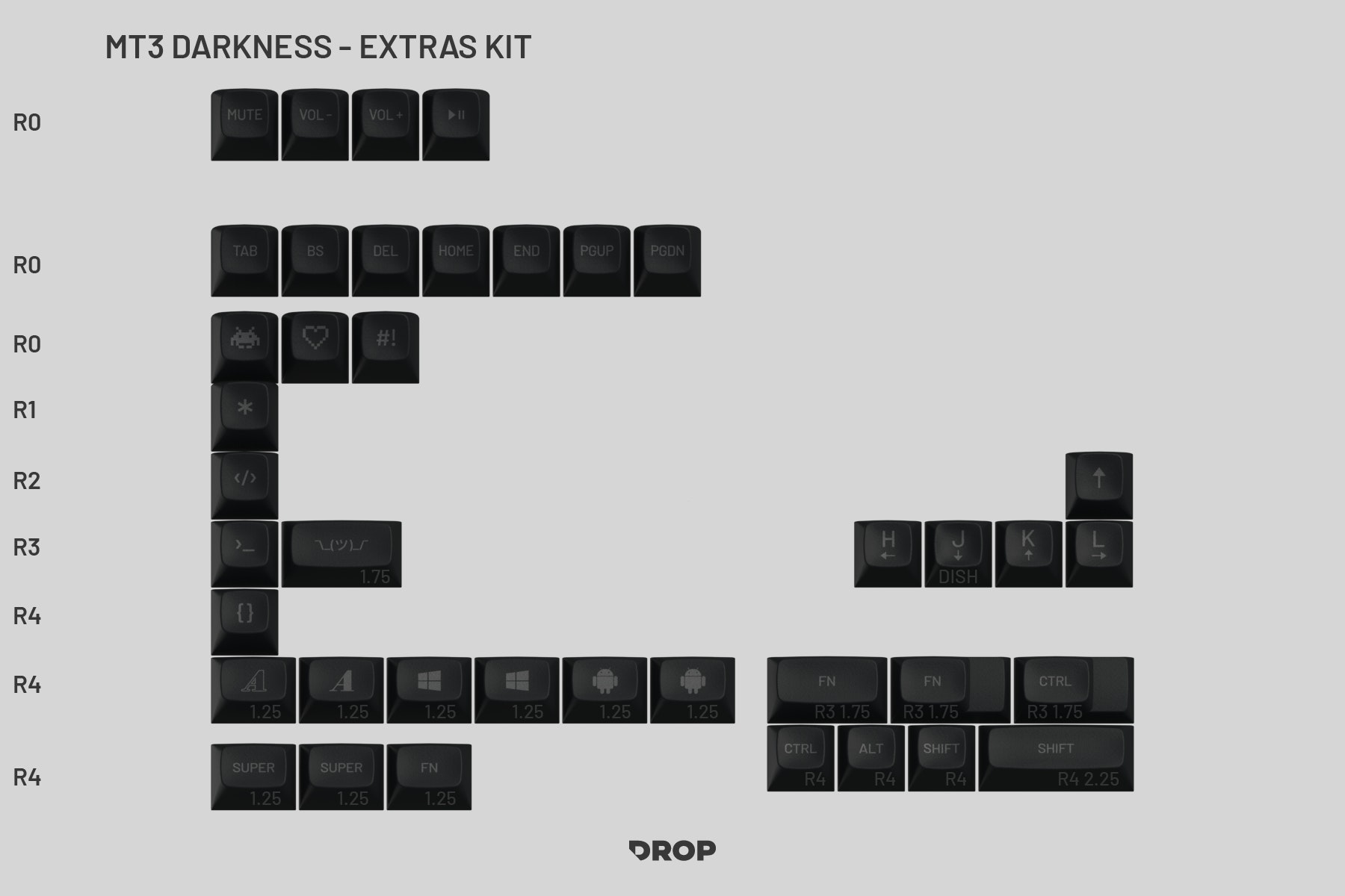 MT3 Darkness MT3 Darkness is a sleek and subtle set for those seeking a mute and, well—dark—aesthetic for their keyboard. The set features charcoal, almost-black keycaps with slightly lighter, dark-grey legends. If you're not yet familiar with MT3 profile, it features scooped keycap tops and a sculpted shape between rows to create a retro typing feel with a modern flourish.