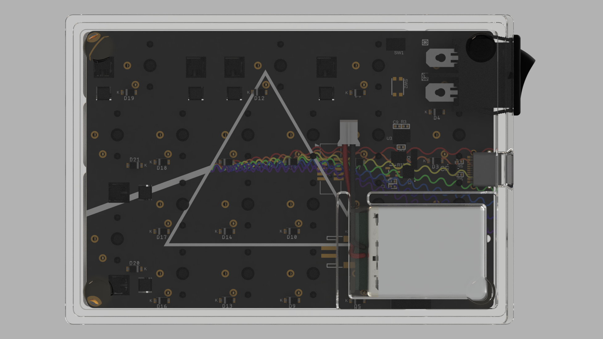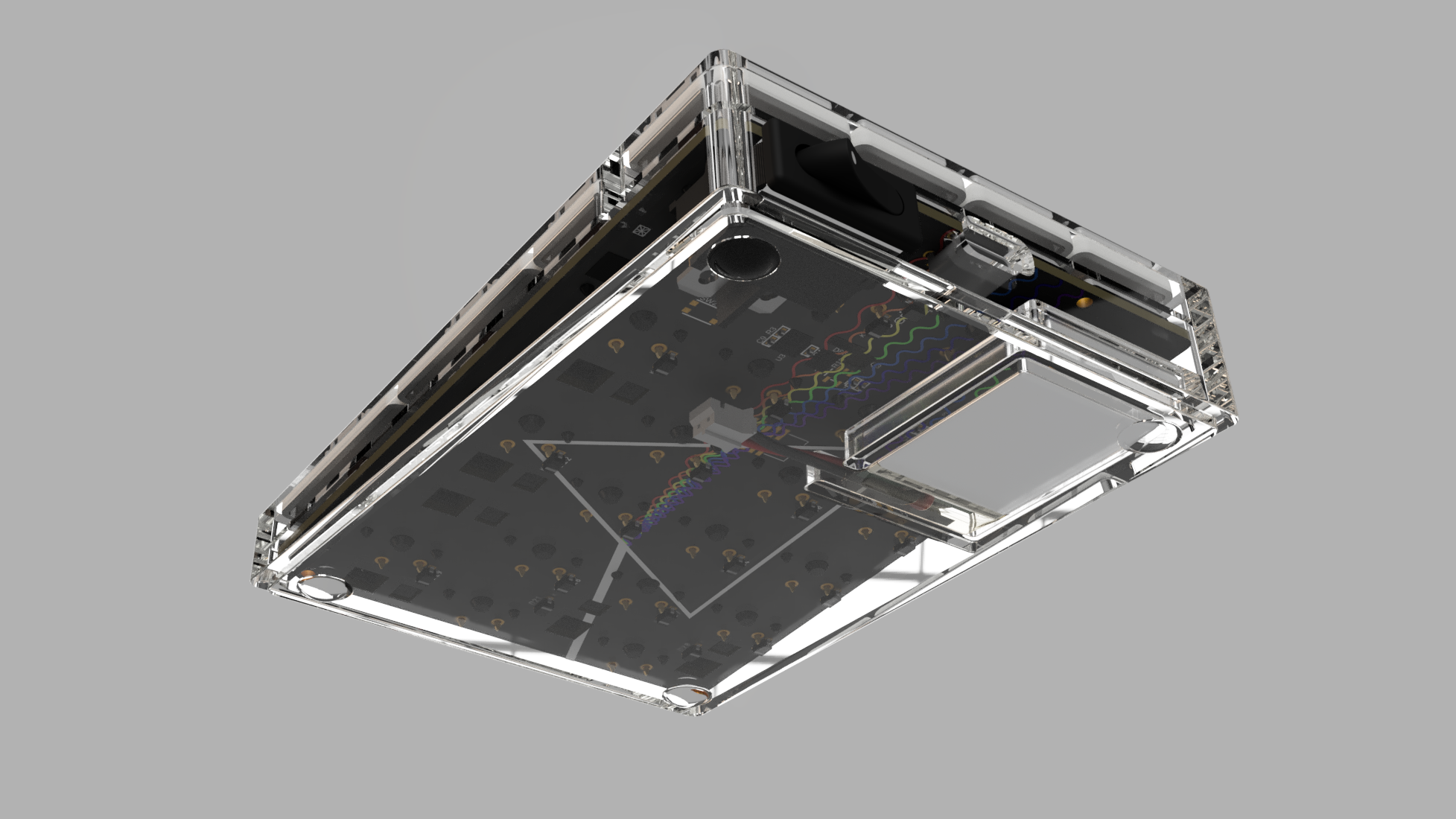 Integrated plate. Bottom piece will either clip in or screw into PCB posts.