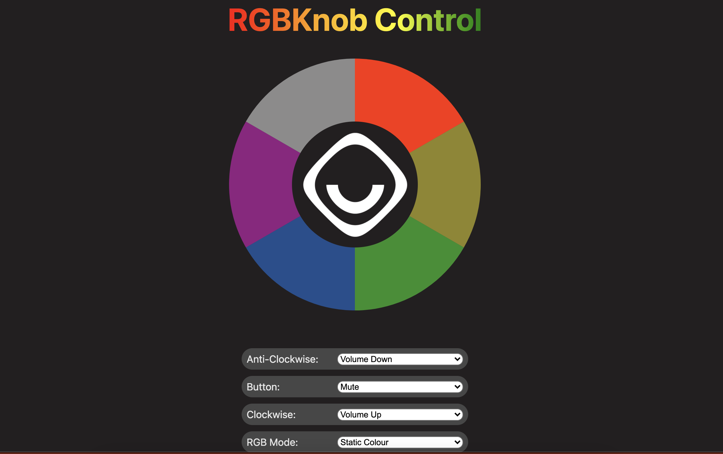Succeeding the connection, you will be greeted with the same colors as in your knob. You can select each one and specify what your actions do for: left-turning, right-turning and press.