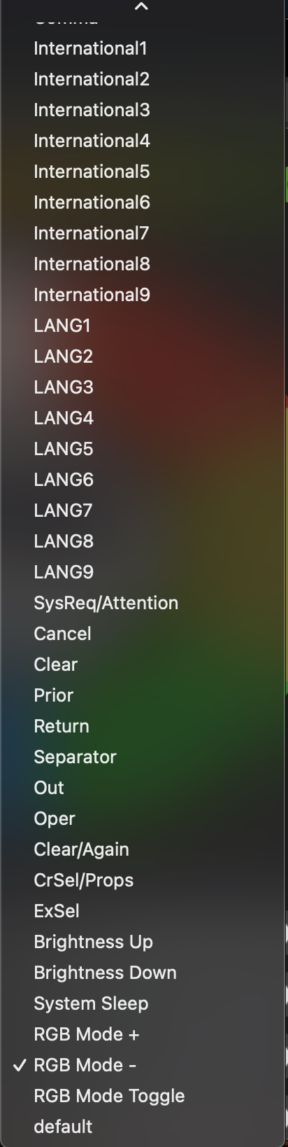 - Layer 6: RGB modes and toggle off/on to go trough all the RGB modes or to turn it off when I don't want to see light