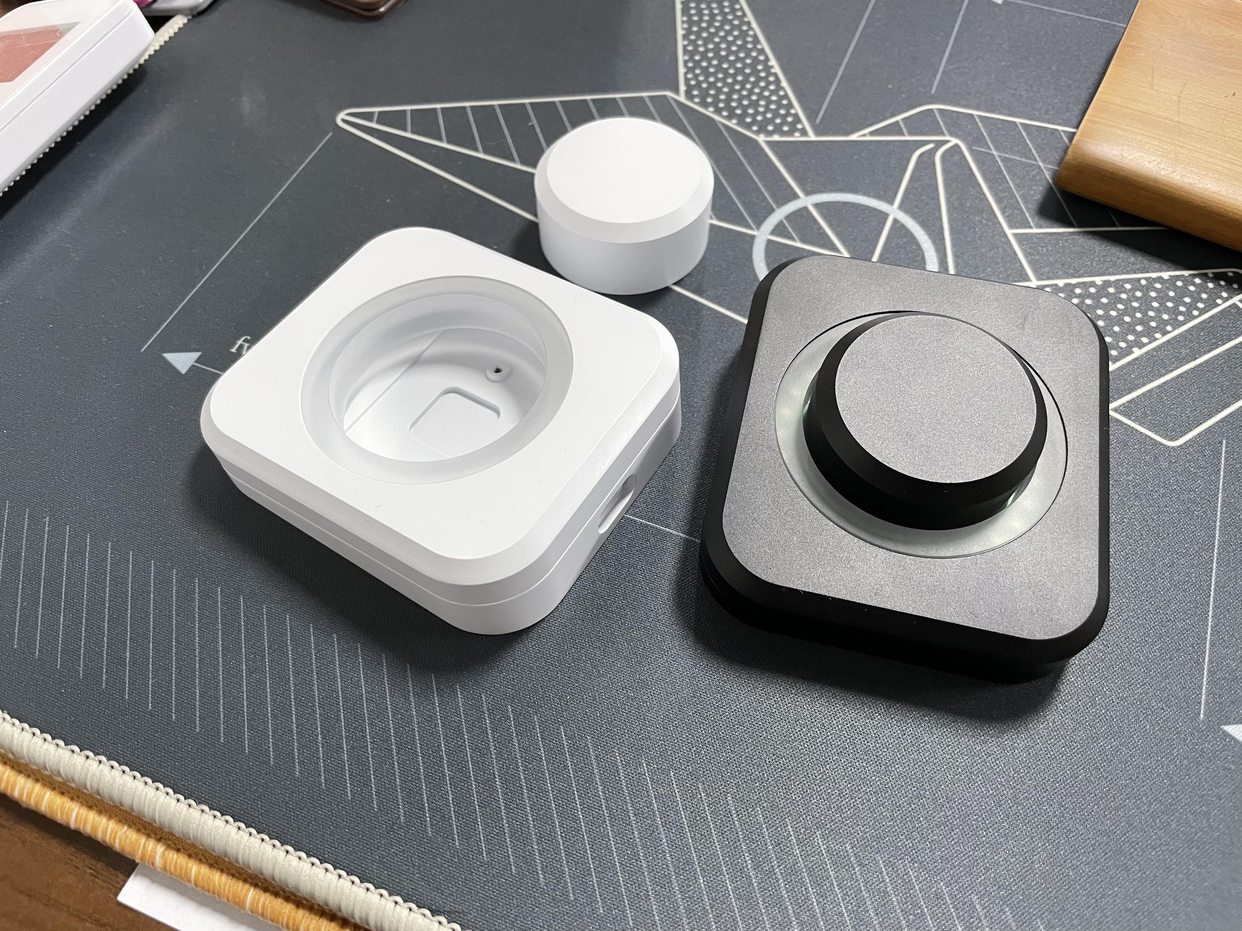 For the top and bottom of the case we used magnets to hold both. Makes the opening of the RGB Knob much easier and it's definitely a very nice feeling to let the case close on it's own.[the side of the knob has a hole for the screw to hold on the encoder, no wobble exists when using your knob](video from our old prototype, rose color does not exist & the texture on the actual concept is smoother)