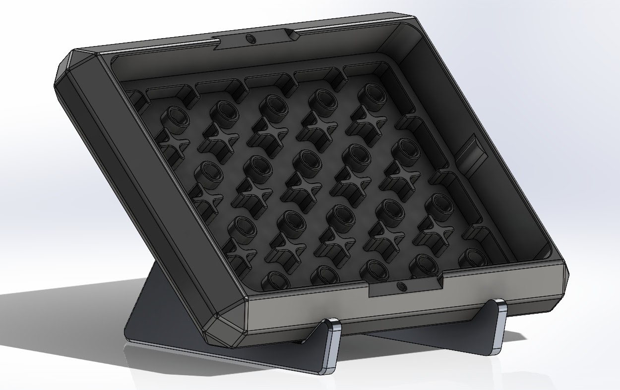 - Aluminum 6061 CNC. - Sand pressure & anodized finish. - Acrylic cover with magnets. - Displays up to 24 artisans (6x4). - Non-slip bumpers.
