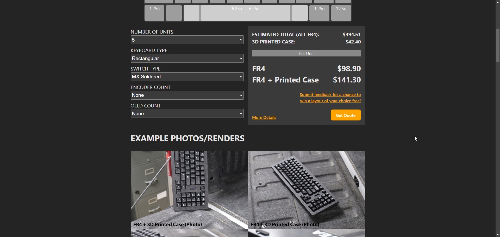 BackgroundHello everyone! Jack from Pikatea. We recently launched a new service for providing custom keyboards with the layout of your choosing for low MOQ and low prices. I'm able to pull this off by using parametric design, code automation and 3D printing to bring the cost of manufacturing way down. All you have to do is input the "Keyboard layout editor" raw data into the website and it instantly gives you an estimate! It's not intended to be ridged or strict but more of a tool that gives you an idea of what it might cost to have the keyboard made. There's a comment box to make special requests and I factor those in when providing the final official quote! I encourage you to try out a layout and see what you think! All feedback is welcome and we have a form on the site for it!