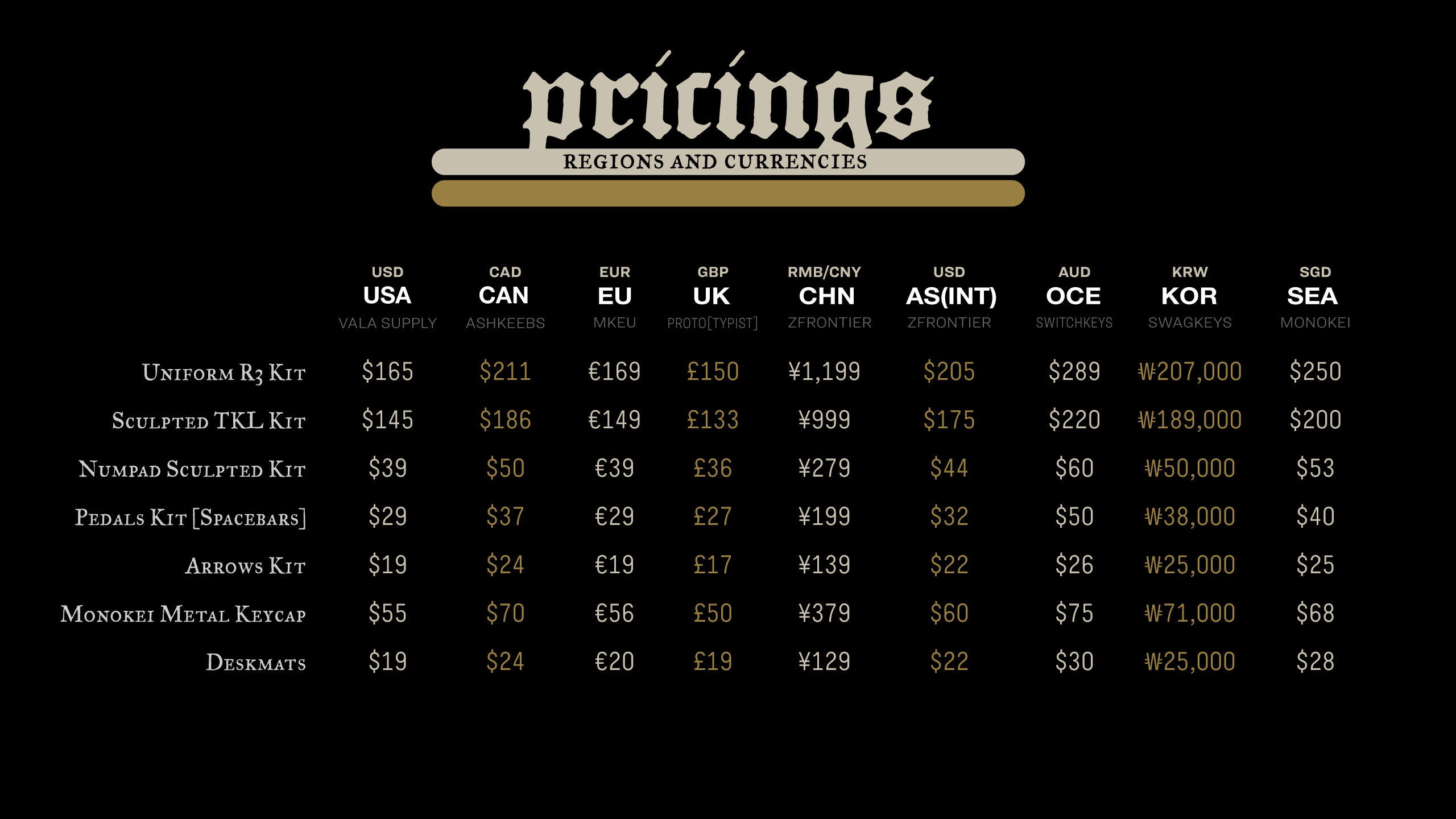 SA Sculpted TKL Kit (1-1-2-3-4-3)Price
