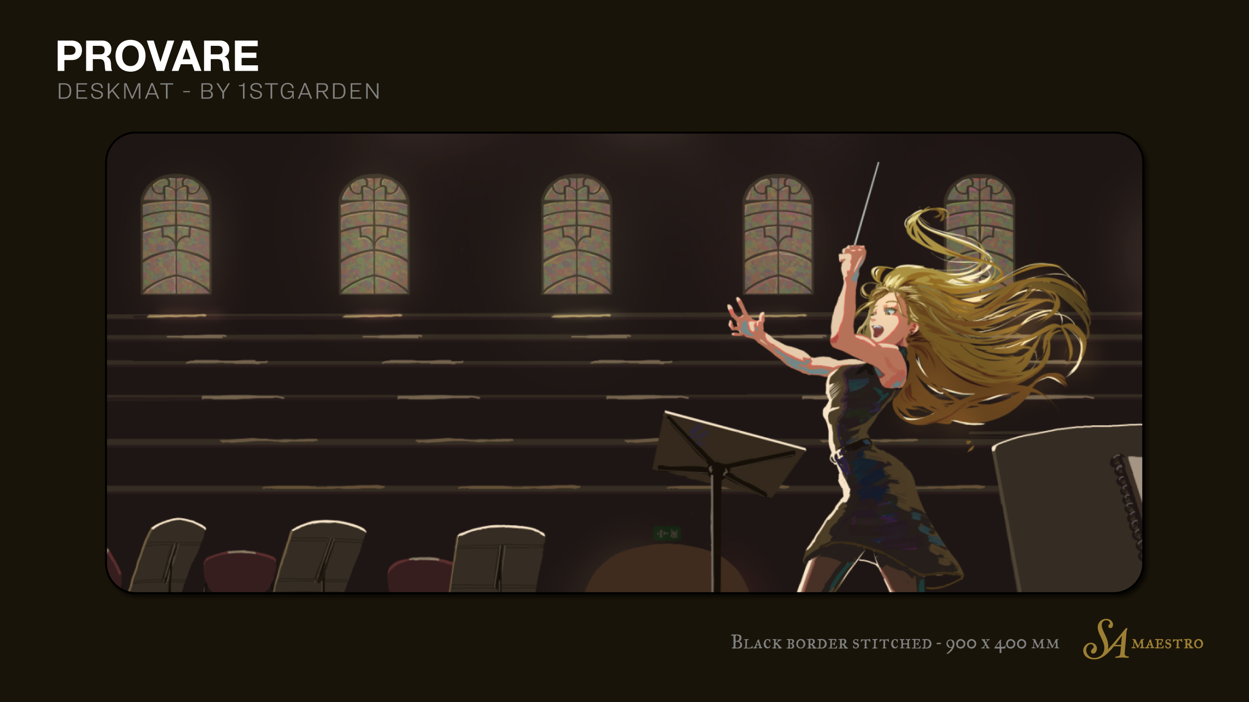 NocturneMinimal design featuring Maestro Logo - Print stitched, 900 x 400 mm.