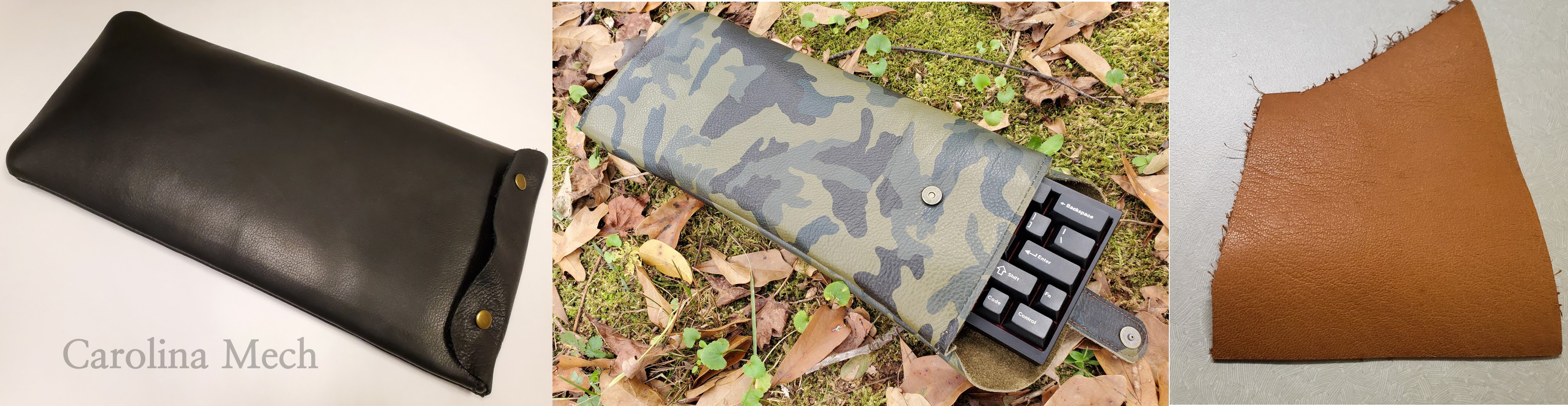Carolina Mech + Jack Foster Leather Custom Handmade Leather Keyboard Sleeves Group Buy! TKL and 60% sizes available. Leather options: Horween black, Horween brown or camouflage pattern.