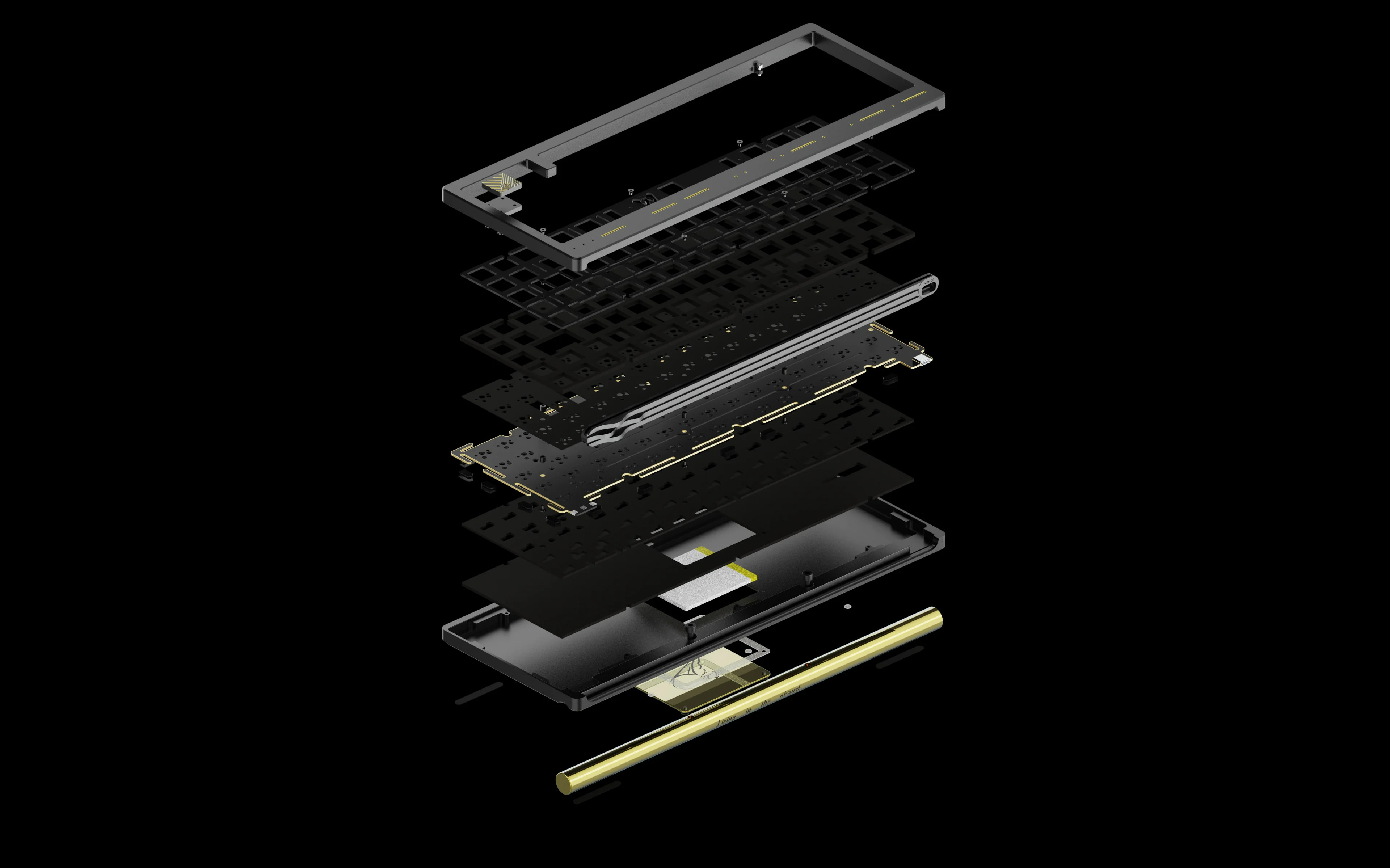 Upgrade bag contains Case*1 Bluetooth dual-mode PCB*1 Battery*1 (Charges via USB-C cable) Middle frame*1 Foot pad*4 Screws*4 Ps. The switches and the keycaps in the renders are not included by the upgrade bag.