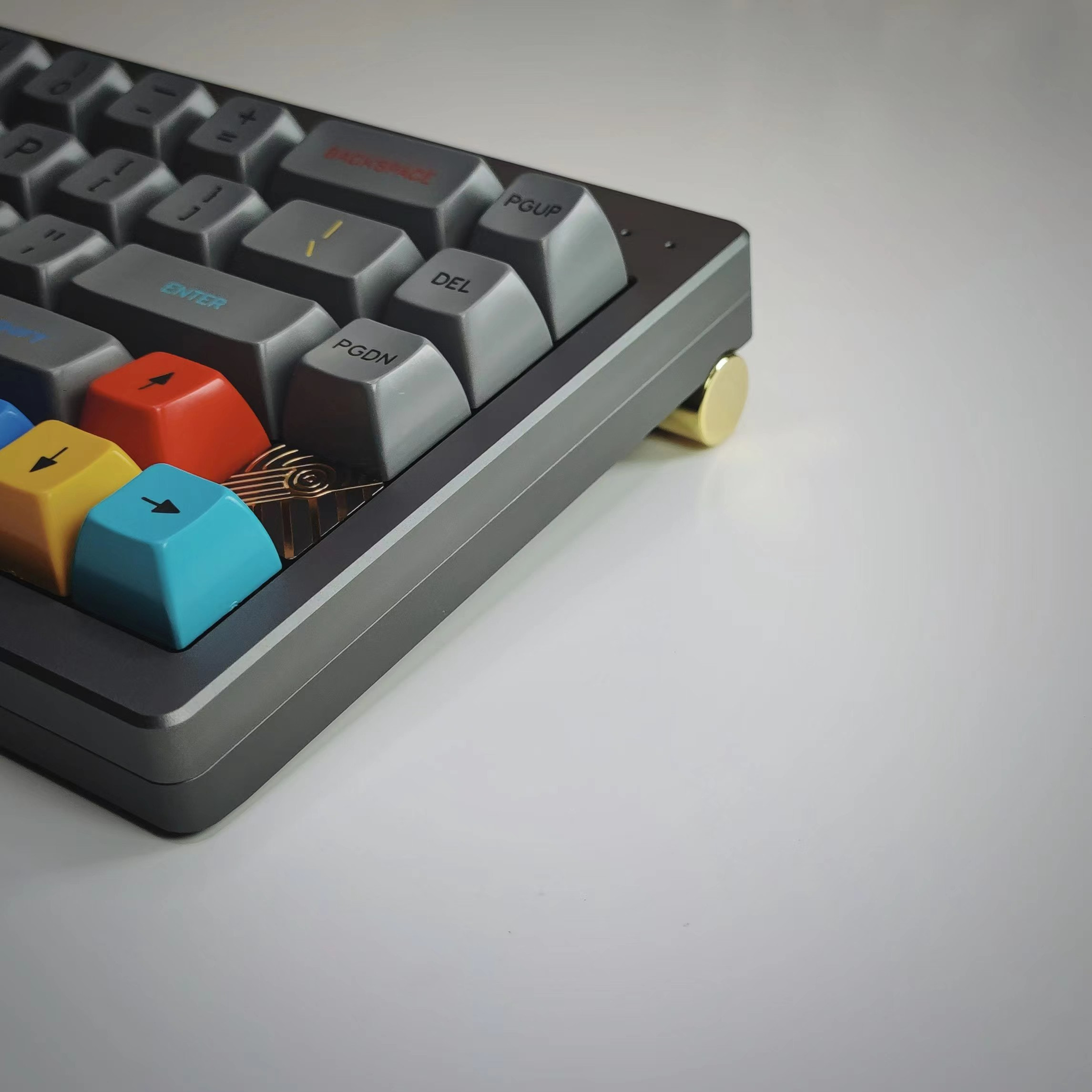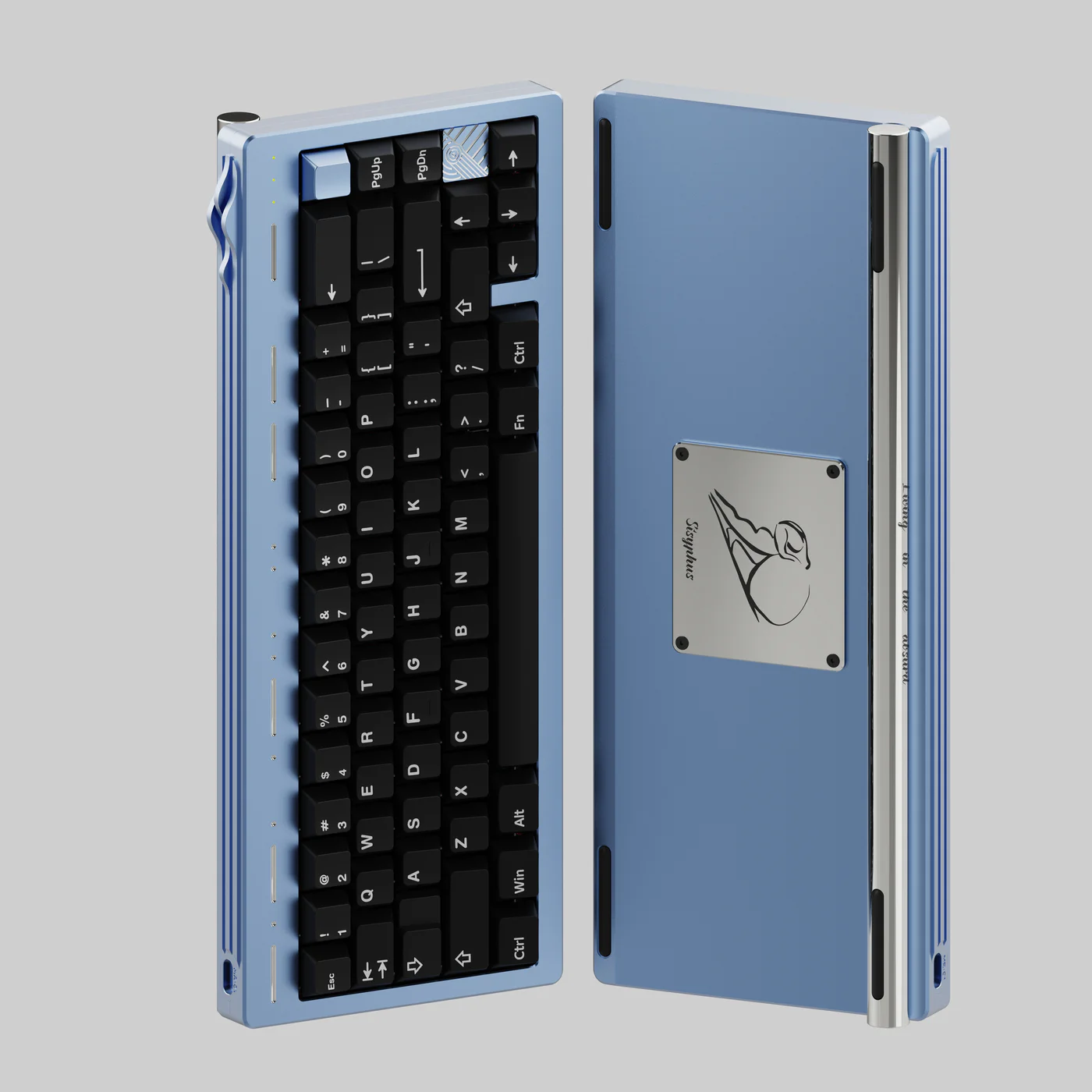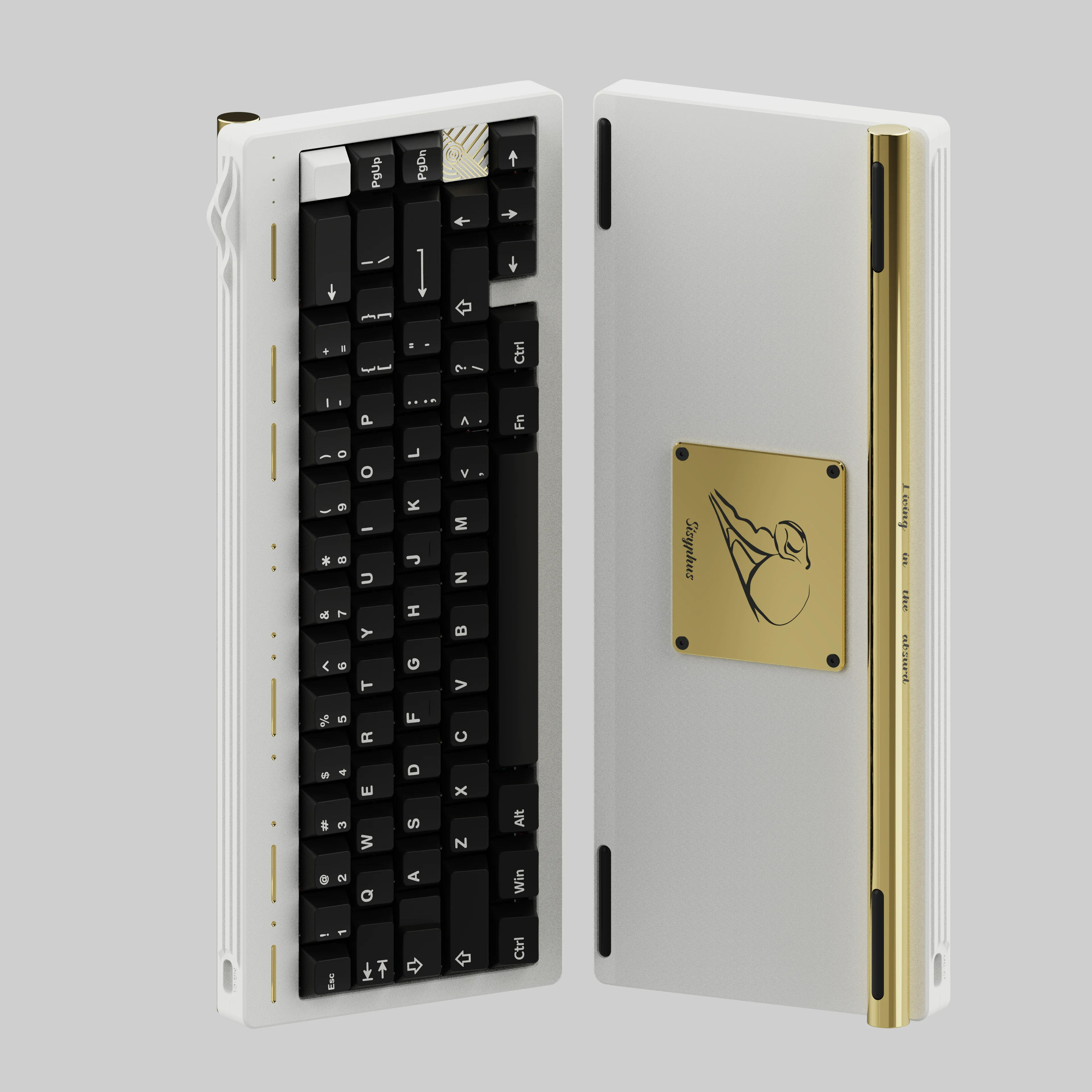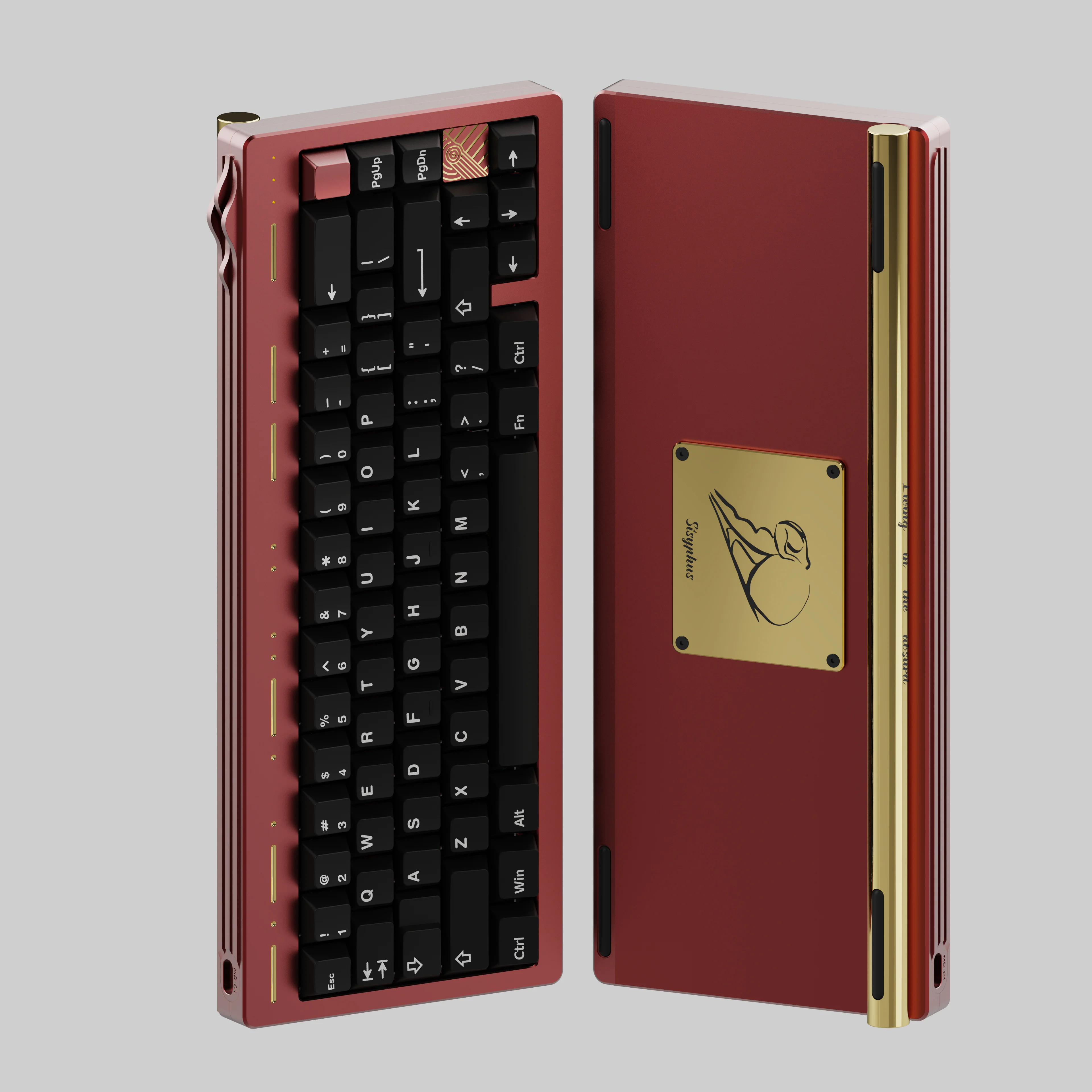 Designs Our vision for the Sisyphus 65 was to create a visually appealing keyboard that draws inspiration from the absurdist tale of Sisyphus, a well-known ancient Greek myth. Our aim was to achieve a sophisticated design that is easily recognizable due to its uniqueness. To pay homage to the dystopian hero, we have incorporated contoured lines on the keyboard that depict the hill and the boulder. The PVD stainless steel column represents the weight of the boulder, while the straight lines on the main part of the case top represent the hill. Moreover, we have included the Morse code "C L I M B" on the top of the keyboard, a word that is used repeatedly in the Sisyphus story. Additionally, we have used dichroic anodizing on the front of the keyboard and the metal badge to add to its charm and character. Overall, we are confident that the Sisyphus 65 will capture your imagination and leave you enchanted with its exquisite design and attention to detail.