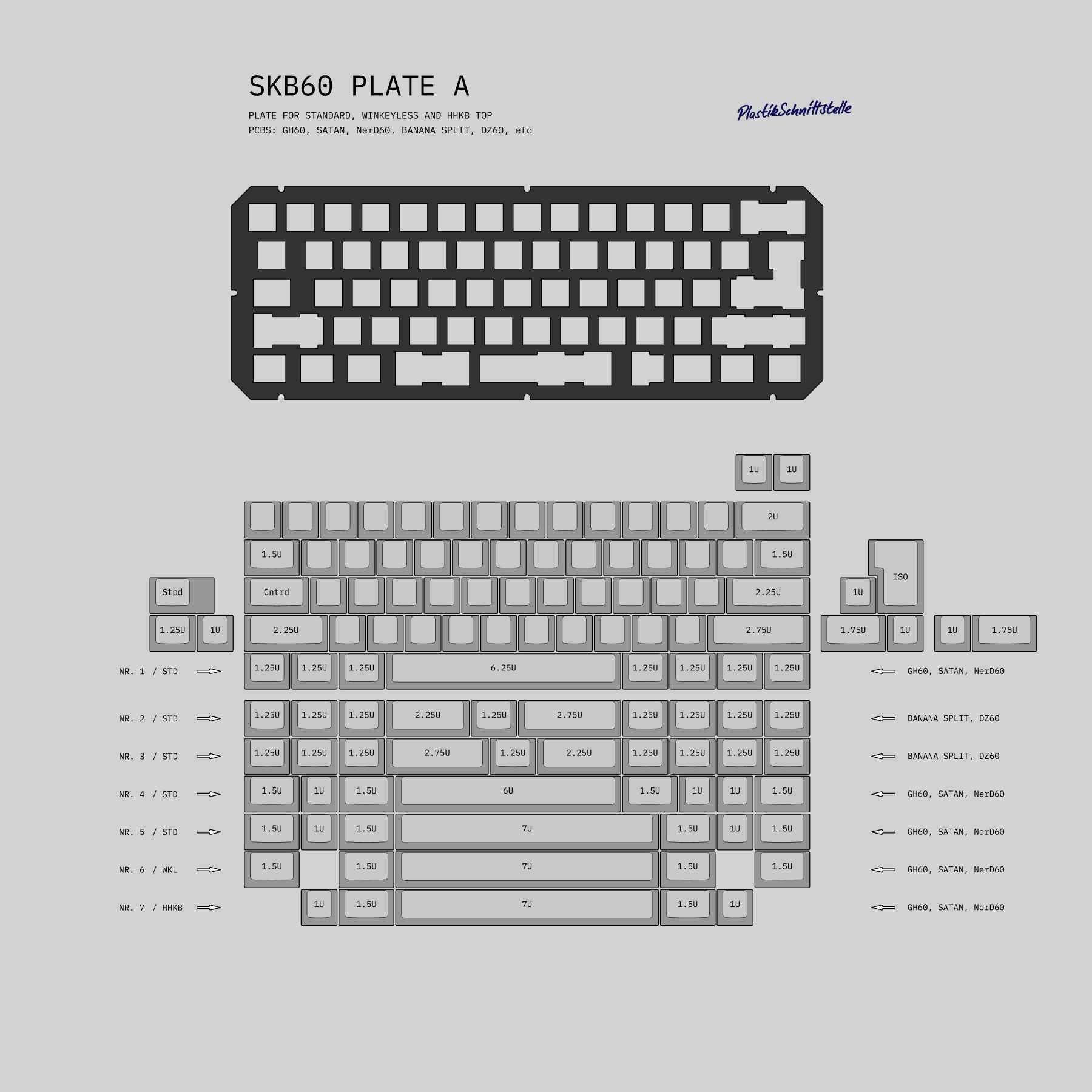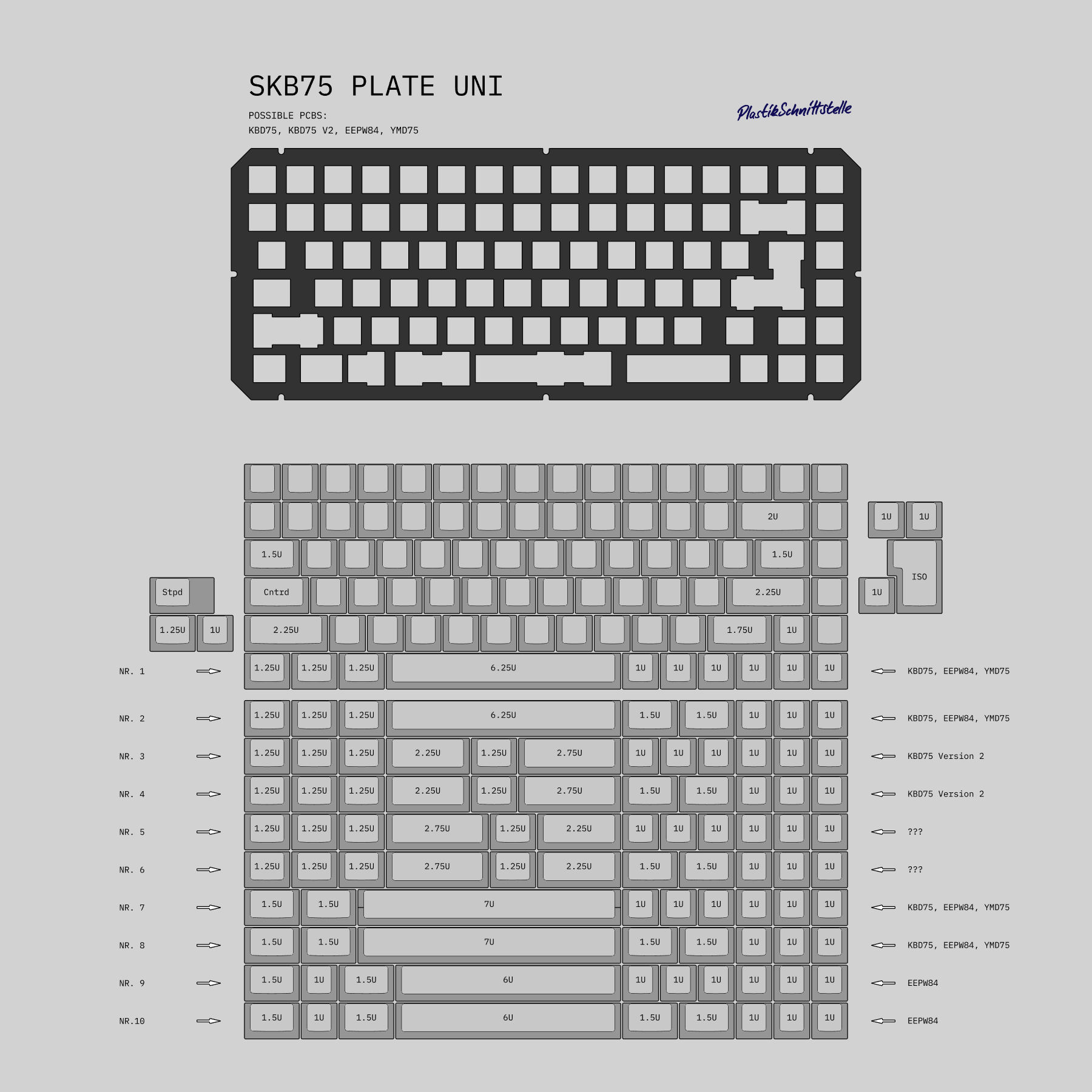 All plates are ANSI/ISO unified and only support Cherry PCB mount stabilizers.