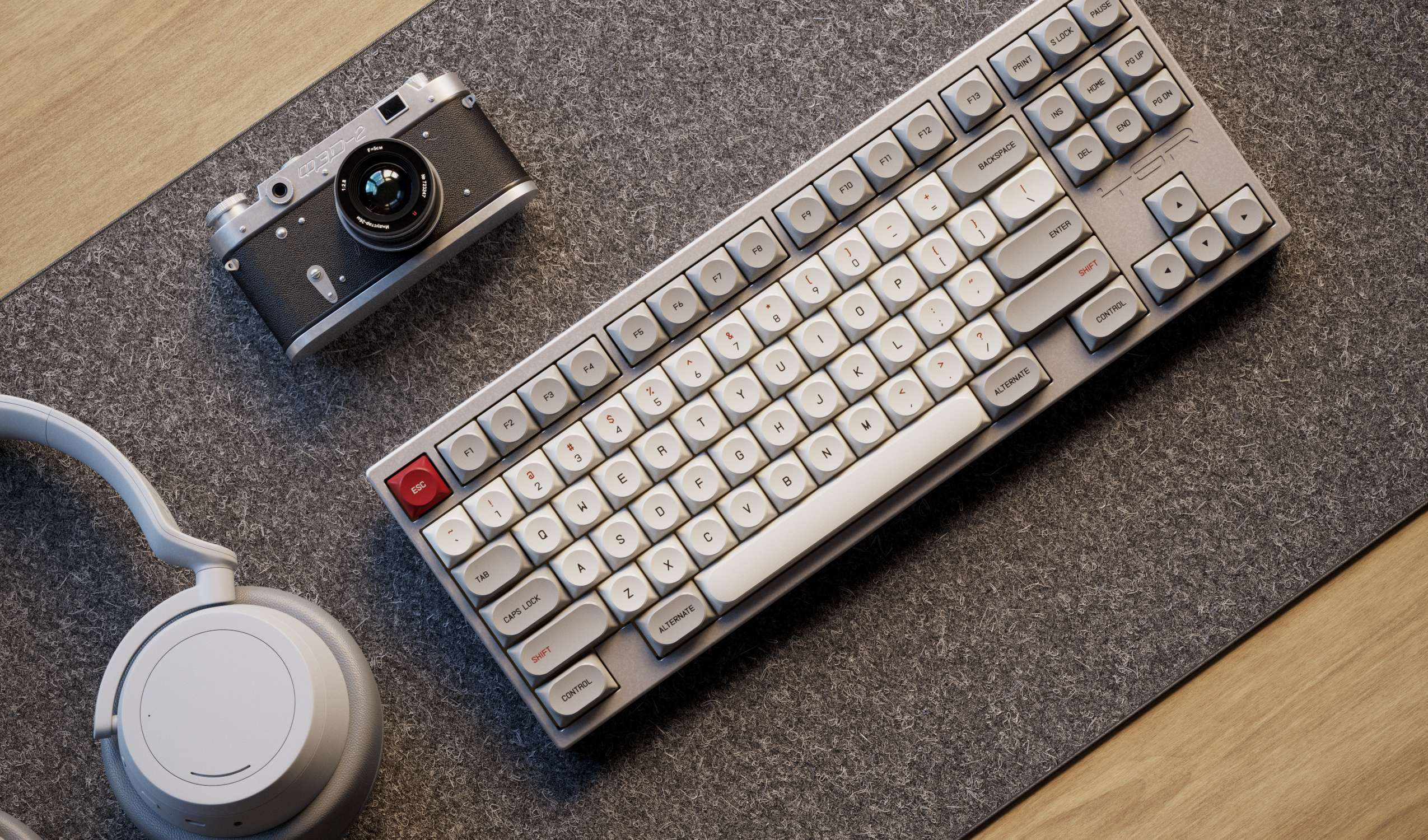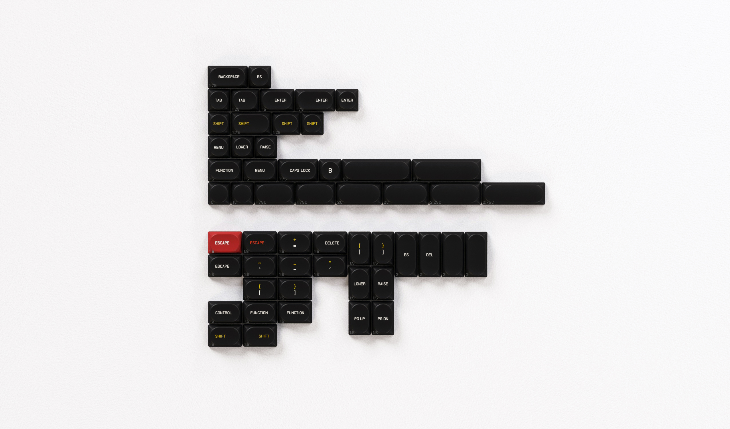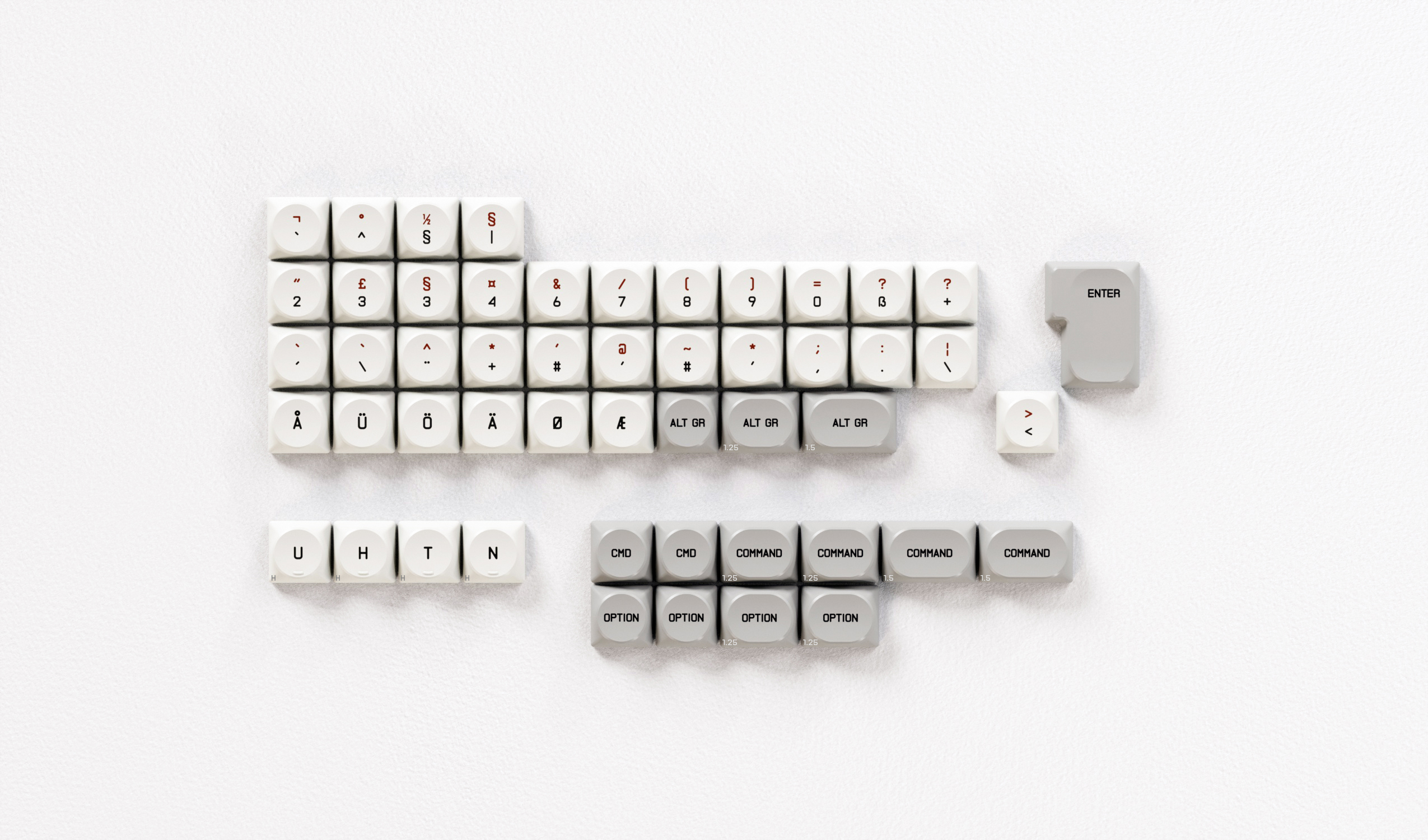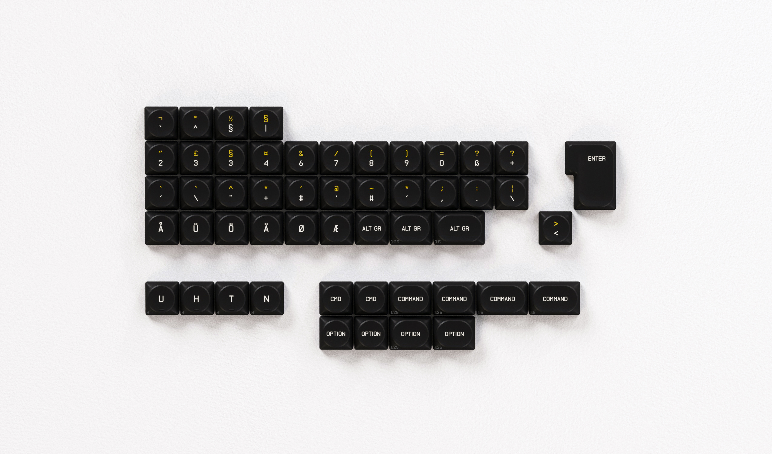 • Round top keycaps with capsule-shaped dish cutaways and tapered base • 1.5mm PBT plastic with dye-sub and reverse dye-sub legends • Supports ISO enter and stepped caps lock • Produced by FK Caps