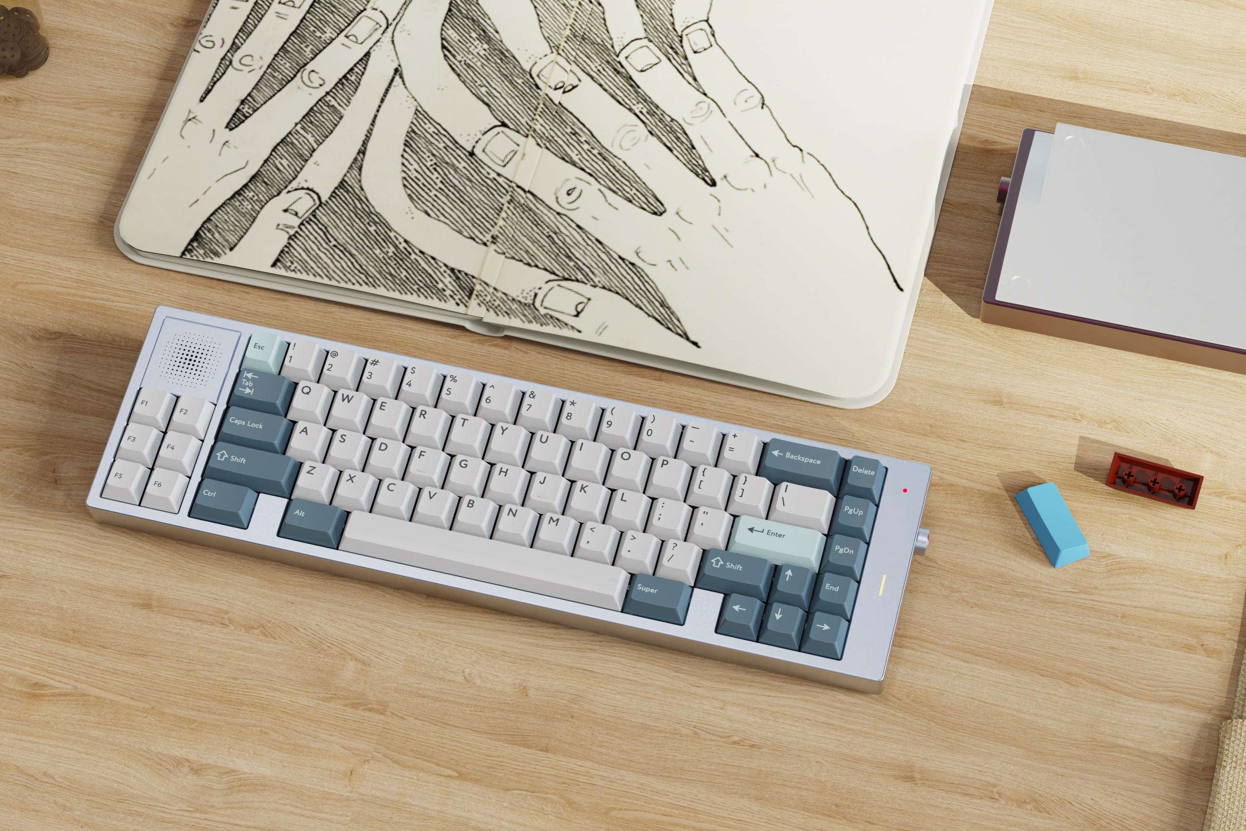 It’s a 65% with a knob and a customizable LED macro module. Following the feedbacks received in IC, we've removed the crucifix-looking design due to religious concerns.