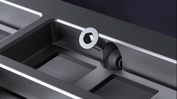 BAIONBOLT SYSTEM tilts the screws and conceals them within the otherwise wasted space within the keyboard.