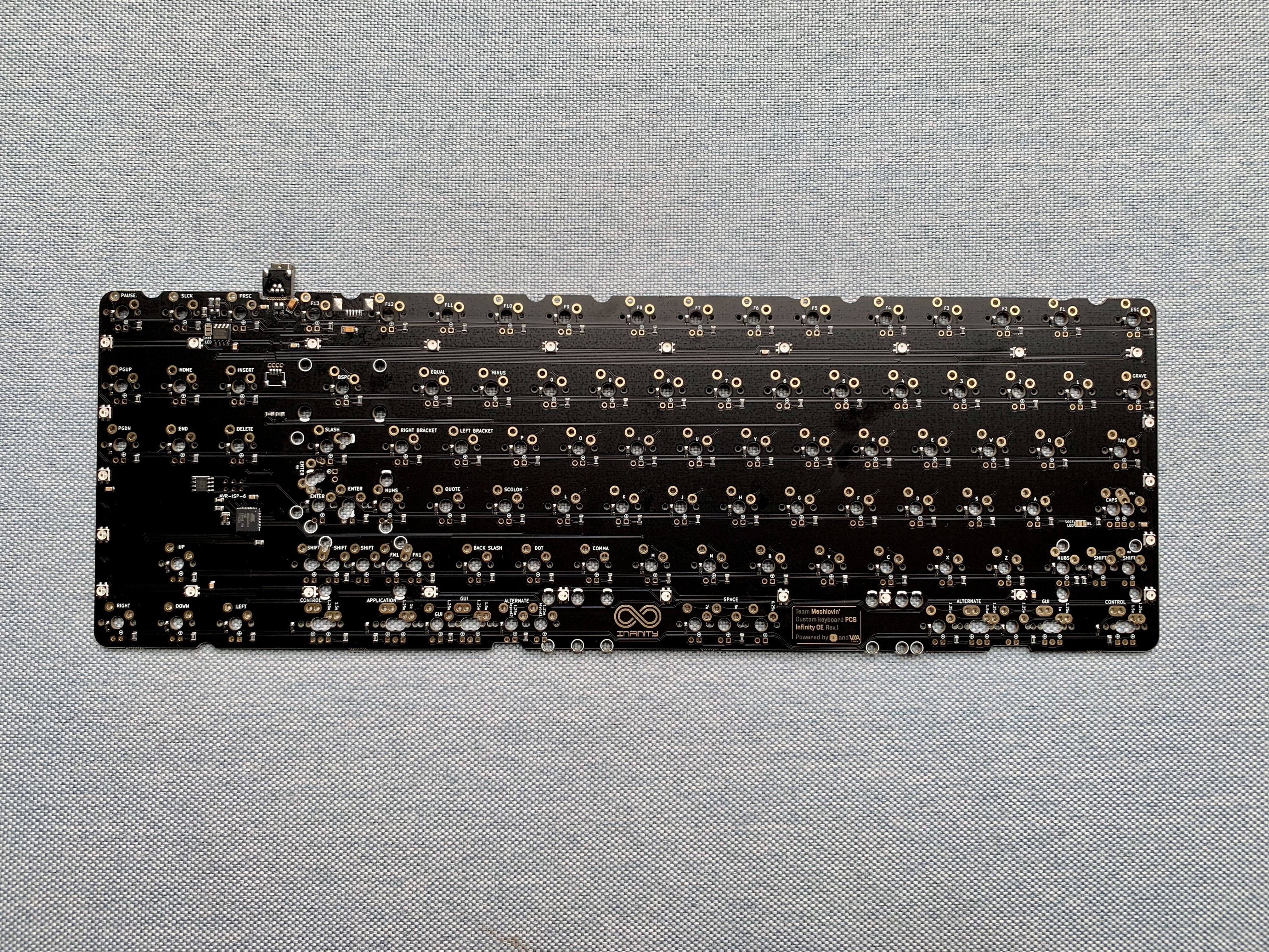 We made this 1st protype months ago. Final prototype is being produced and will be updated ASAP. Please note that this has north-facing spacebar stabs. The Infinity 87 PCBs will have south-facing ones!