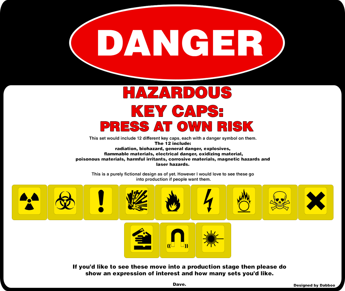 Update #2: 30/9/12Okay final design is up, there are now total 12 key caps in this set as requested by a couple of people. This is so they can be used as either number keys or function keys. I've avoided the gas mask idea as I don't think it fits this set but I'd be happy to design one for a different GB if requested.