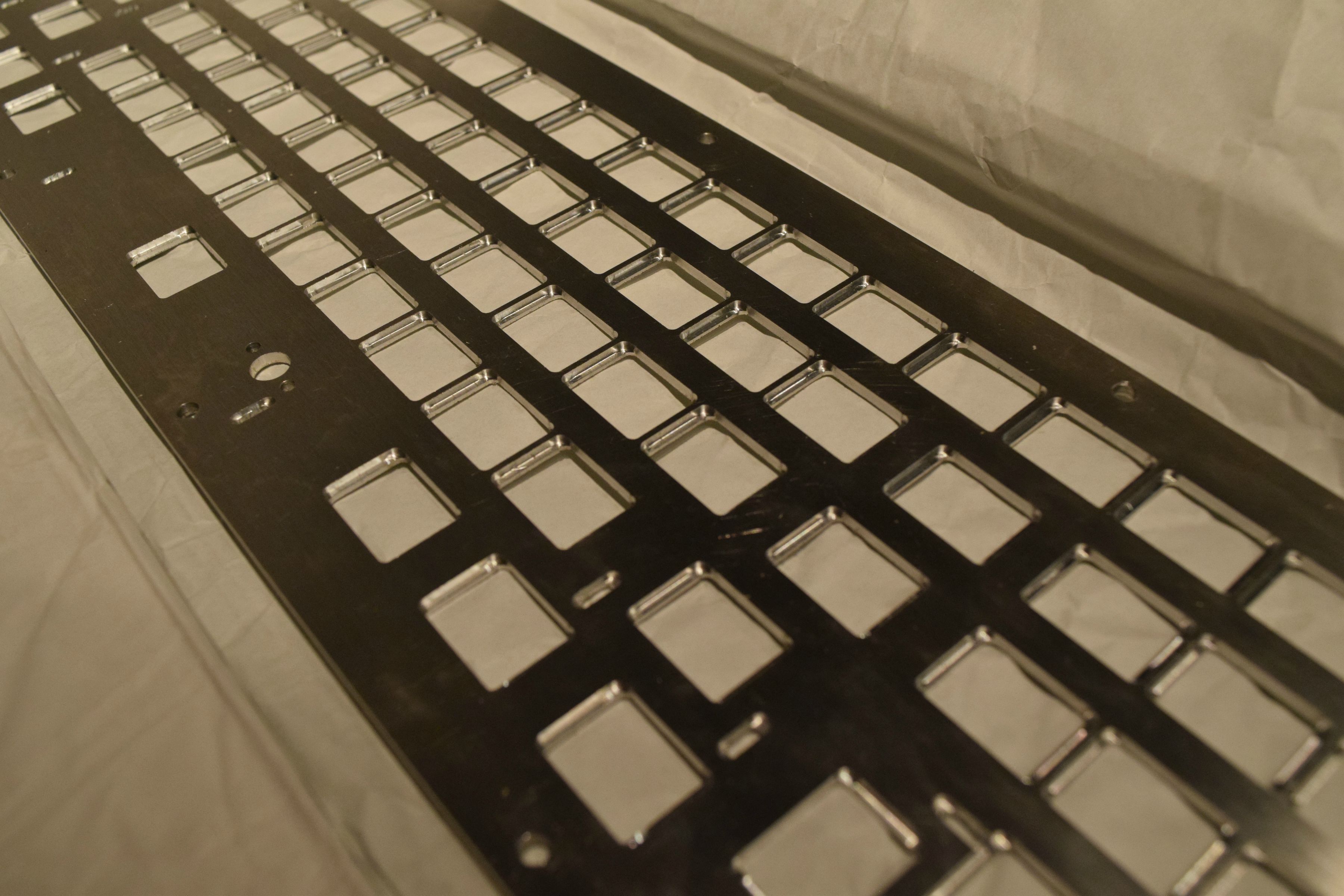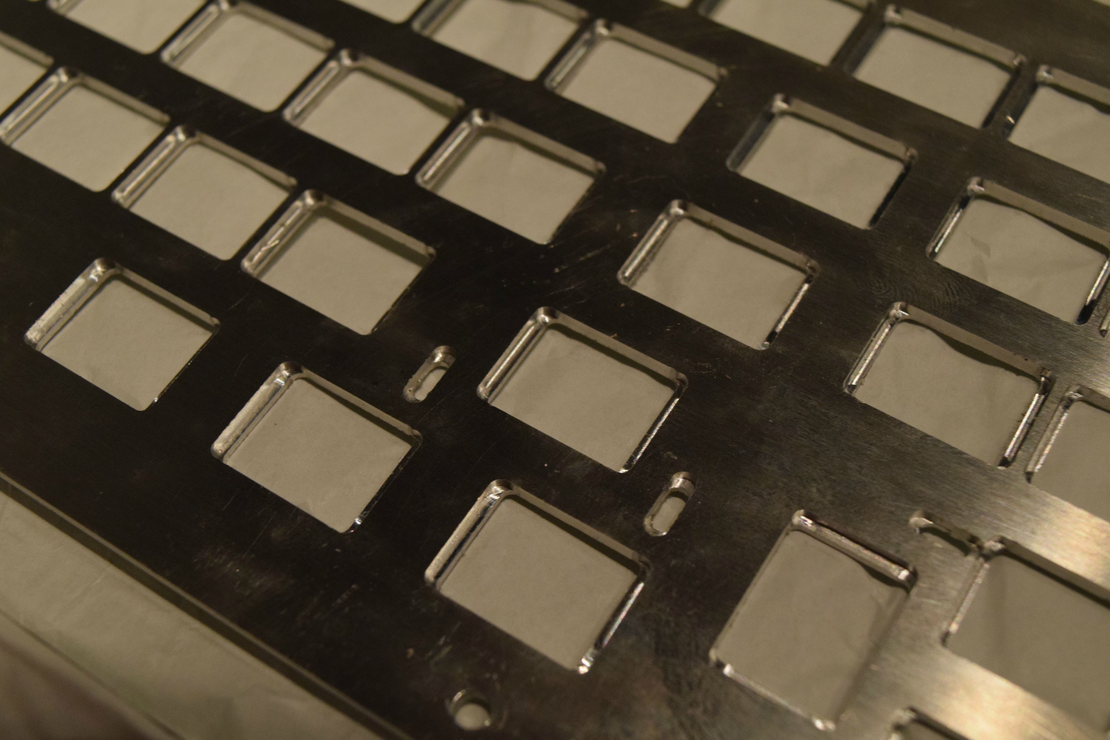 Plates will be laser cut and then the recesses with be milled to allow for completely square corners on all switch and stabilizer holes (the prototype was cut completely by CNC milling)