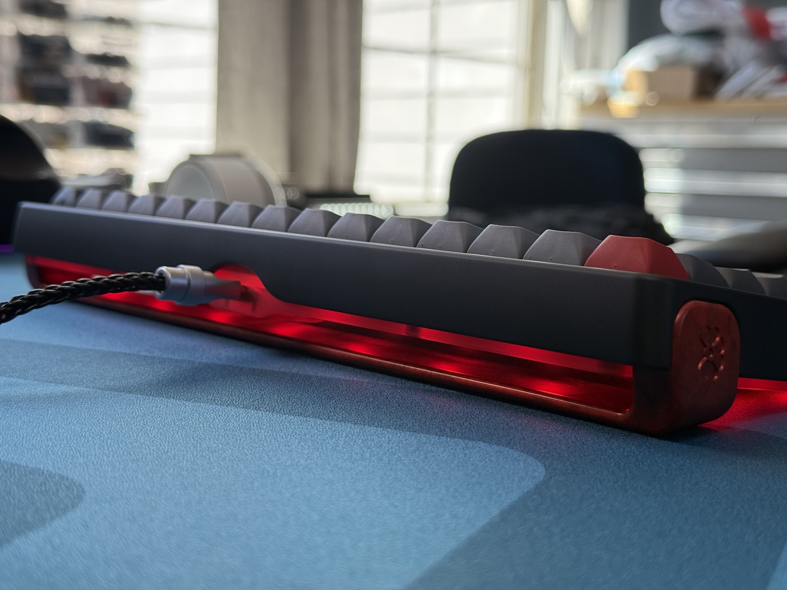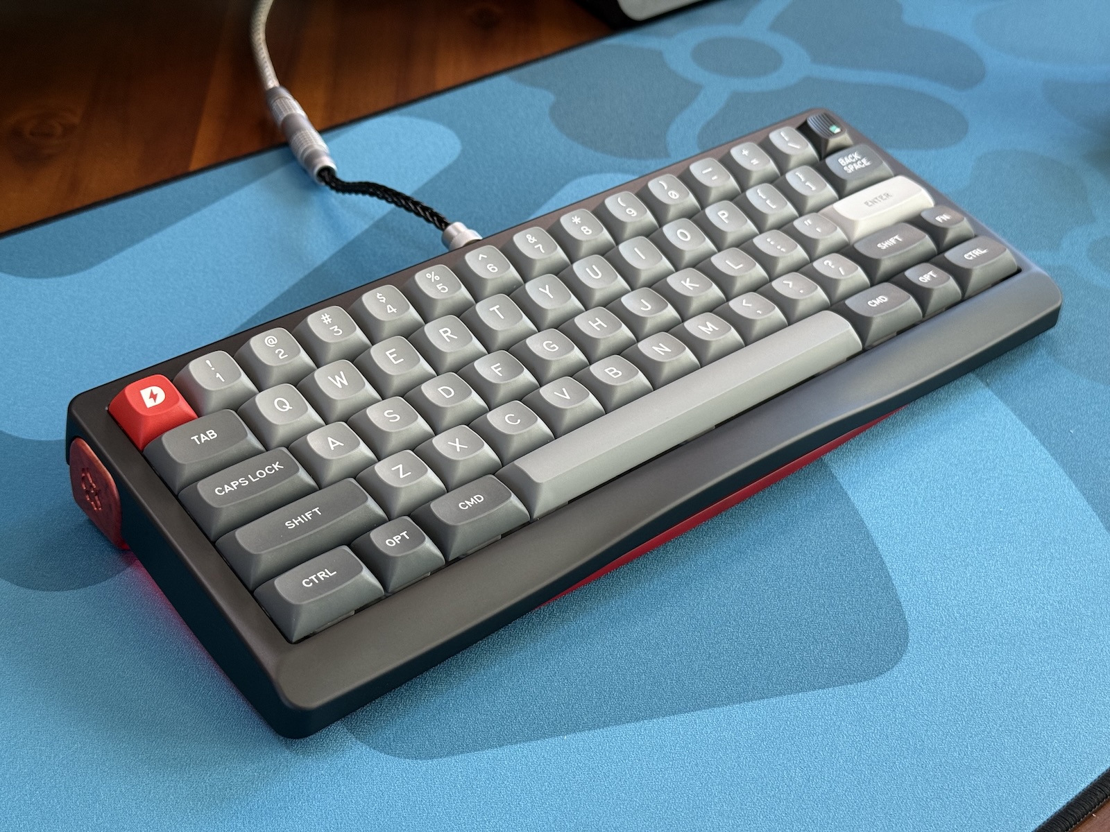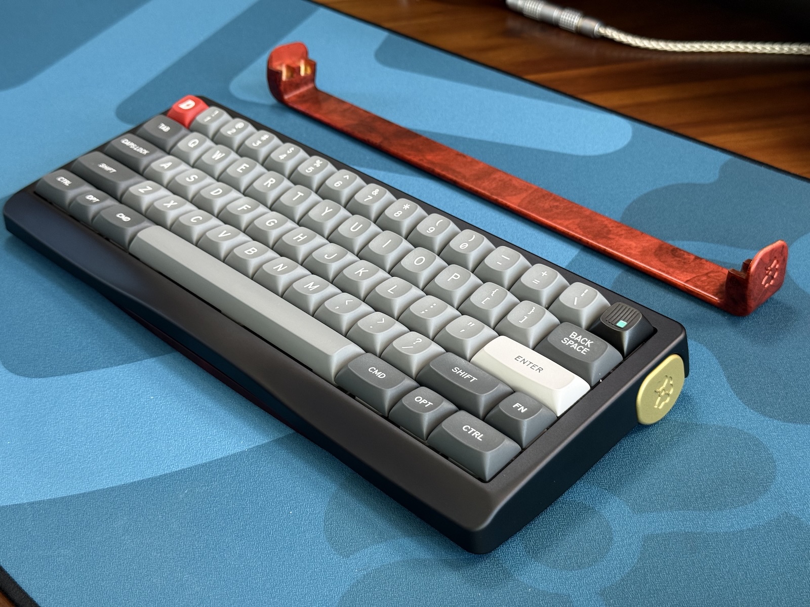 A 60% EC/MX gasket-mount board inspired by the Ferrari F40’s iconic rear wing.