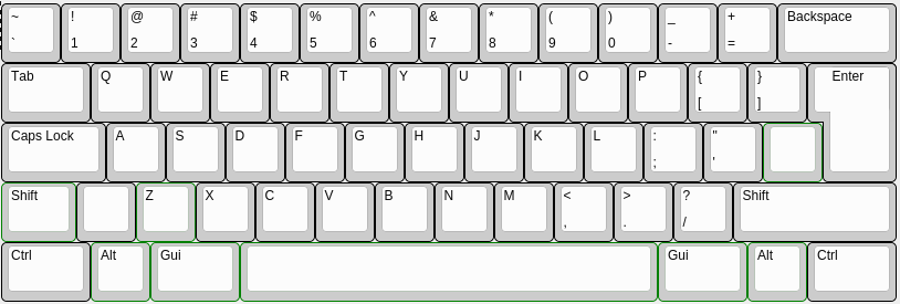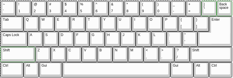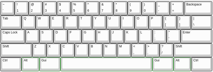 Alps64 PCB InfoSupported LayoutsPhysically possible combination of any part from following layouts is supported by Alps64 PCB.You need suitable plate for your layout to assemble keyboard.AEK(Apple Extended Keyboard):
