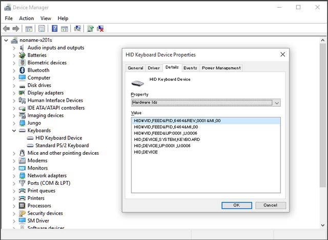 Windows you will find a entry like 'HID Keyboard Device' whose hardware id is like
