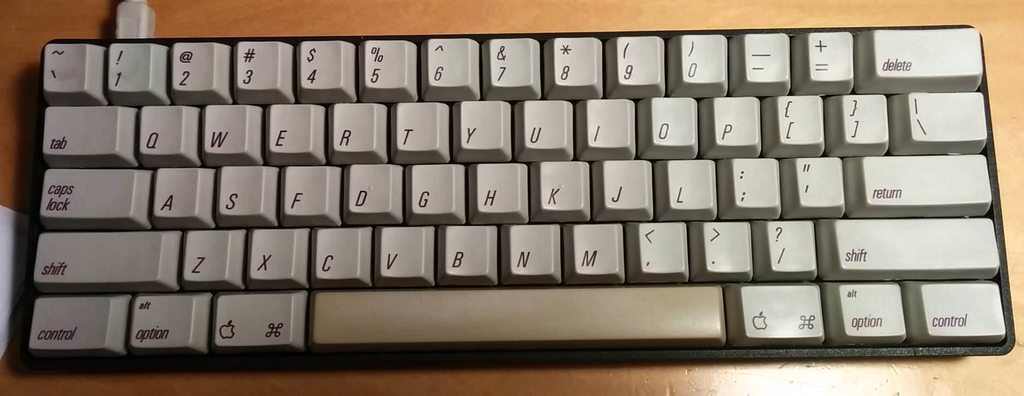 various key layouts including old vintage keyboards, such as Apple Extended Keyboard, Dell/SGI 101 and more. You can harvest switches, keycaps and stabilizers from the old keyboards. And the PCB can be screwed down into de facto