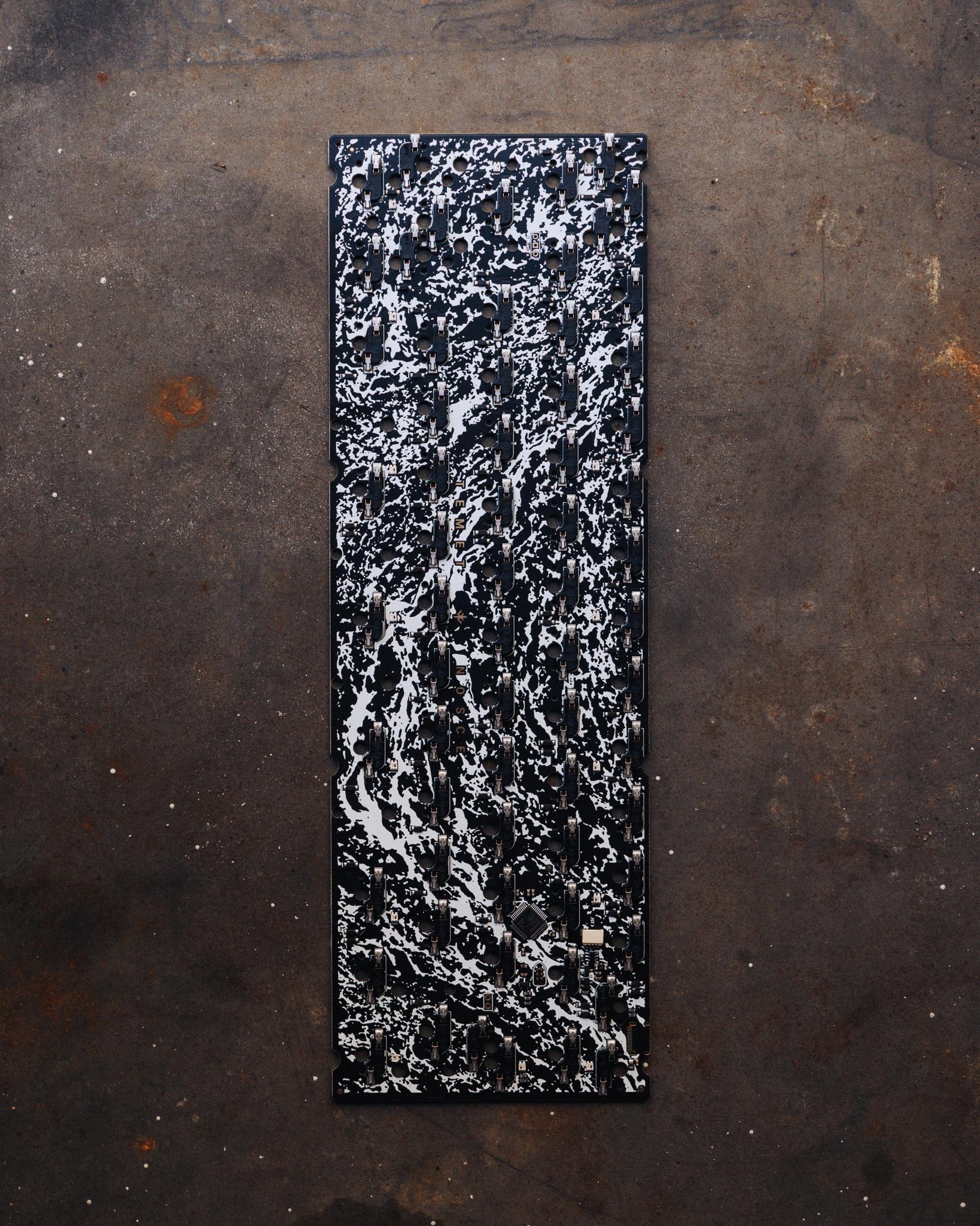 - Material: 1.6mm FR4 - Type: Solder / Hot swap / No flex cuts - Connection: Type-C Fly DB - Lighting: LED array underglow - Spacebars: 7u / 3u 1u 3u - Options: Stepped caps / split right shift / split backspace / rotary - Software: QMK / VIA - Thanks to 4pplet for providing open source resources for this project.