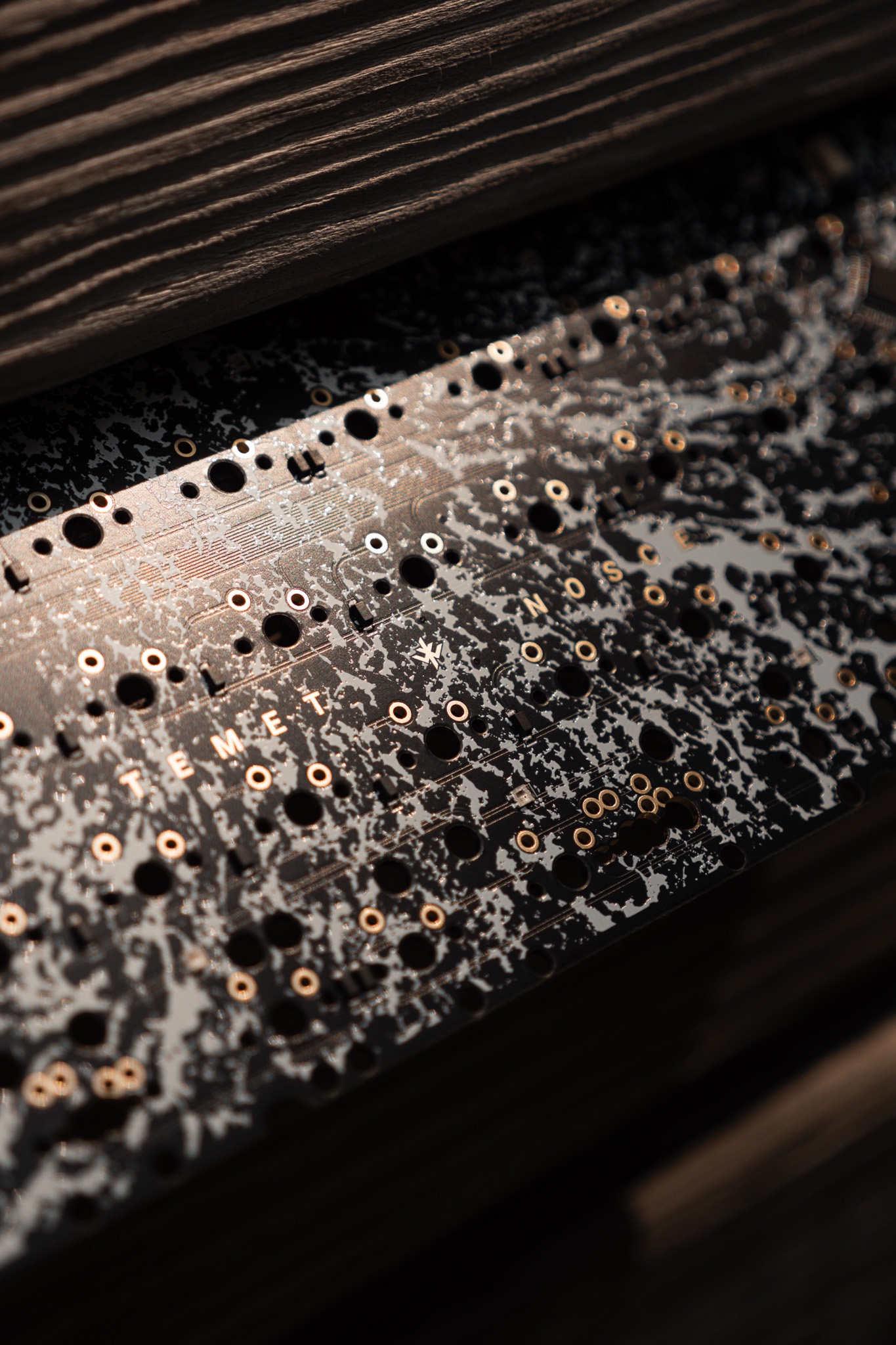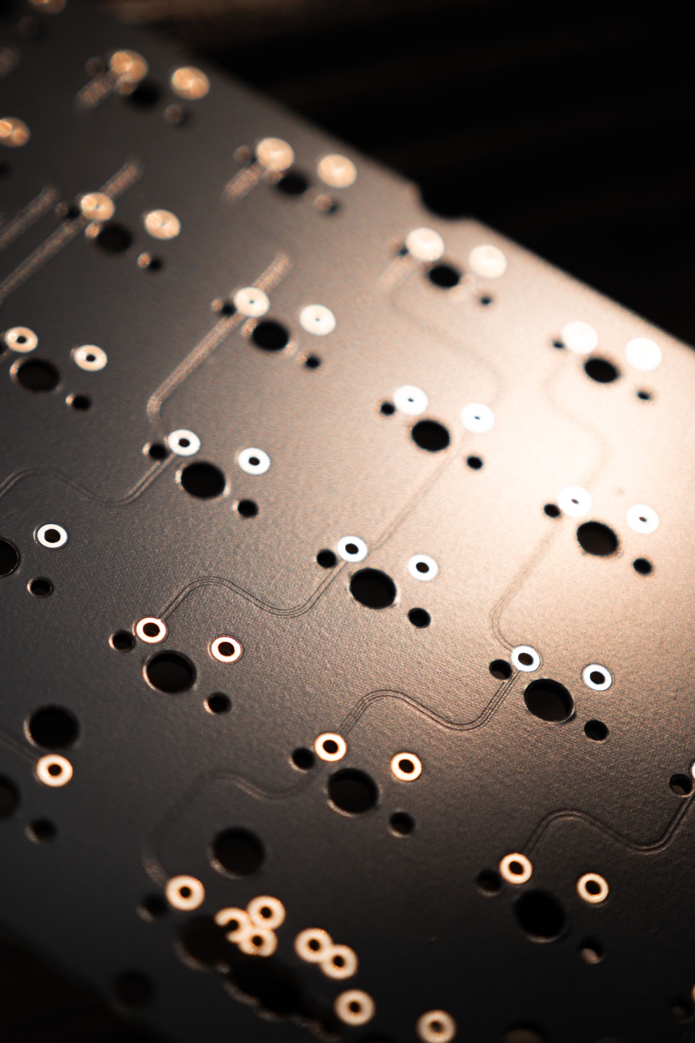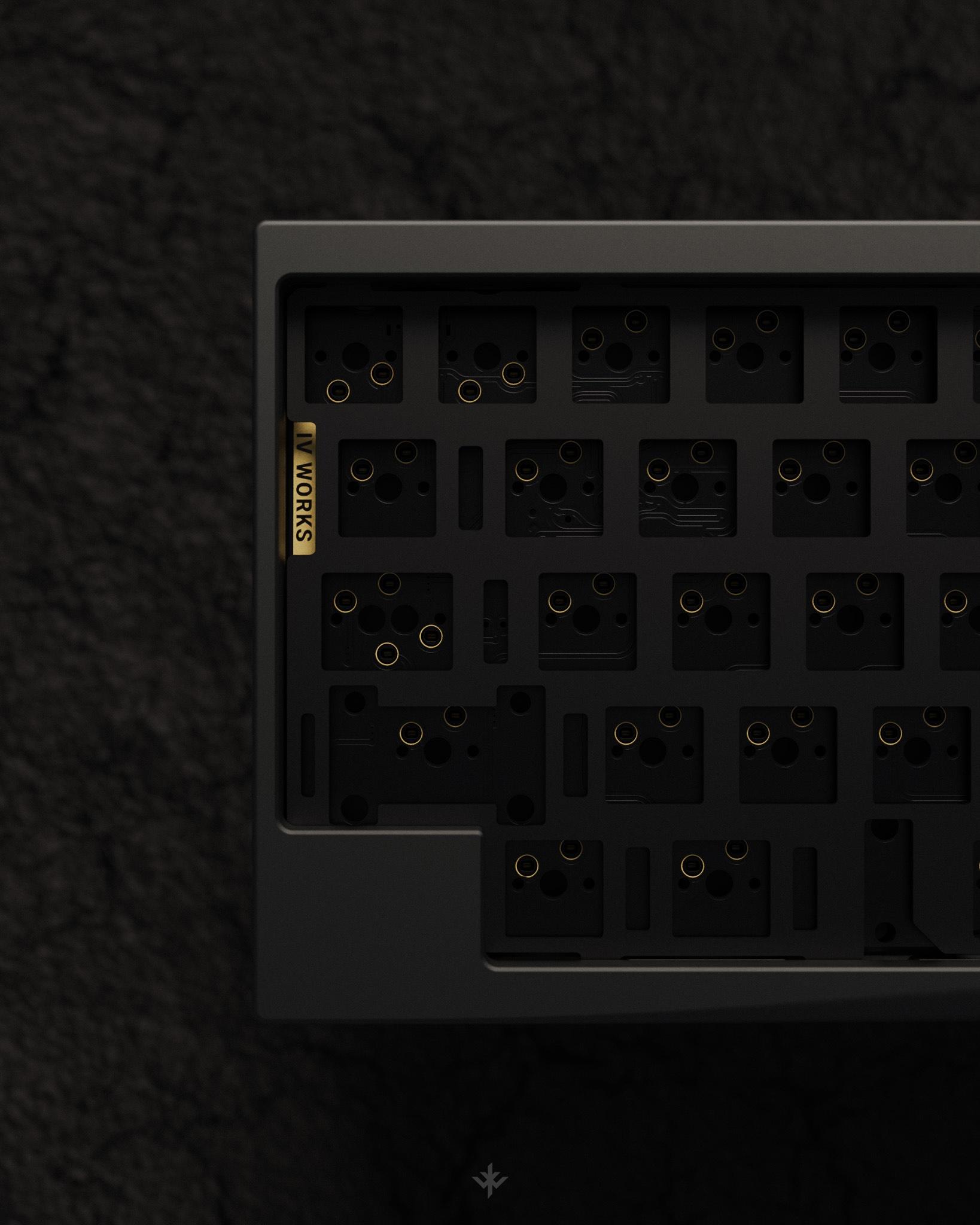 PERFORMANCE - Integrated 8 point silicone force-break to prevent unwanted resonance. - Maximized internal mass while maintaining plate flex and low front height. Provides sound diffusion helping isolate second reflections. - Optimized plate mounts for unformal flex at home row. No mounts under the spacebar for best typing feel. - Distance between the bottom of switches to case is equal across the board. - Sound travels uninterrupted between PCB and bottom aluminum case. No weights, daughter board, foam, or screws are exposed to the bottom of PCB. Producing a uniform and bright sound-signature. JST cable is routed from the back of the chassis.
