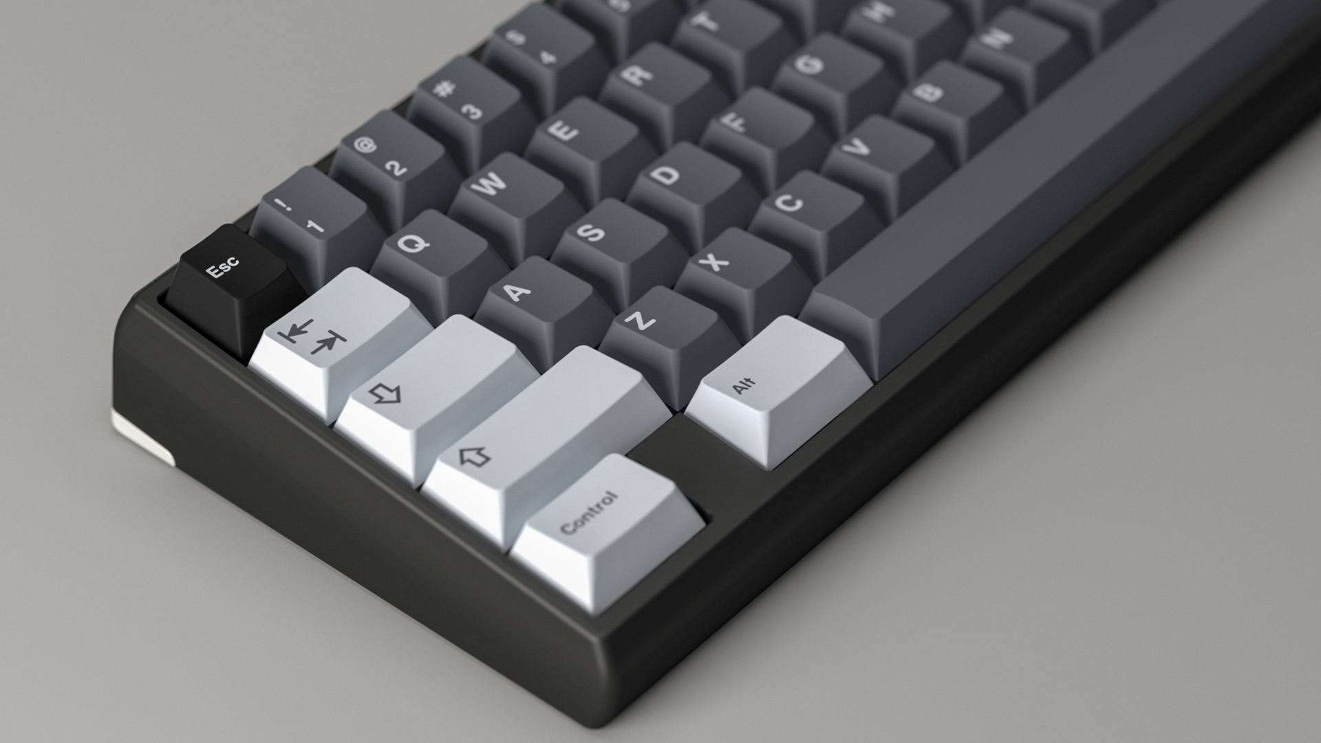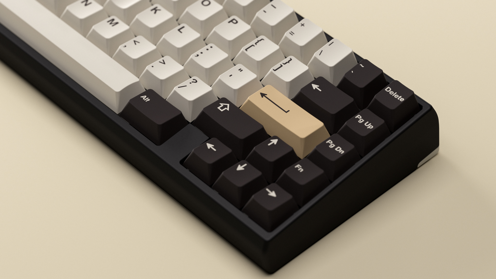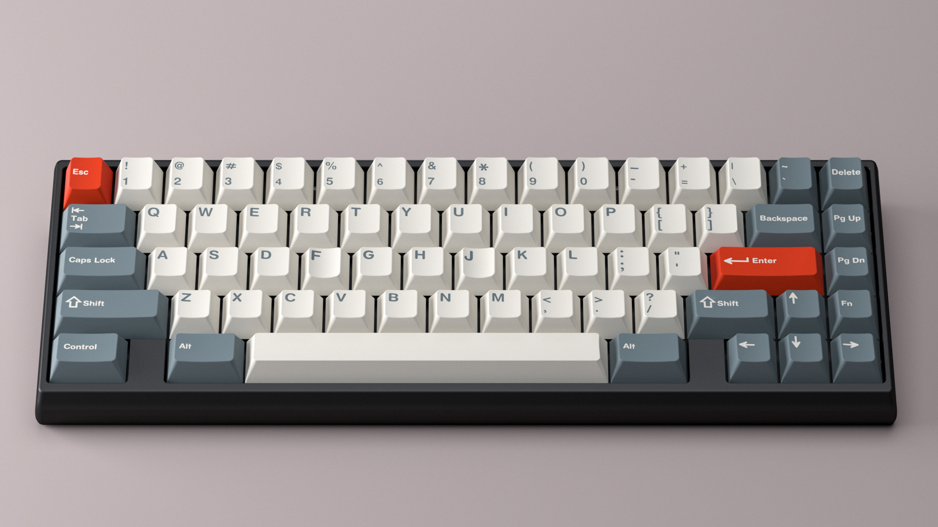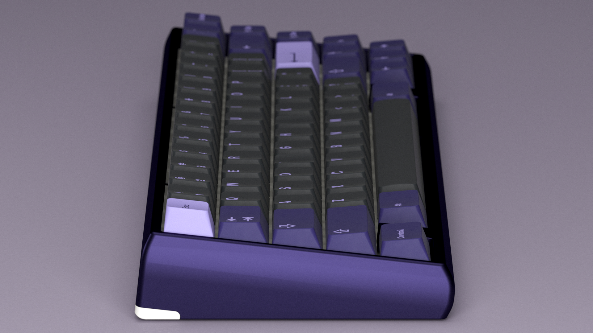 Vertigo is a seamless, screwless, gasket-mounted 65% with symmetrical bottom row blockers.
