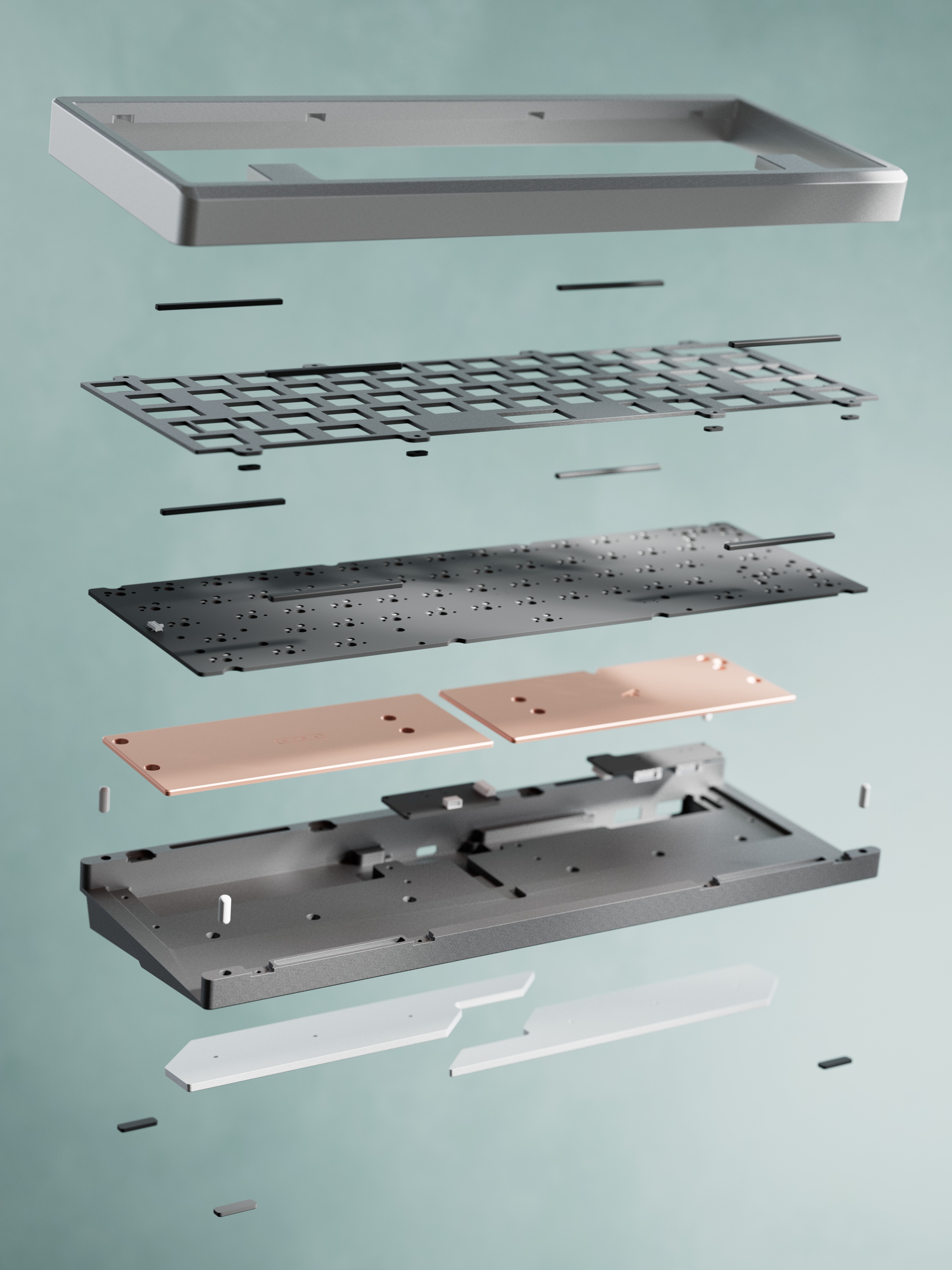2) Due to how the top and bottom case are held together, you would need to press on the keys while pulling the top case up to remove it from the bottom. Because of this, we have opted to bottom-mount the plate on some soft gaskets to ensure a nicely cushioned typing experience. The current gasket design was great on paper, but in practice they sometimes got chewed up by the screw thread when fixing the plate down. From here we will need to amend the gasket design to ensure that once installed, they’re not at risk of being caught by the screw threads.